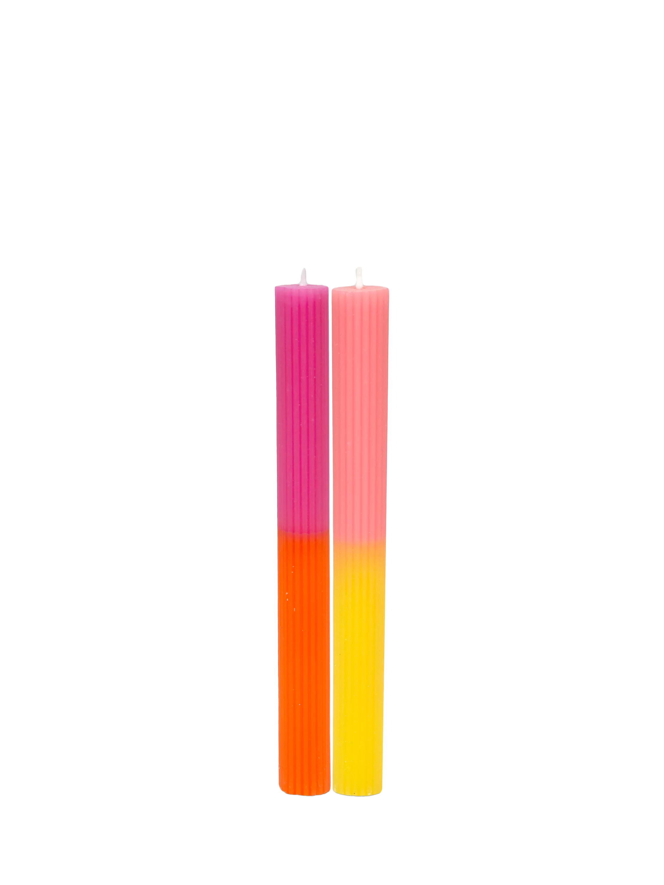 Elevate your dinner table with these stunning ombre candles. Each in different ombre designs with three different tones, these ribbed candles are made of high-quality, unscented wax and are sure to be the talk of your table.