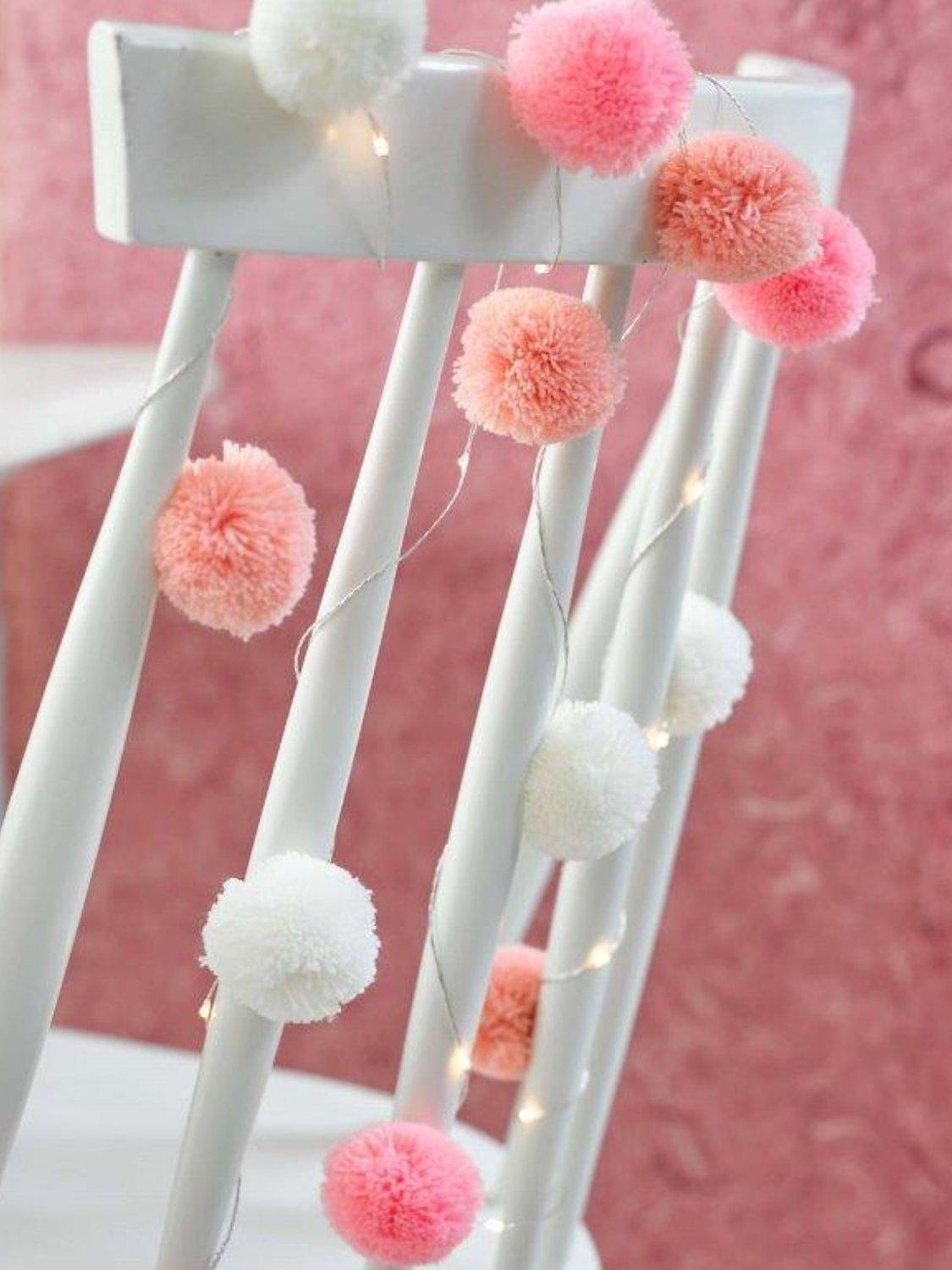 Soften the mood with these fun pom pom lights! Featuring 20 LEDs on 2m of wire lights, these fairy lights are perfect to decorate a bedroom or a party.