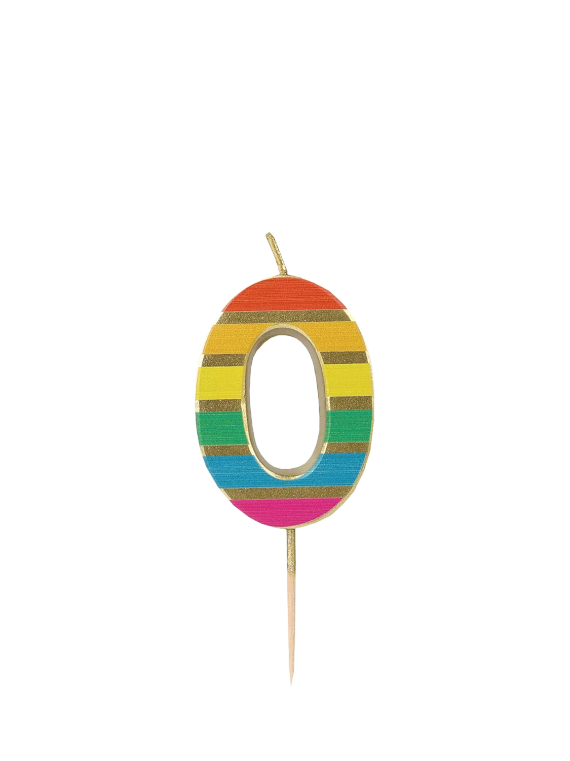 Celebrate your birthday with this colourful rainbow stripe number candle.