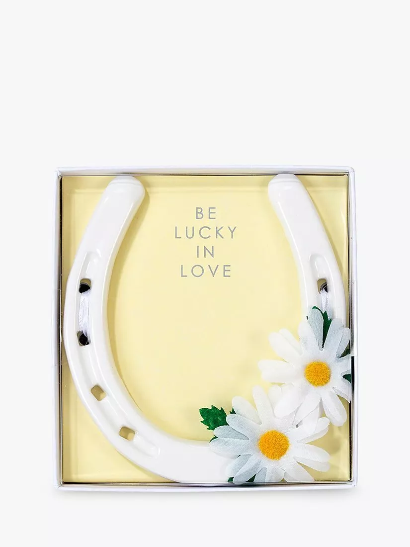 Gift the bride a ceramic horseshoe hanging decoration to bring good luck to her and her groom. The perfect wedding day keepsake for years to come and a traditional wedding gift.