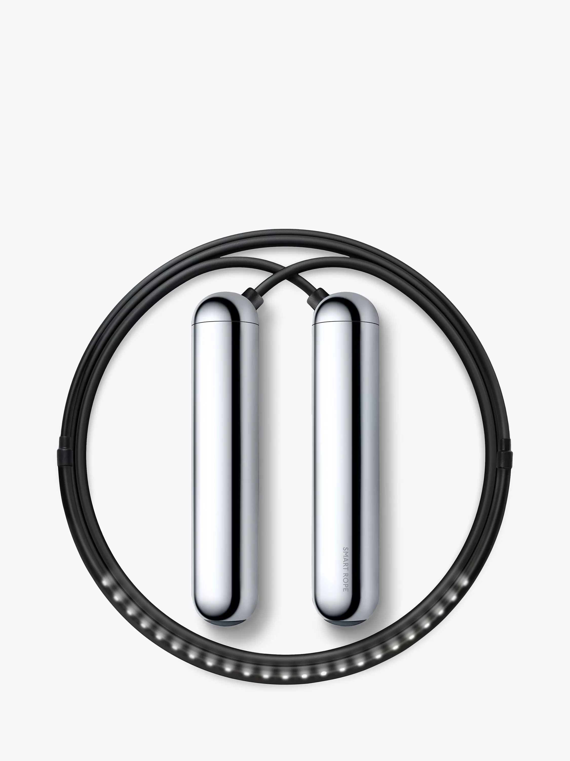 Much like film or animated movies, the LEDs light up at different times as the SmartRope rotates around you, creating the appearance of a single display floating in mid-air. Thanks to the 23 LEDs in the rope connected to magnetic sensors, you can see your fitness data in mid-air as you jump.
