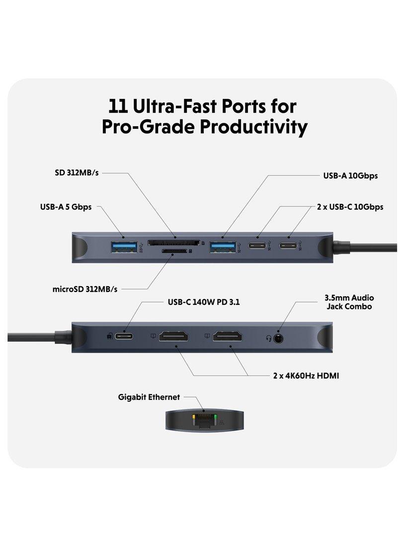 Introducing the HyperDrive Next 11 Port USB-C Hub - the ultimate connectivity solution for creators, editors, photographers, and more. With dual 4K 60Hz monitor support for PC and Chromebook, 11 ultra-fast ports, and lightning-fast data transfers, unleash your creative potential anywhere.