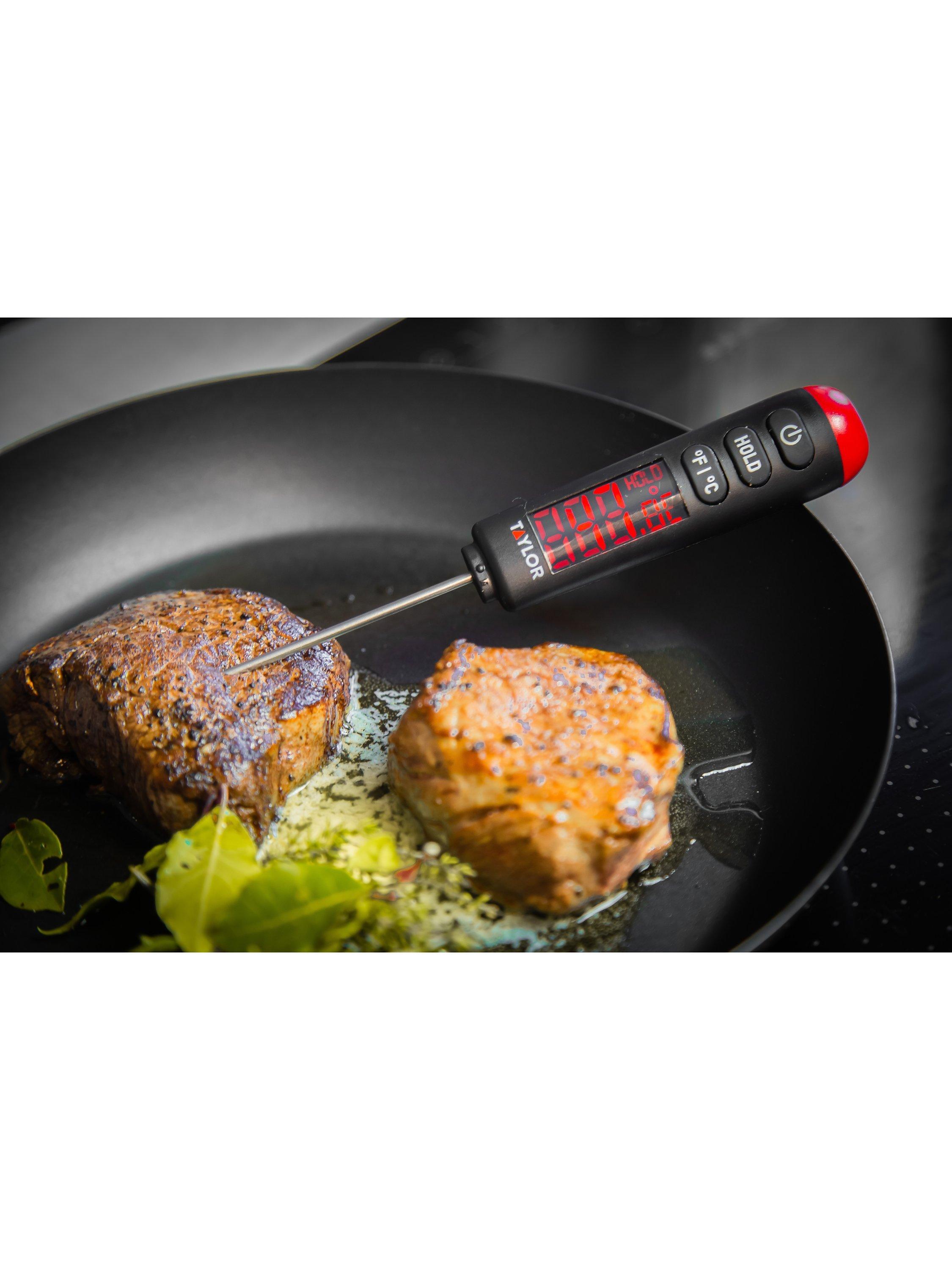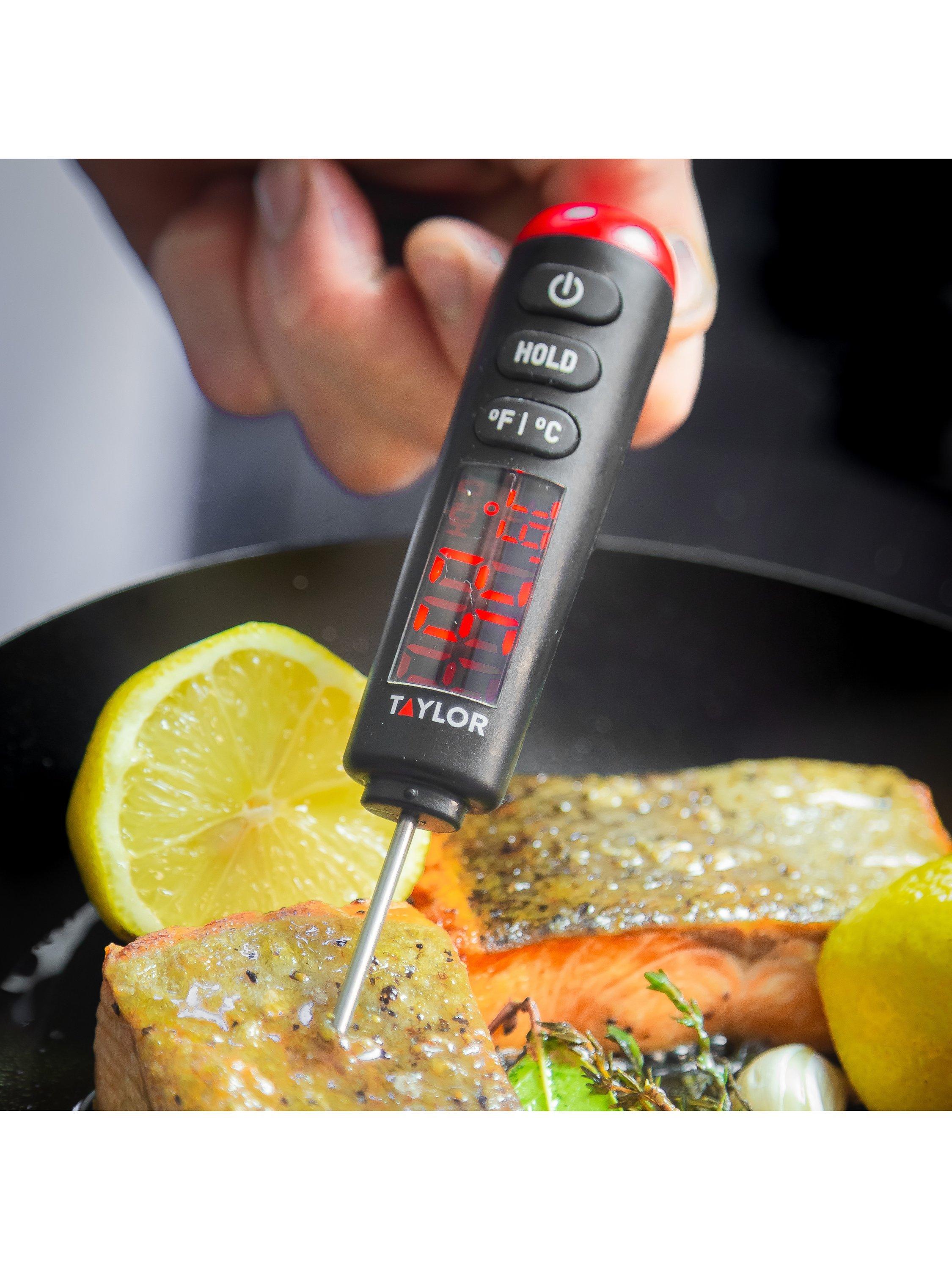 The Taylor Pro digital food thermometer probe helps you ensure your food is cooked safely and exactly how you like it. Its accurate readings provide reassurance, indicating whether your meat, fish or poultry is ready to be served or needs longer.
