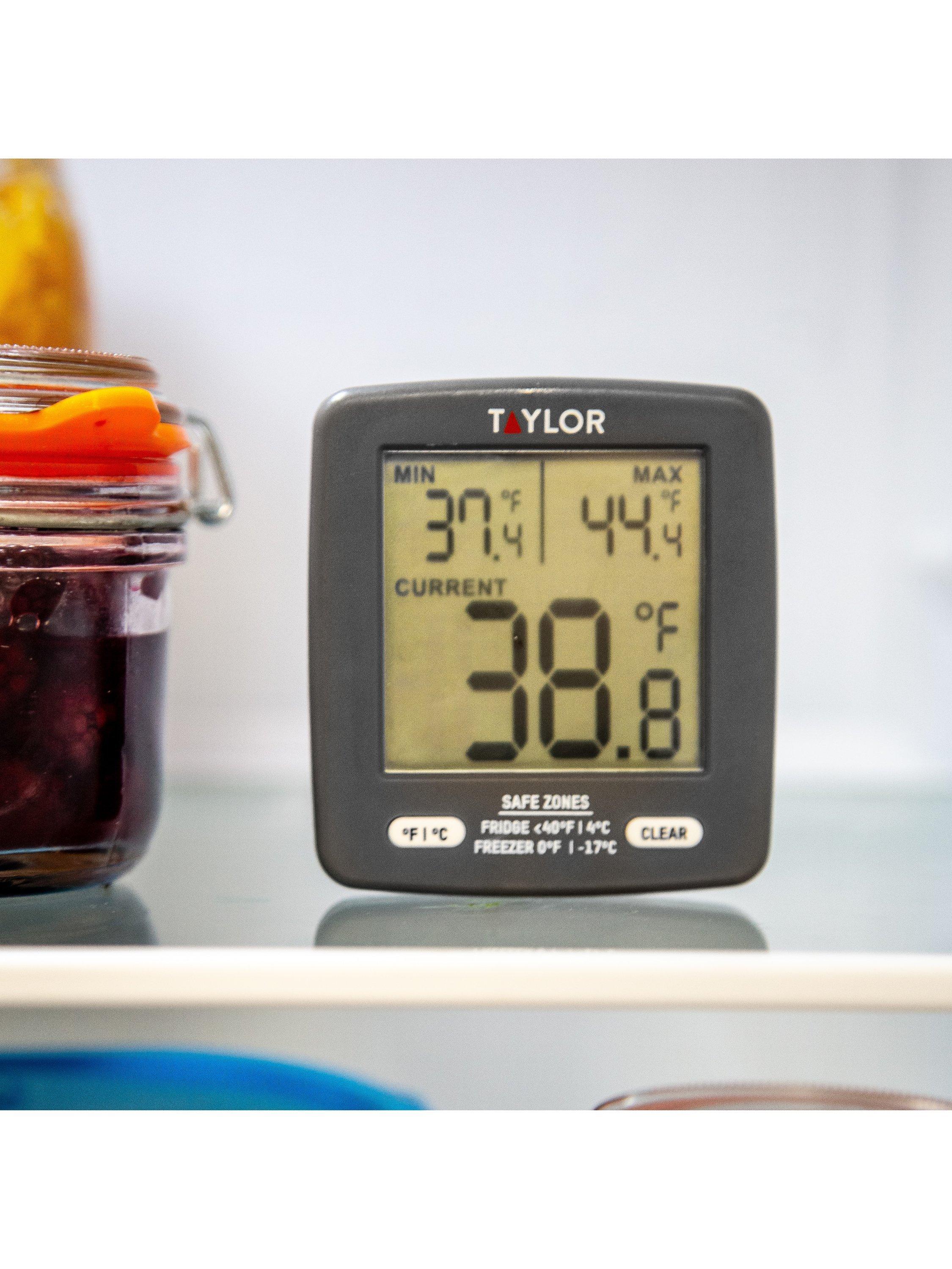 The Taylor Pro digital fridge/freezer thermometer is designed to help you reduce waste on two fronts: energy inefficiency and food spoilage. Its innovative design accurately monitors the internal temperature of either your fridge or freezer, while tracking minimum and maximum readings over time. If the readings fall outside of the safe zones for refrigerating or freezing, you'll easily be able to turn the temperature up or down appropriately or identify an appliance fault.