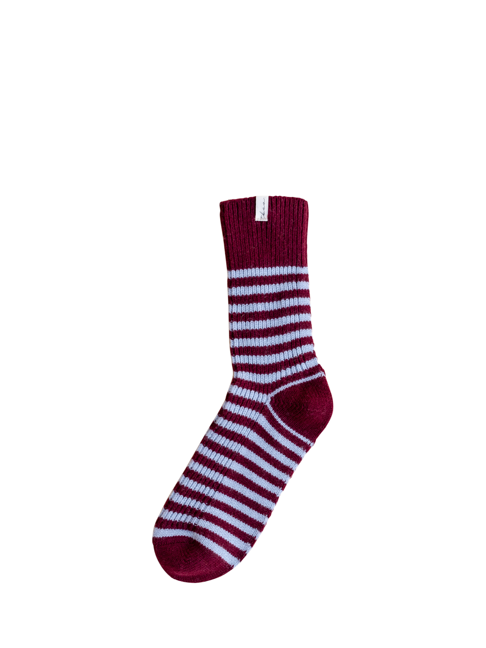 - Merino Wool Socks in Burgundy & Blue Stripe (Size UK 4-7)