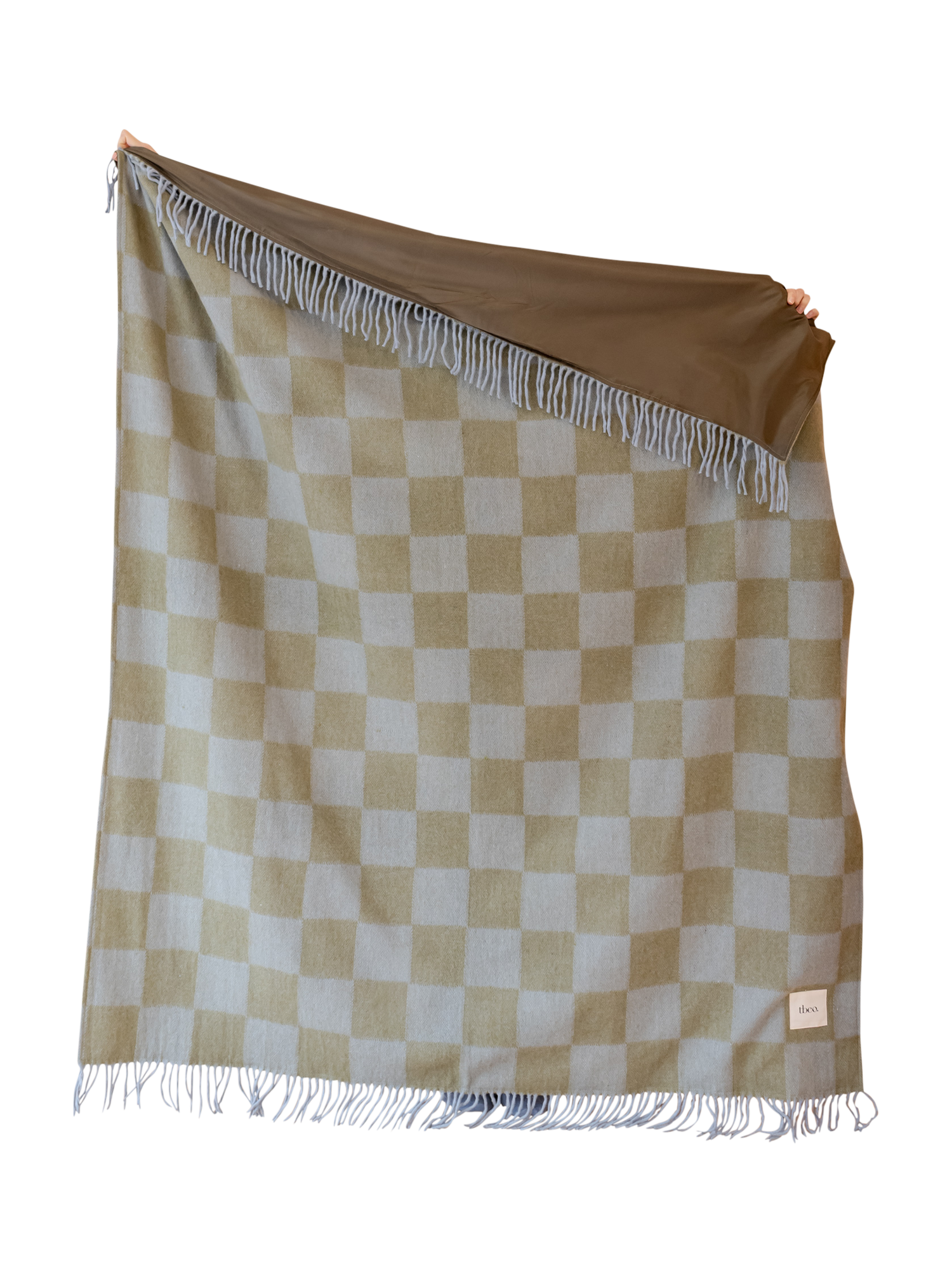- Wool Picnic Blanket in Green & Blue Checkerboard