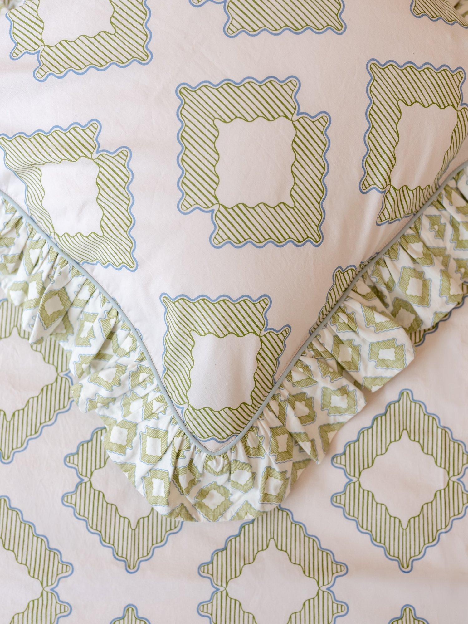 Woven in crisp 100% cotton poplin and finished with a delicate ruffled edge, this bedding is soft and breathable for a comfortable night's sleep. The reversible design with micro diamond pattern on the back offers endless styling possibilities.