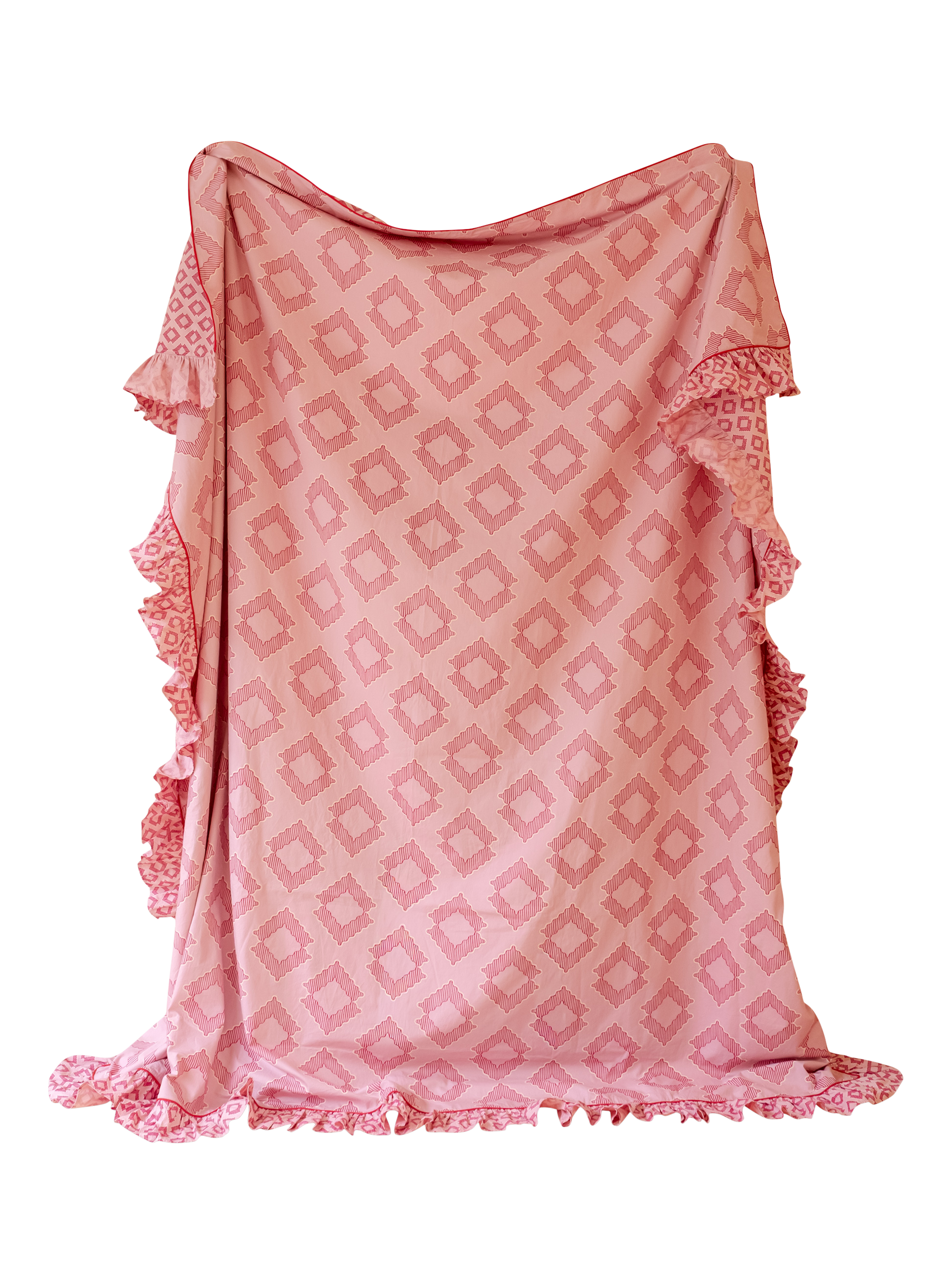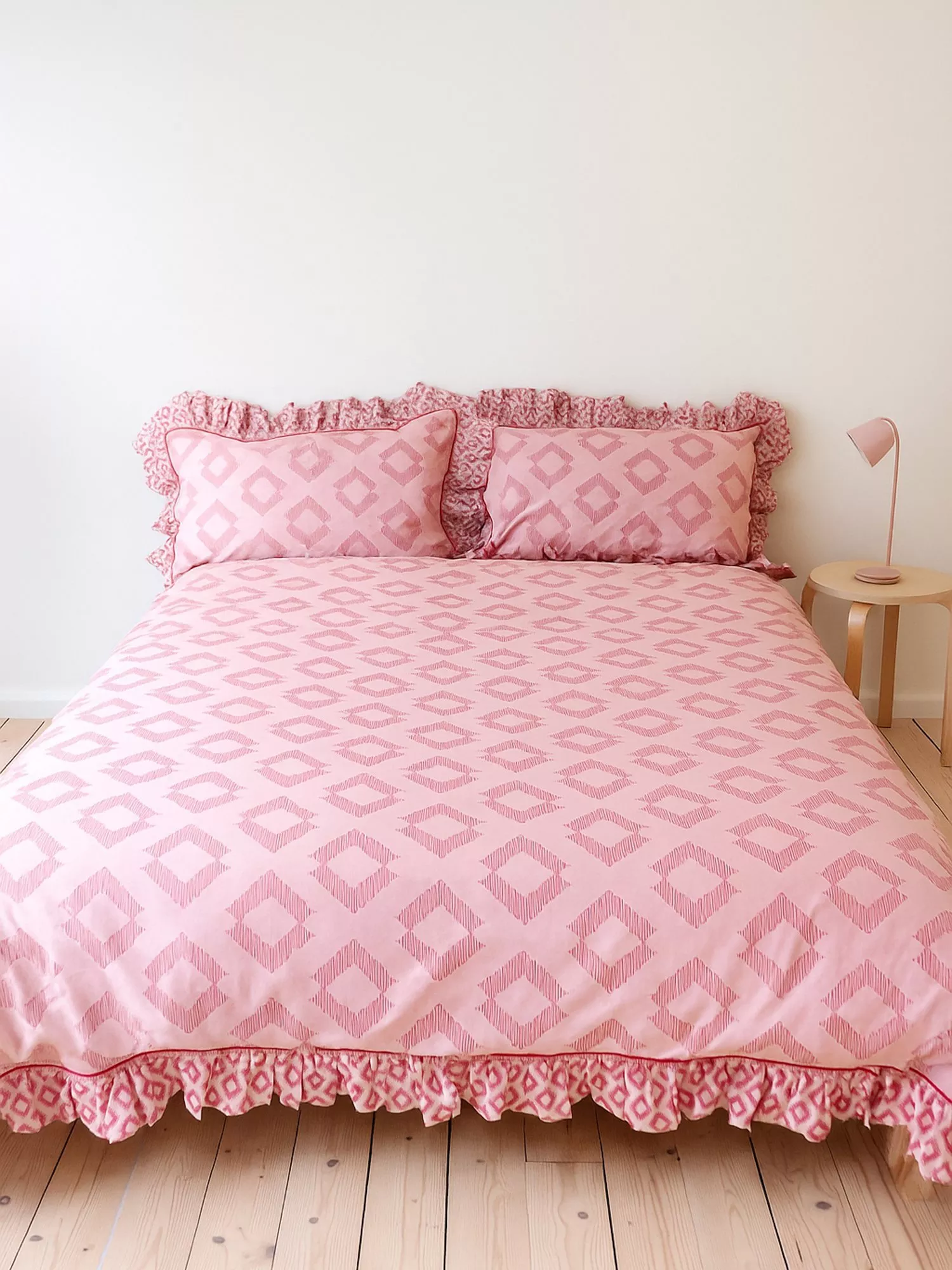 Woven in crisp 100% cotton poplin and finished with a delicate ruffled edge, this bedding is soft and breathable for a comfortable night's sleep. The reversible design with micro diamond pattern on the back offers endless styling possibilities.