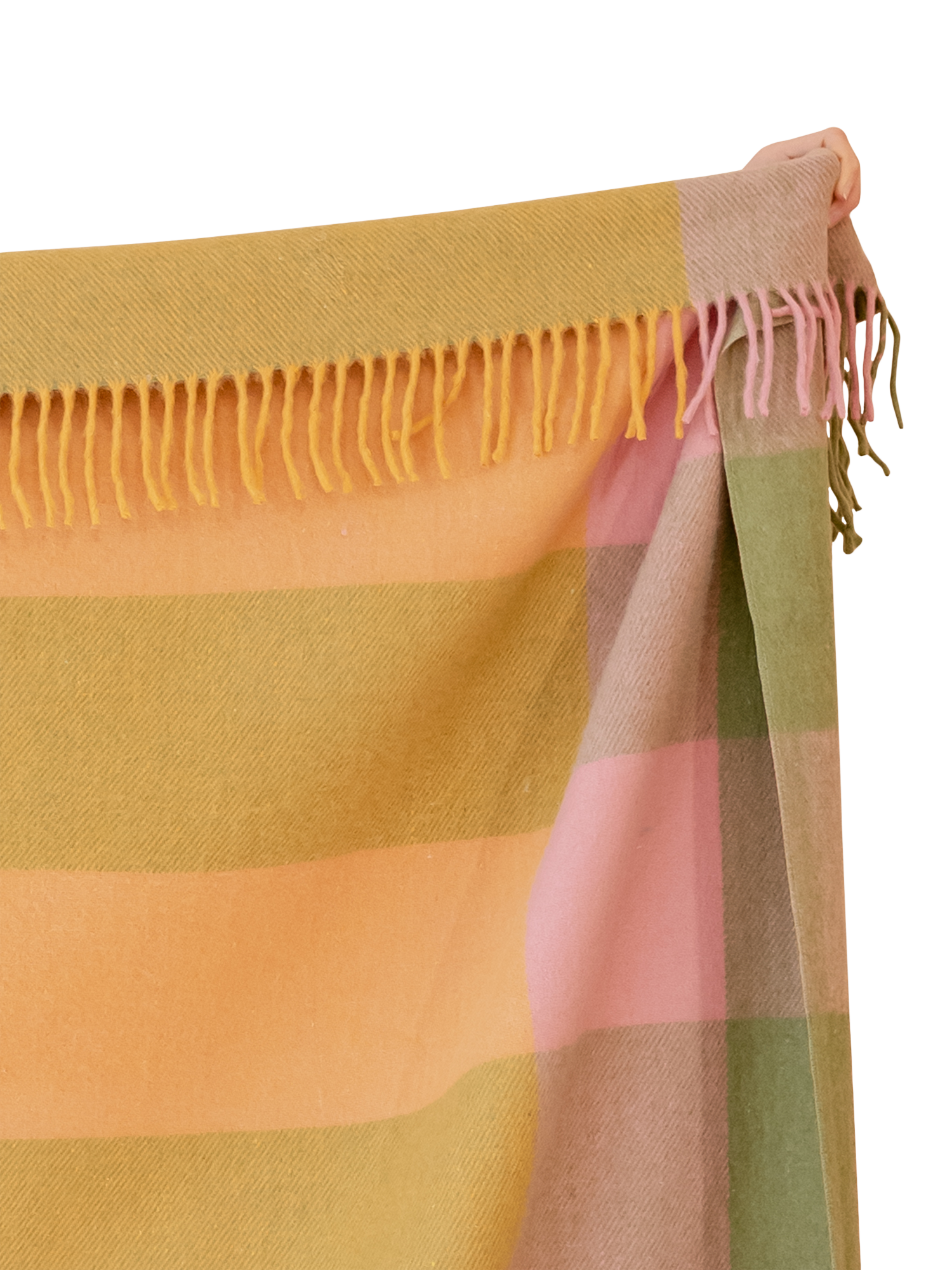 This colourful fringed TBCo blanket is the perfect companion for cosy moments. Crafted from 70% recycled wool and 30% mixed fibres, it combines the natural warmth, durability, and softness of wool with a commitment to sustainability, saving an average of six garments from landfill.
