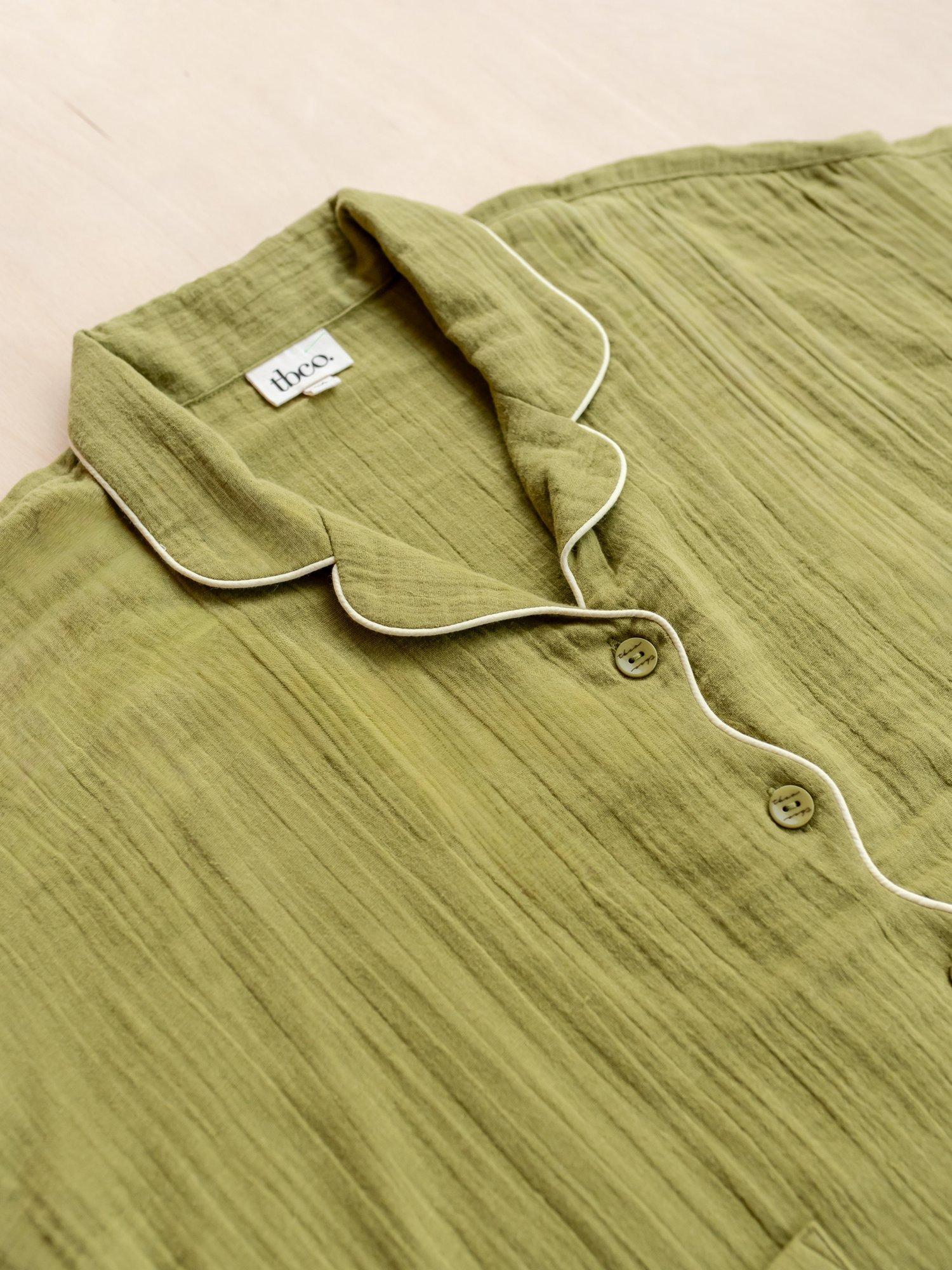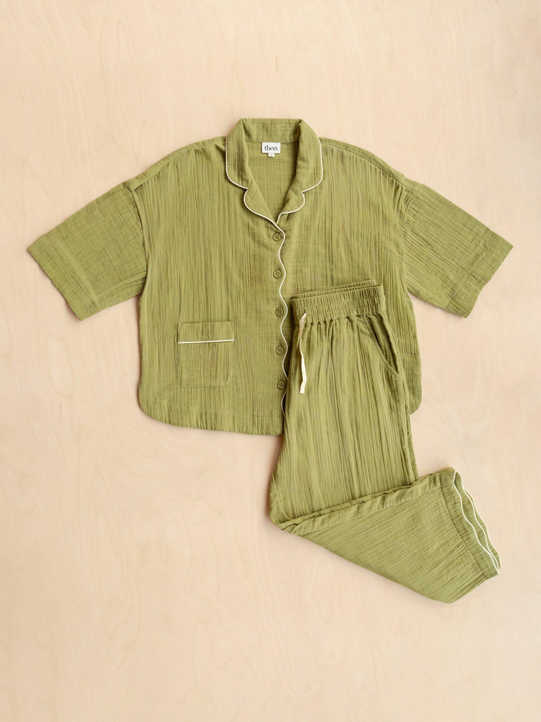 TBCoGauze Scallop Button Through Cropped Pyjama Set, Green