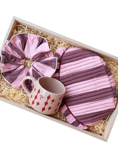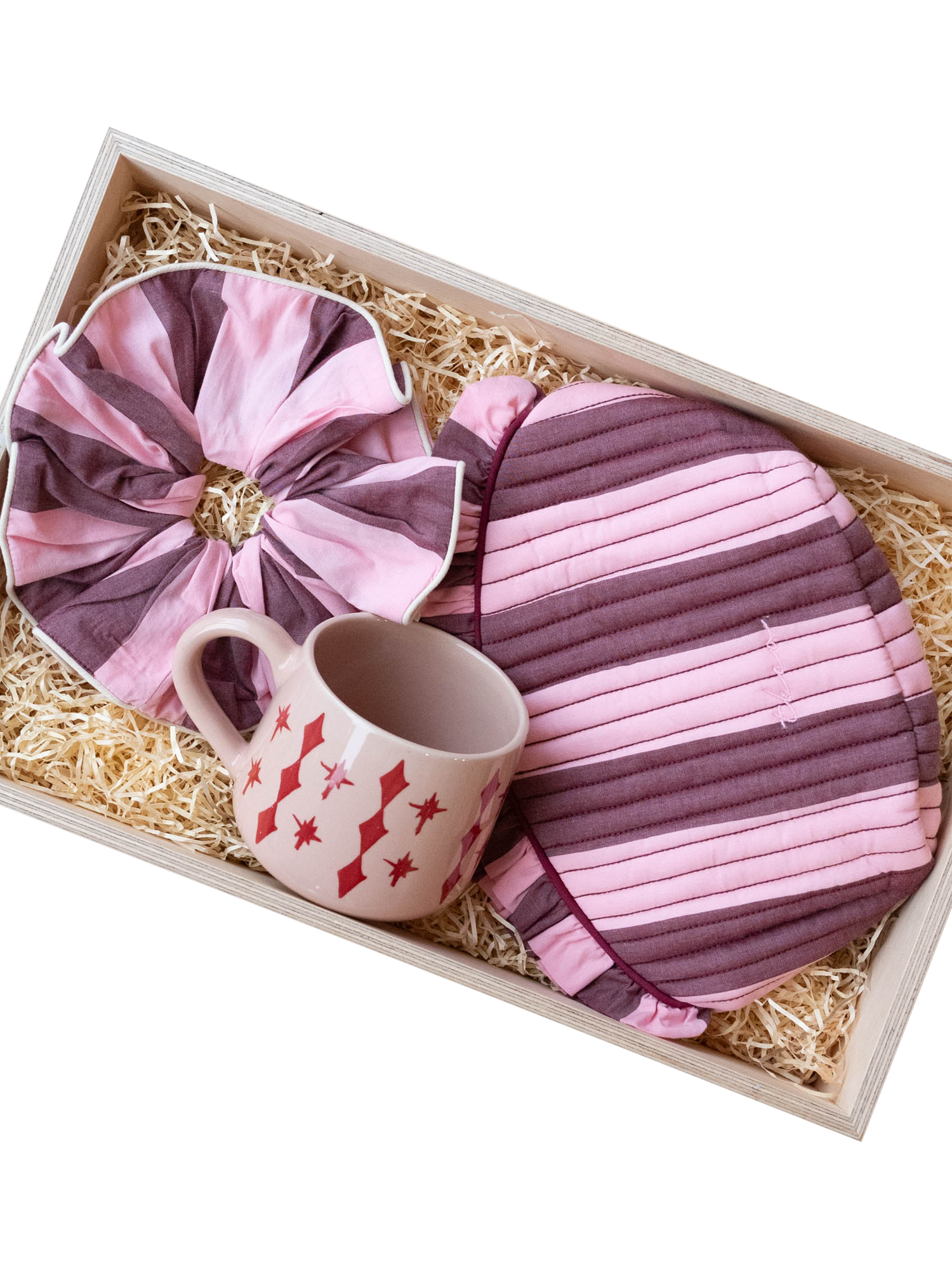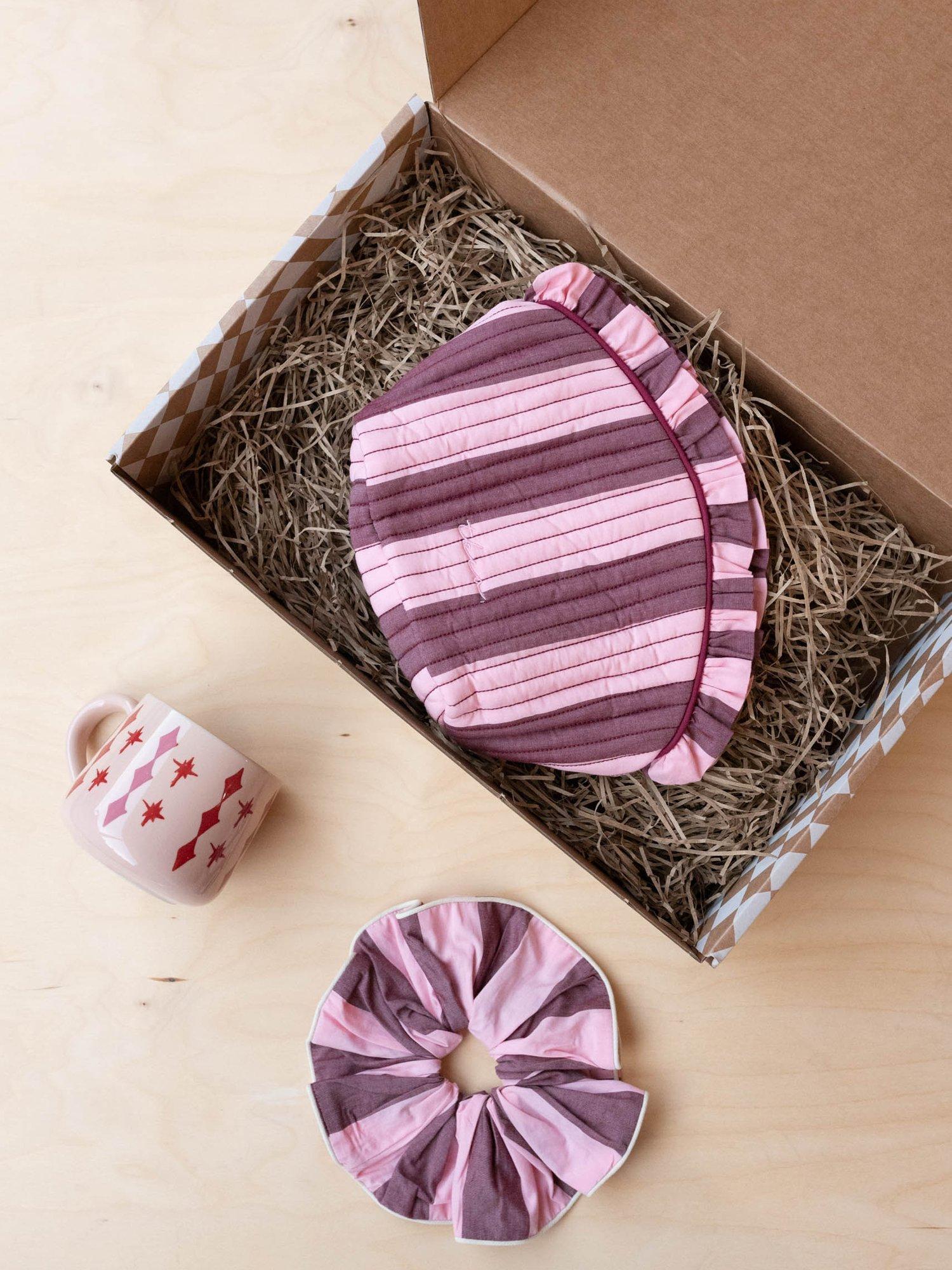 Surprise & delight with a TBCo ready-made gift box. Curated especially for the ritual of getting ready, this gift box contains a playful zipped wash bag, matching oversized scrunchie and a hand-painted mug. Thoughtful gifting made easy.