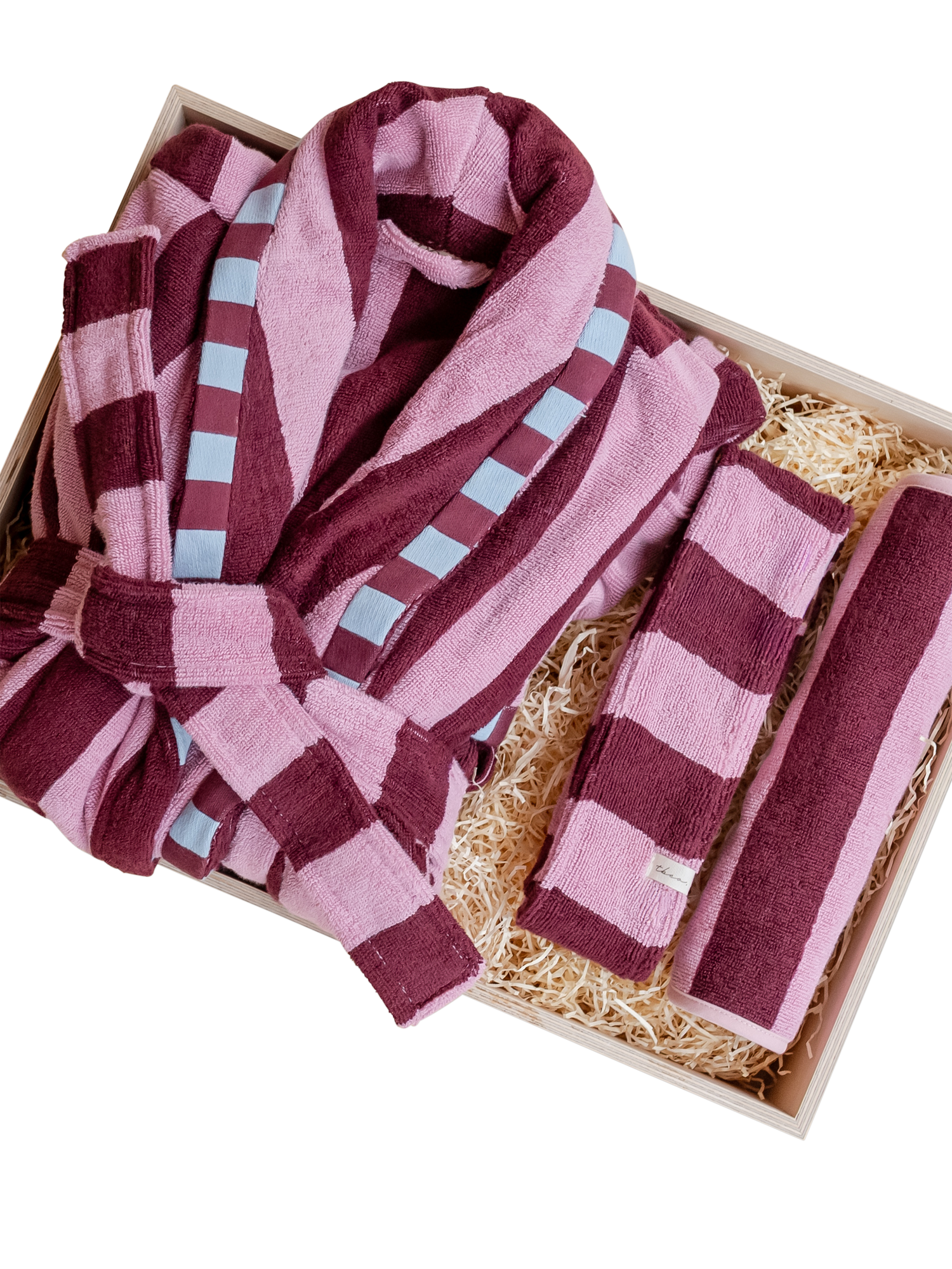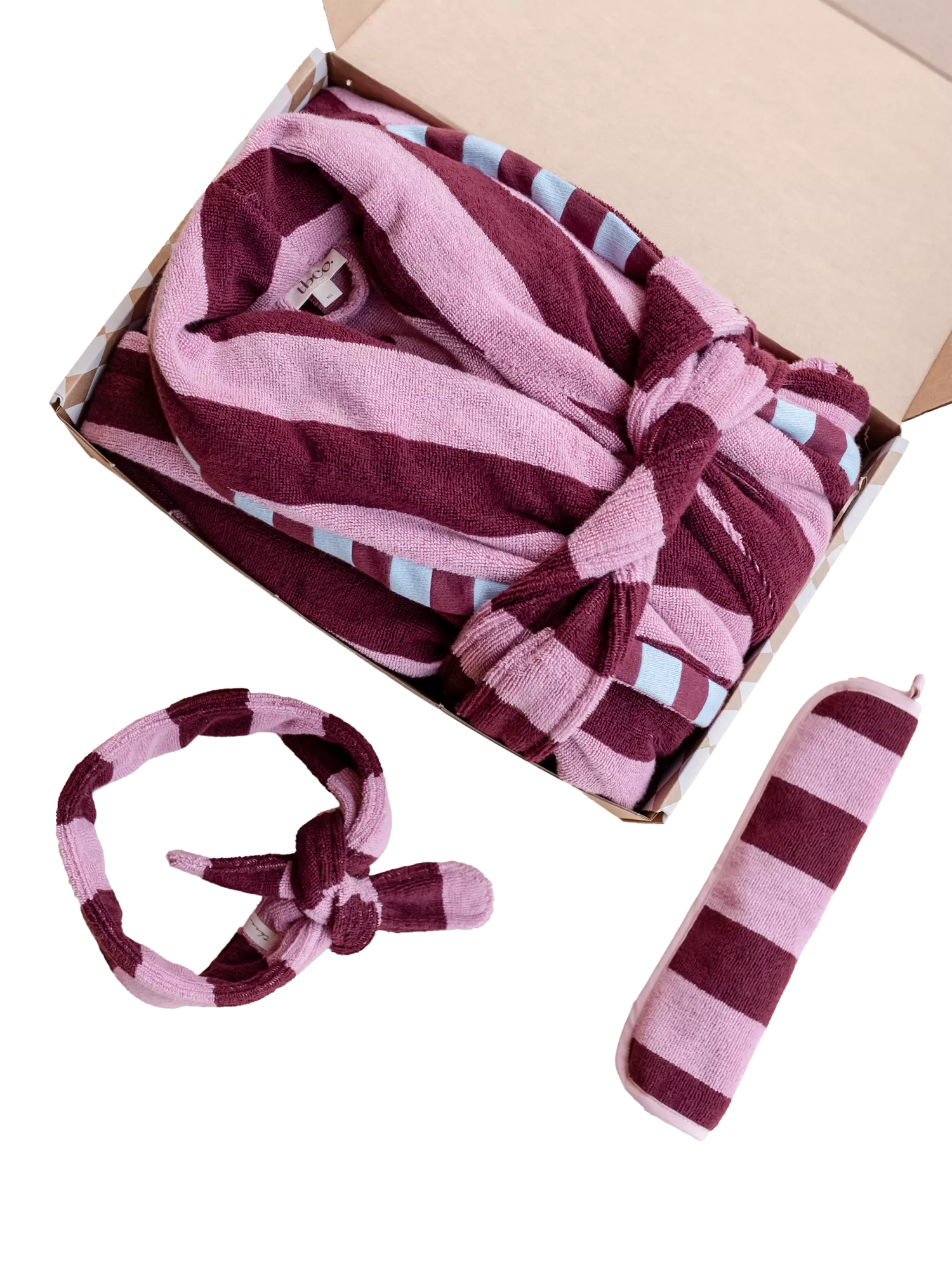 Surprise & delight with a TBCo ready-made gift box. Curated with perfect relaxation in mind, this gift box contains a plush terry cotton bath robe, matching hair tie and face cloth. Thoughtful gifting made easy.