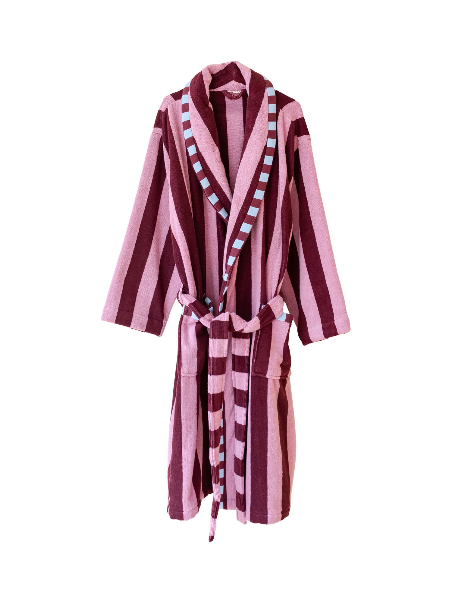 - Terry Cotton Bath Robe in Burgundy Stripe