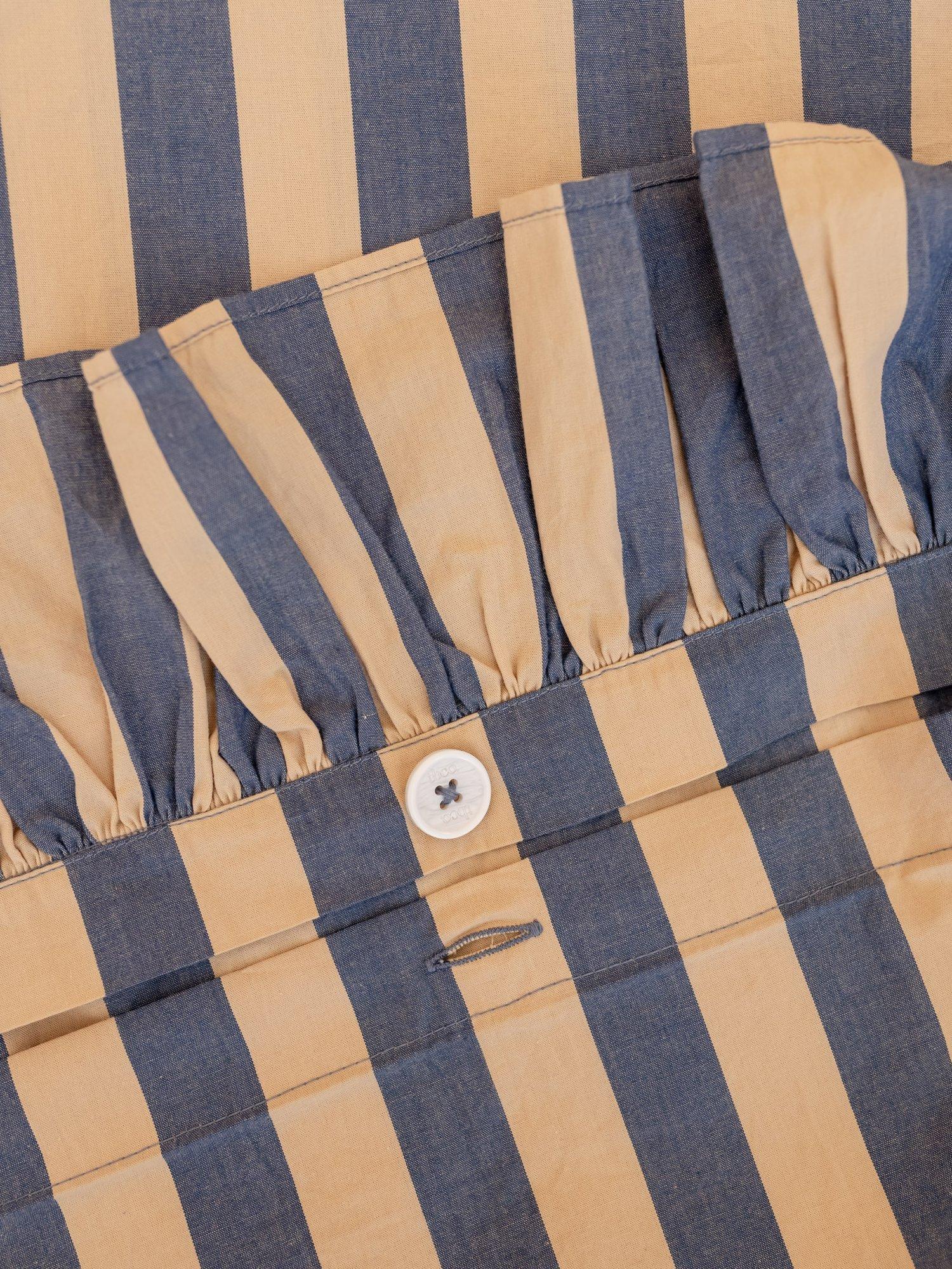 Woven in crisp 100% cotton poplin and finished with a delicate ruffled edge, this duvet cover set is soft and breathable for a comfortable night's sleep.