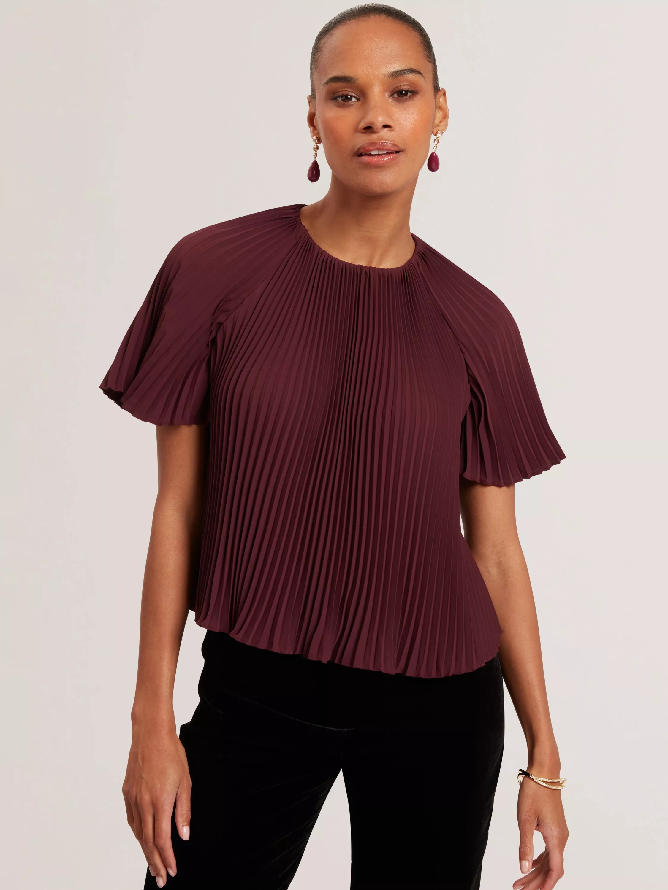 This blouse combines a textured pleated finish with a classic round neck, giving you a clever twist on everyday style. Its regular fit offers comfort at work or out, while short sleeves bring a playful edge to your routine.