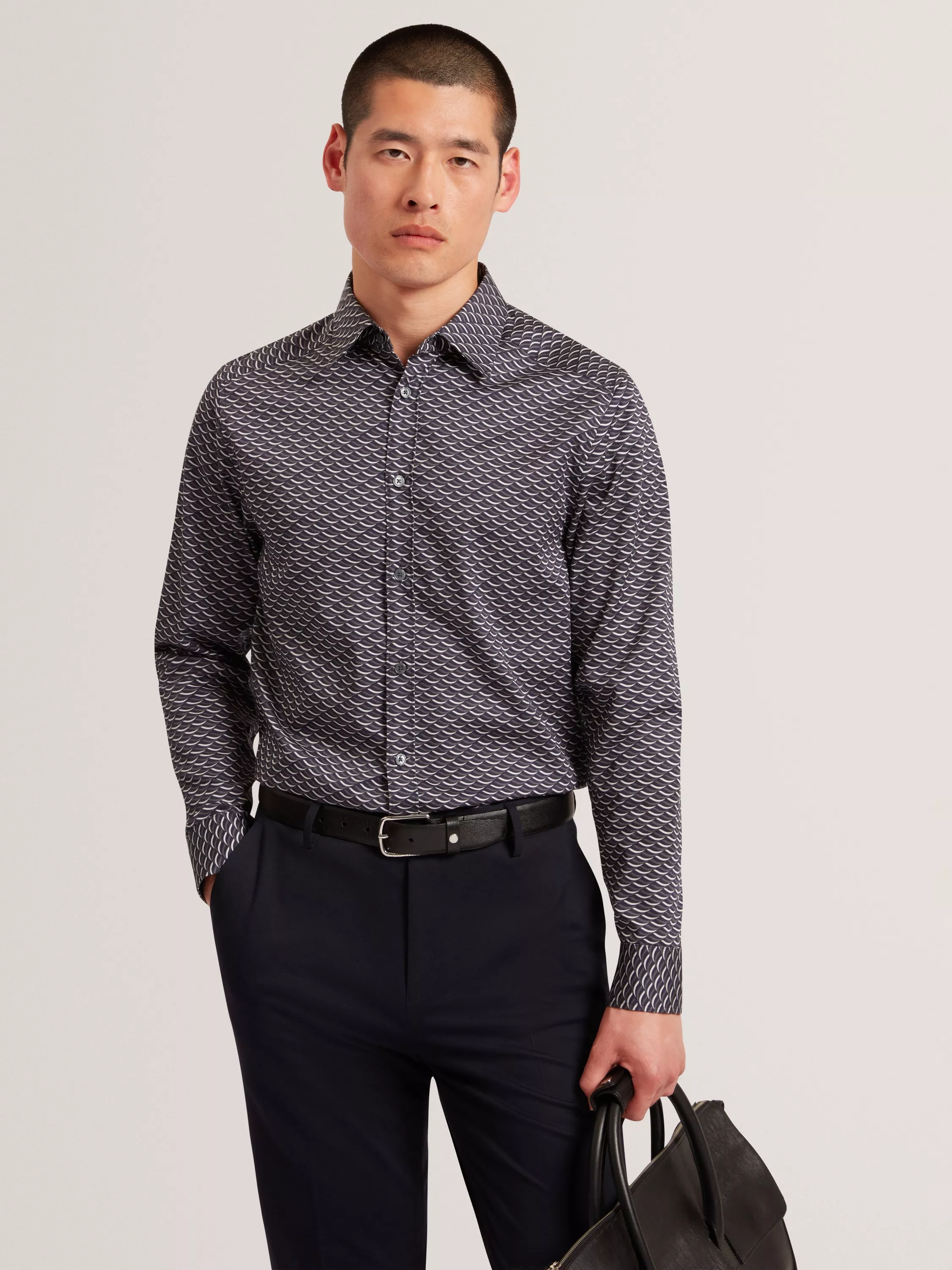 This Ted Baker shirt adds personality to your day with its wave geo print and crisp collar. Soft cotton keeps you comfortable, while the regular cut ensures it suits any plan.