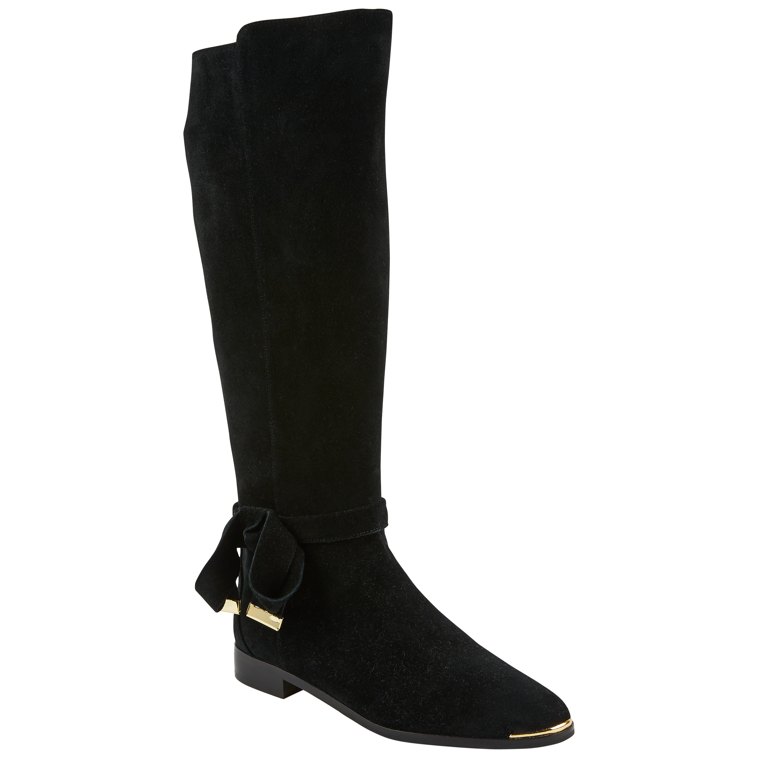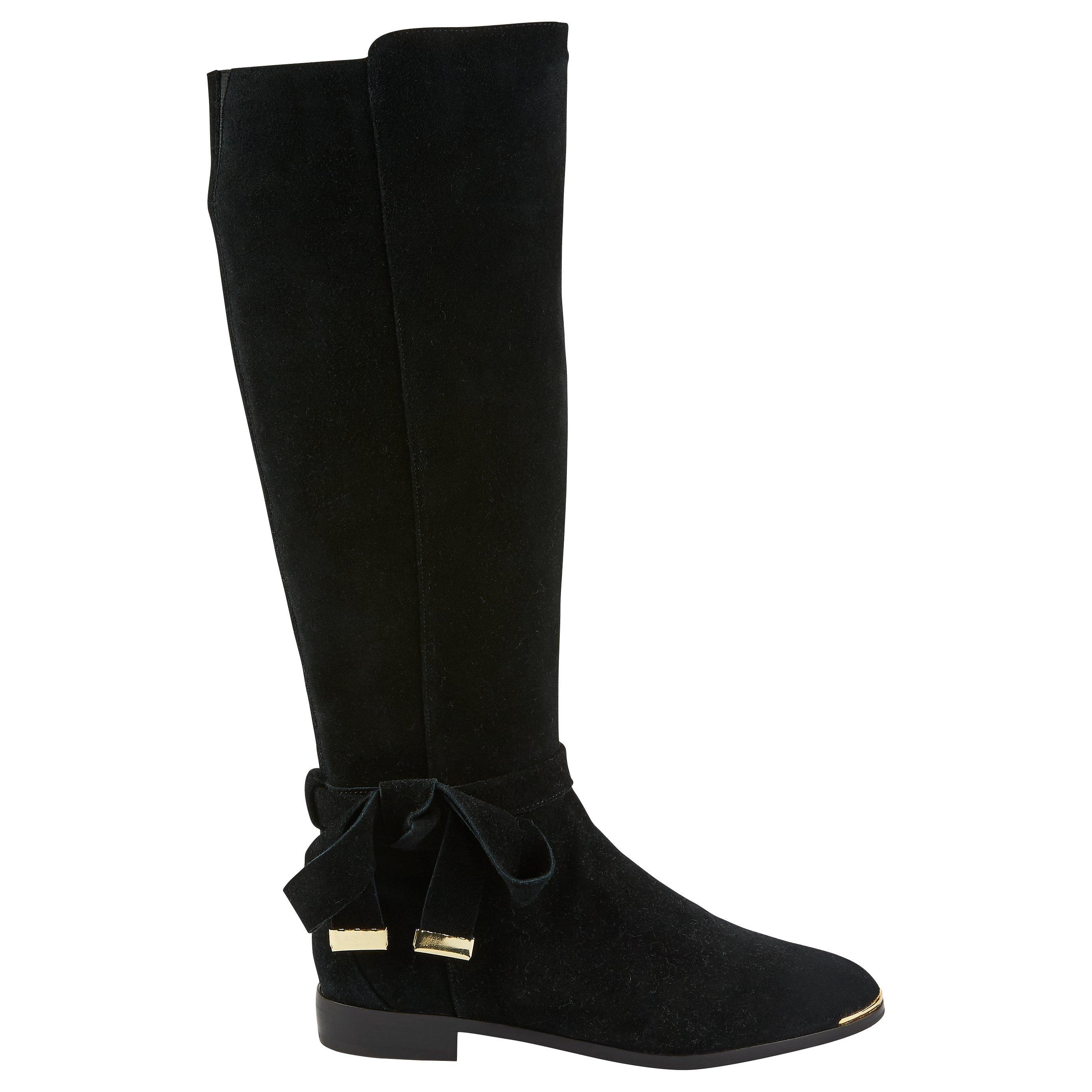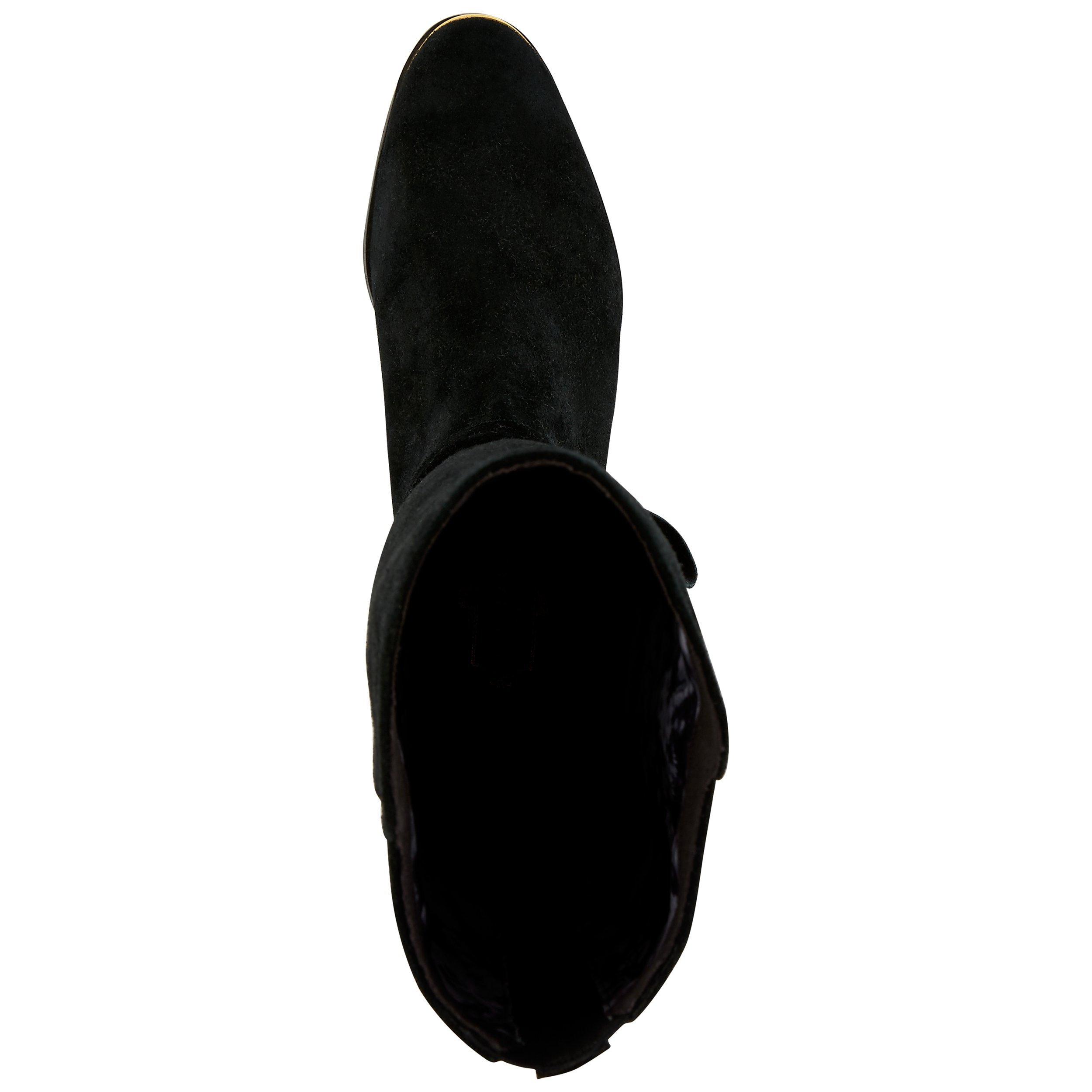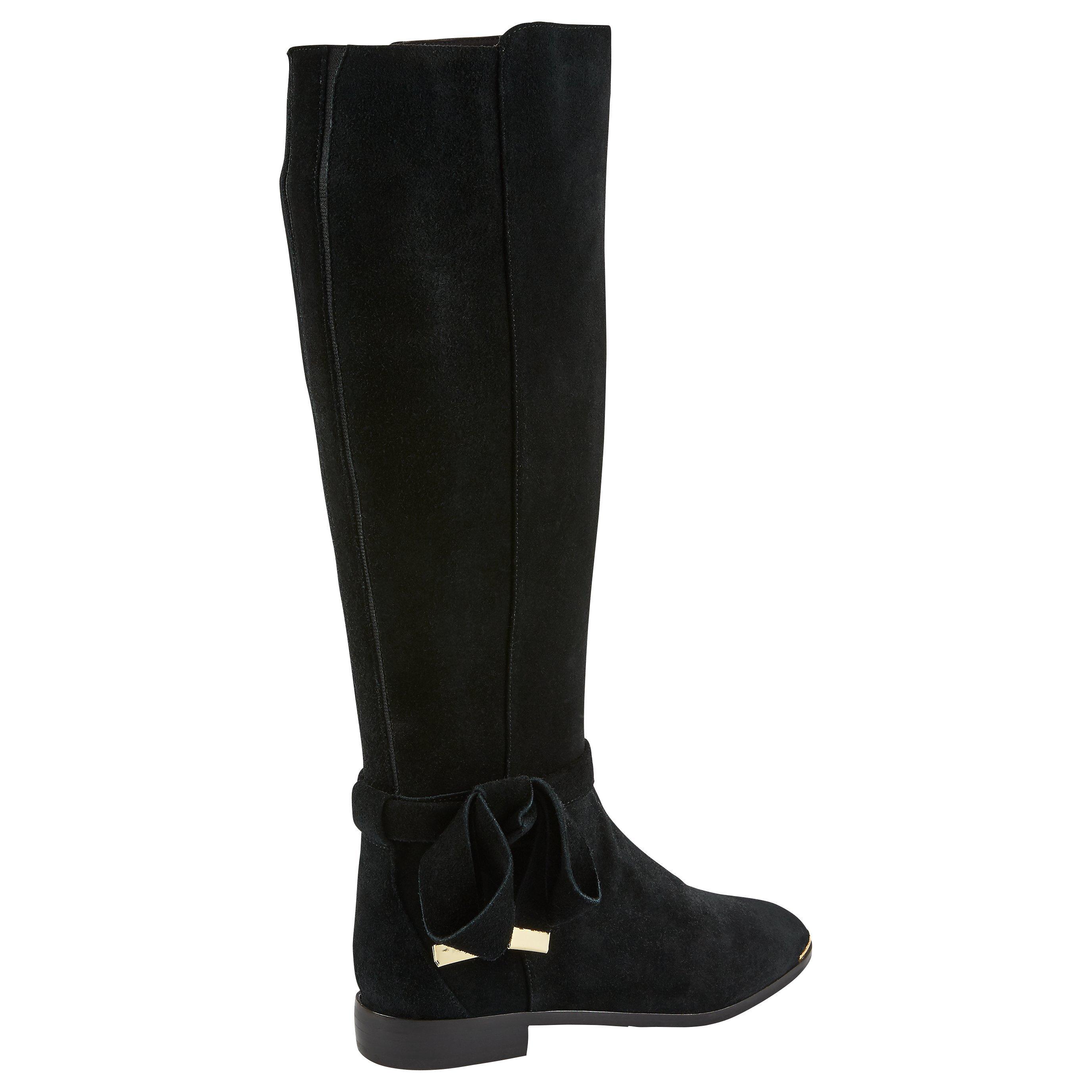 Delicately crafted from finest suede and cut to a classic knee-high style, they're set atop a practical low block heel with resin soles for optimal comfort and durability. Boasting an elegant strap and bow to the ankle, gold-coloured accents to the almond-shaped toe lend a glamorously eye-catching finish.