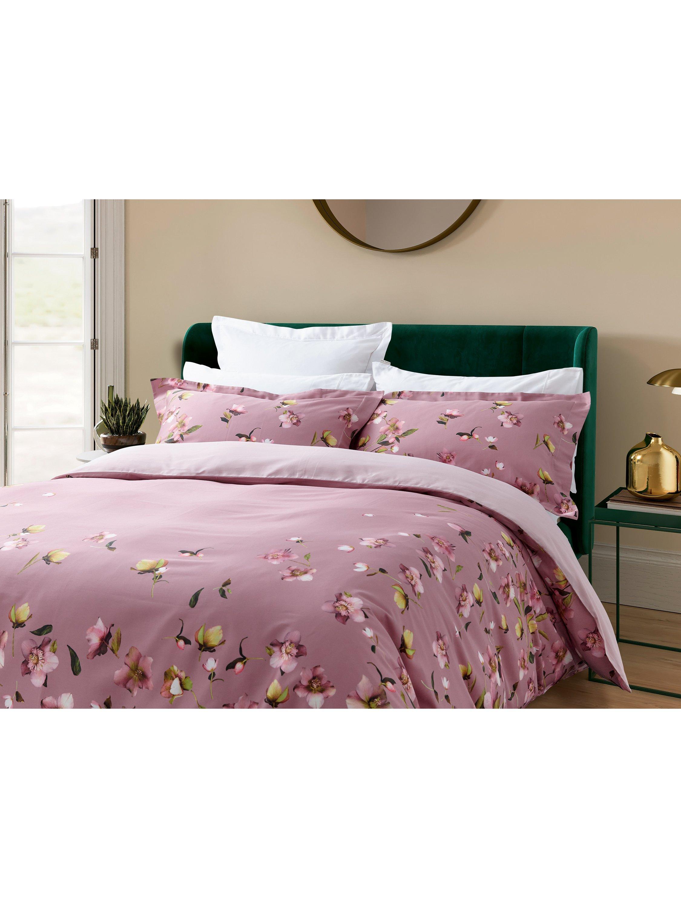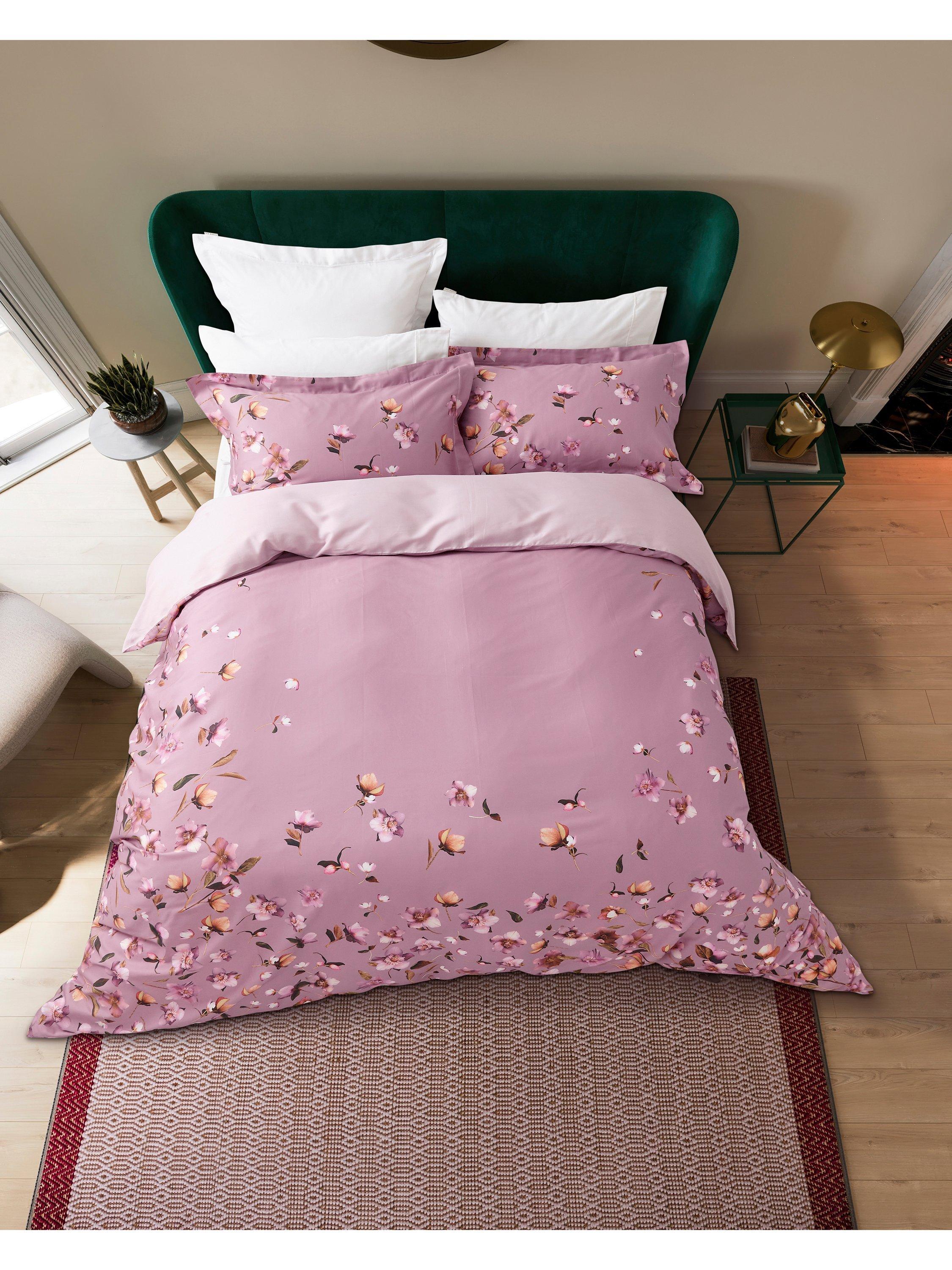 Perfect for balmy summer nights, Arboretum is scattered with a lush explosion of colourful wildflowers arranged around the outer edges of the duvet cover and cascading down the coordinating Oxford pillowcases. Digitally printed on 220 thread count cotton sateen in a delicious palette of rose pink, blush and amber tones.