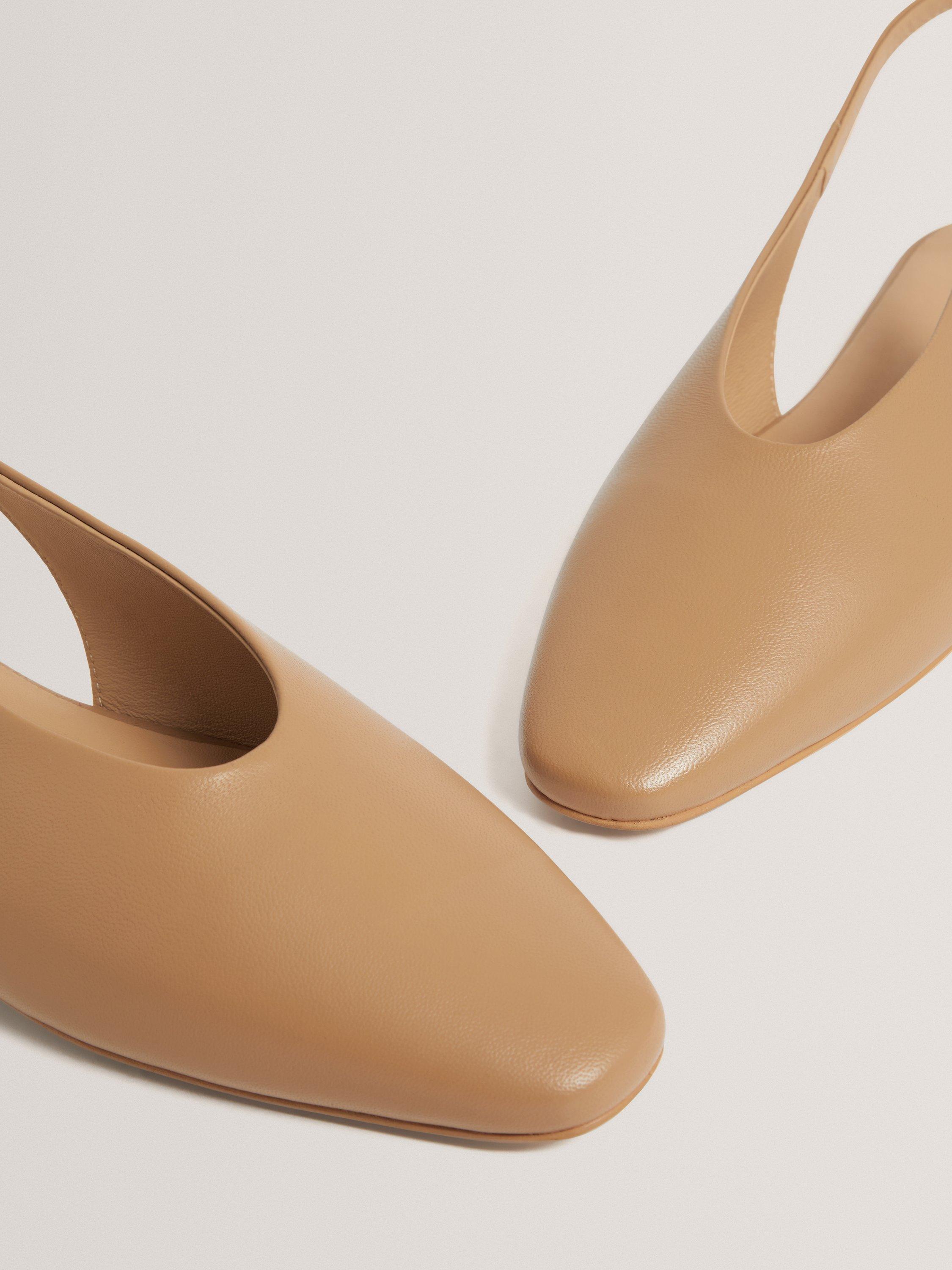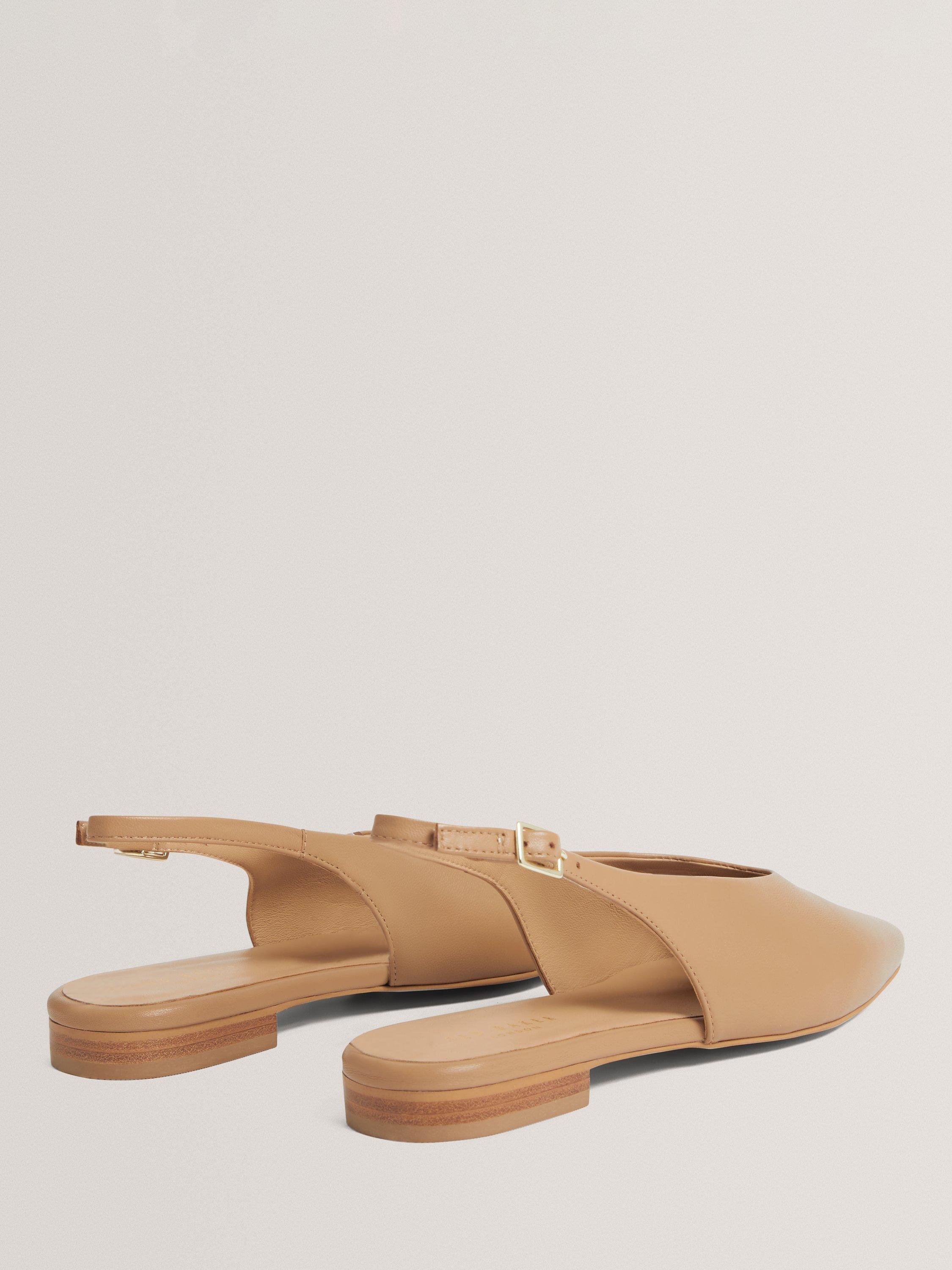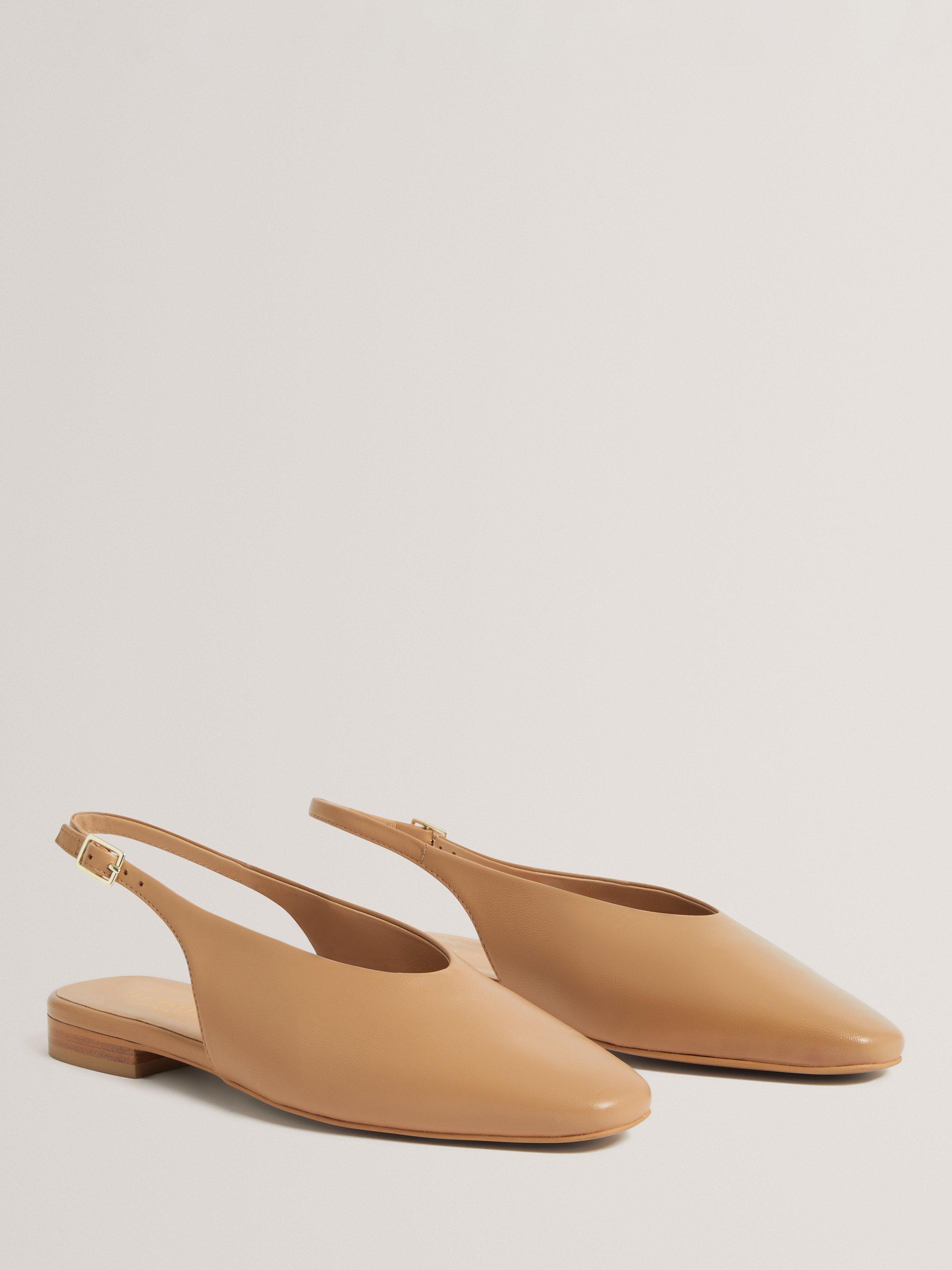 Ted Baker ballerina pumps, crafted in soft leather with a supportive adjustable buckle slingback, low block heel and almond toe.