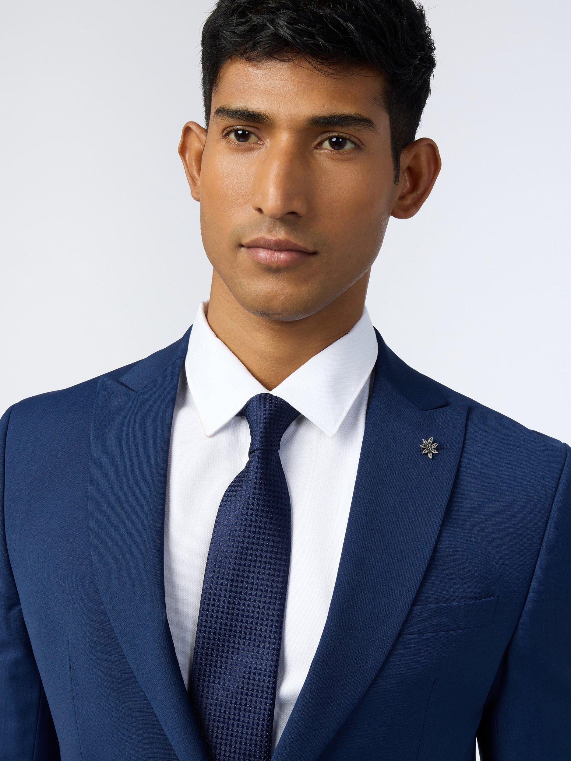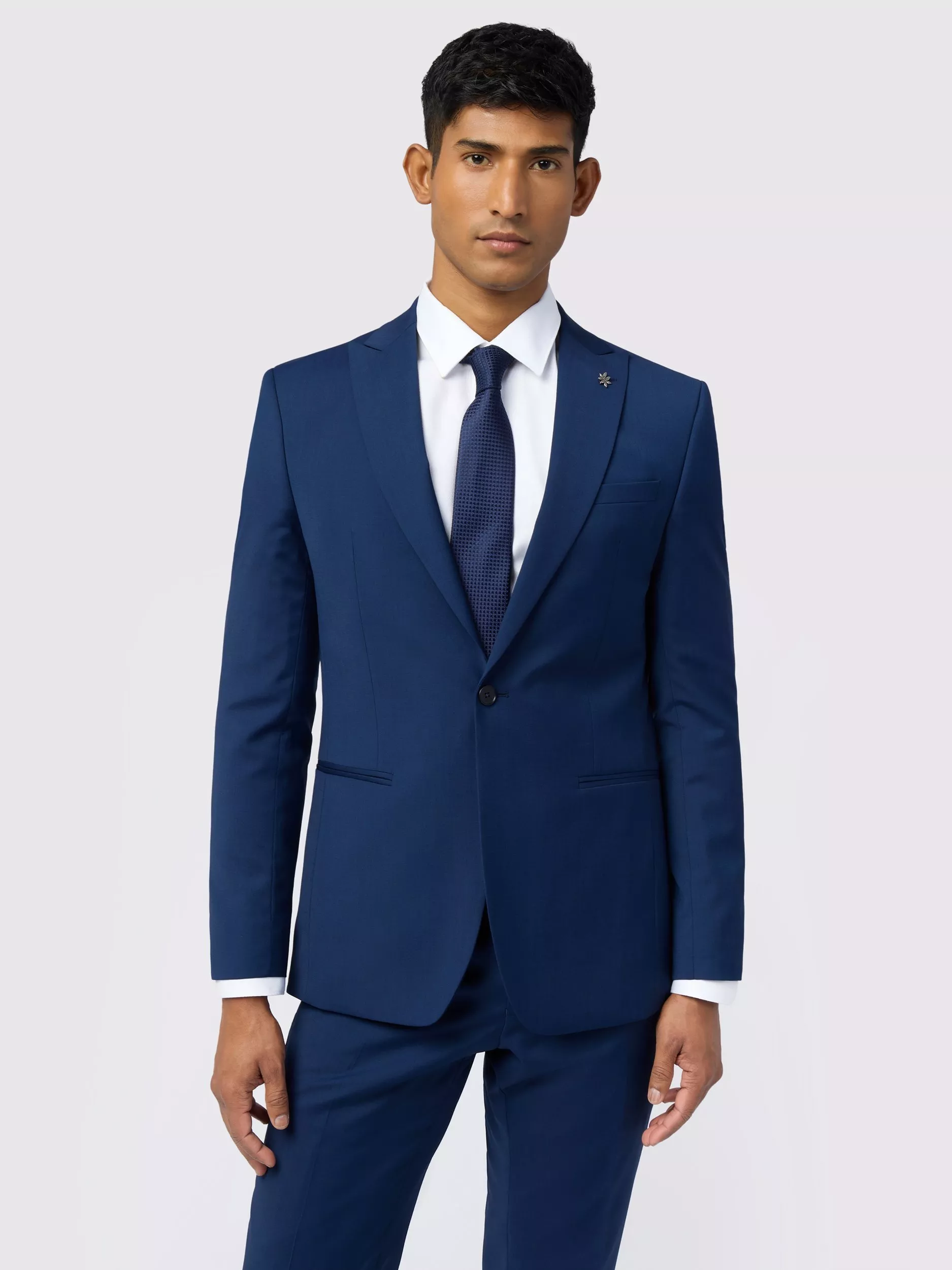 The Auden Bright Blue Tonic suit jacket is tailored in the signature Ted Baker slim fit. Crafted from a wool-blend with a touch of stretch, the bold cobalt blue tone has a beautiful lustre that brings sophistication to any wardrobe. Finished with Ted Baker’s exclusive ornate bird print lining and the signature flower lapel pin, the pocket lining can be used as a pocket square.