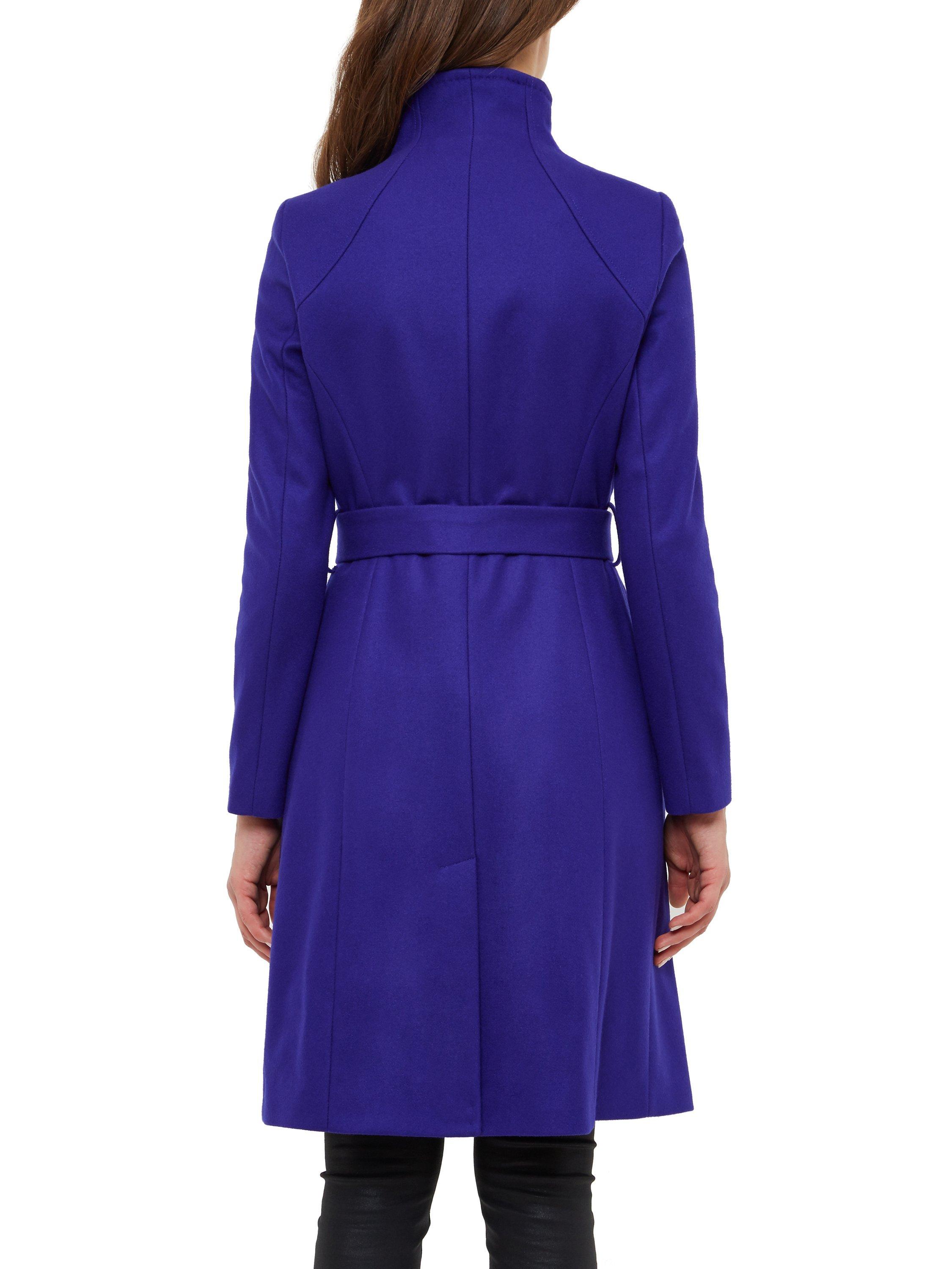 Crafted from a wool blend, with a hint of cashmere for a luxe handle. This flattering long style is designed with a high funnel neck, wrap-over front and button fastening.