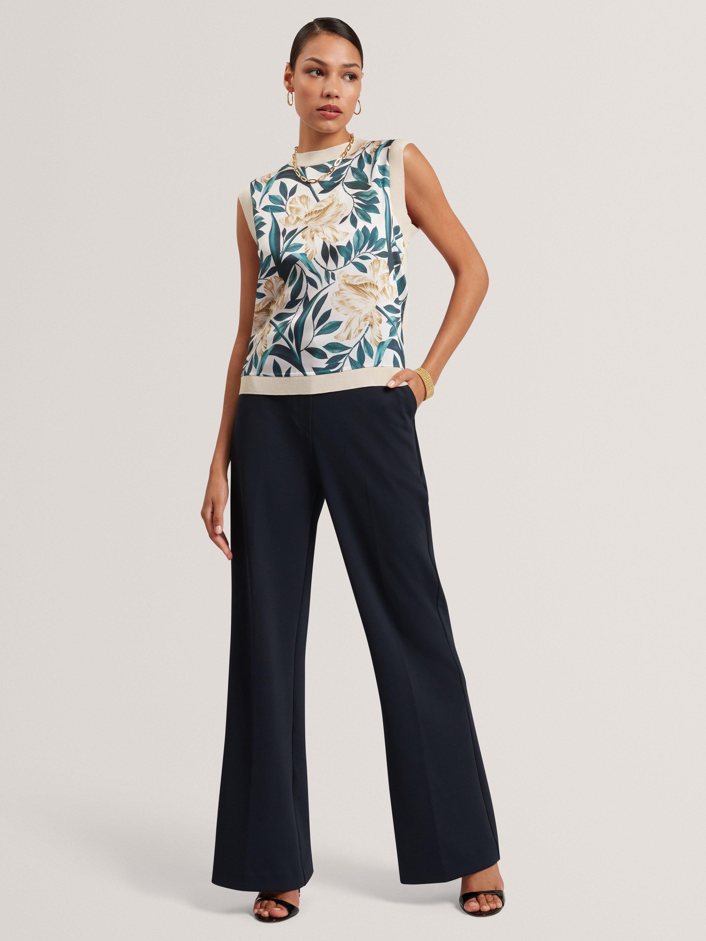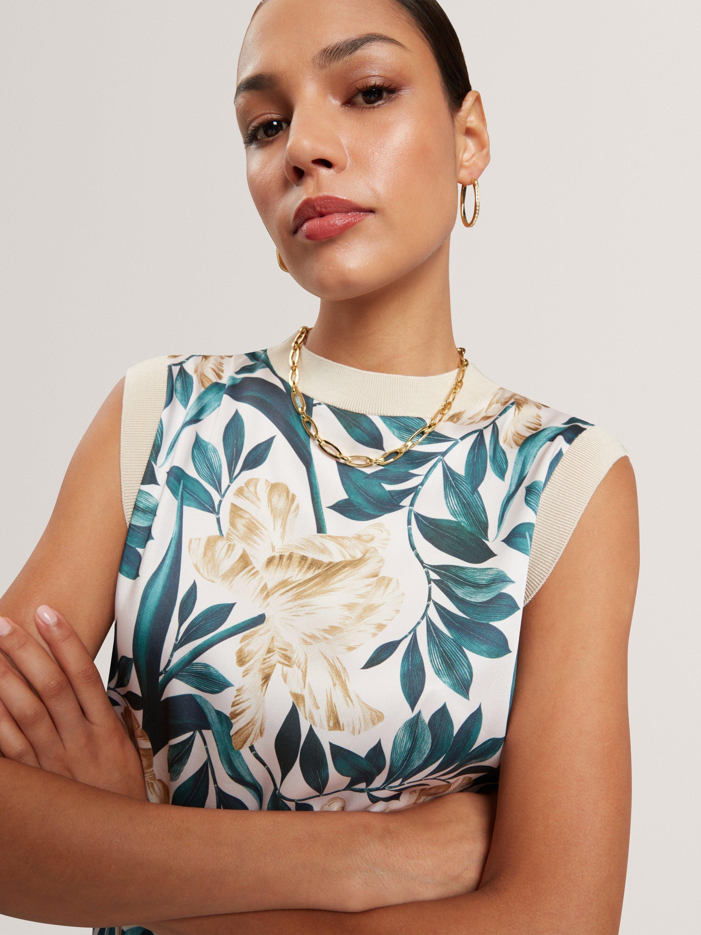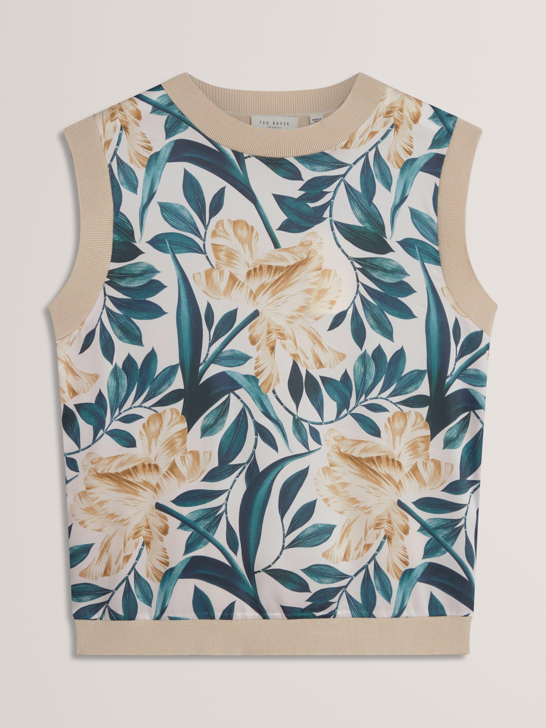 Bring a touch of effortless elegance to your look with the Aylli Top. Featuring a soft woven front adorned with a delicate floral print, this sleeveless style is perfect for warm days or layering under blazers.
