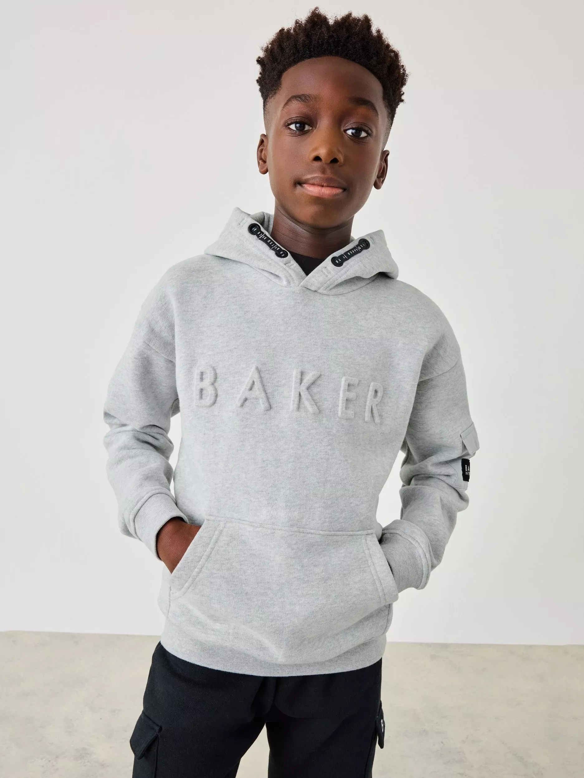 Made in a soft cotton blend, the classic winter essential has the iconic Baker branding embossed on the front with a pocket on the sleeve that has a branded badge on it and a kangaroo pocket on the front. Team it with jeans and trainers for the perfect playtime outfit.