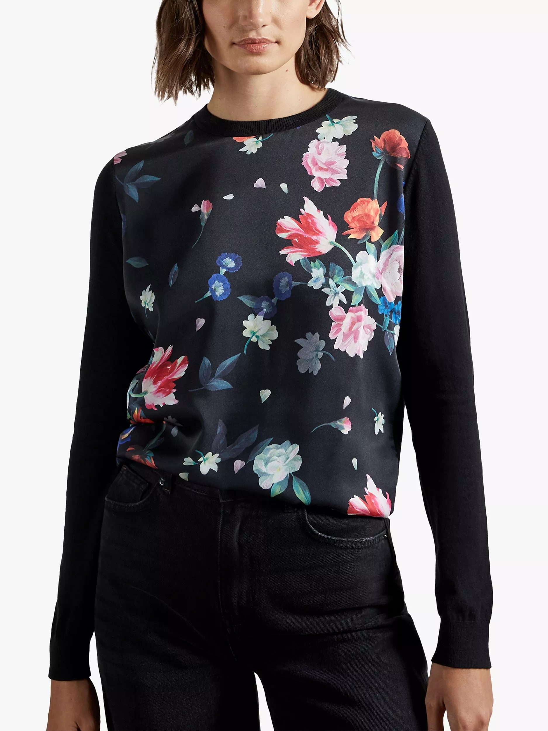 Adorned with Ted Baker's signature digital florals, this jumper is effortless and easy to slip on with smart cigarette trousers or casual denim. Gently fitted with neat ribbed trims, it's knitted from a soft cotton yarn that you can wear from season to season.