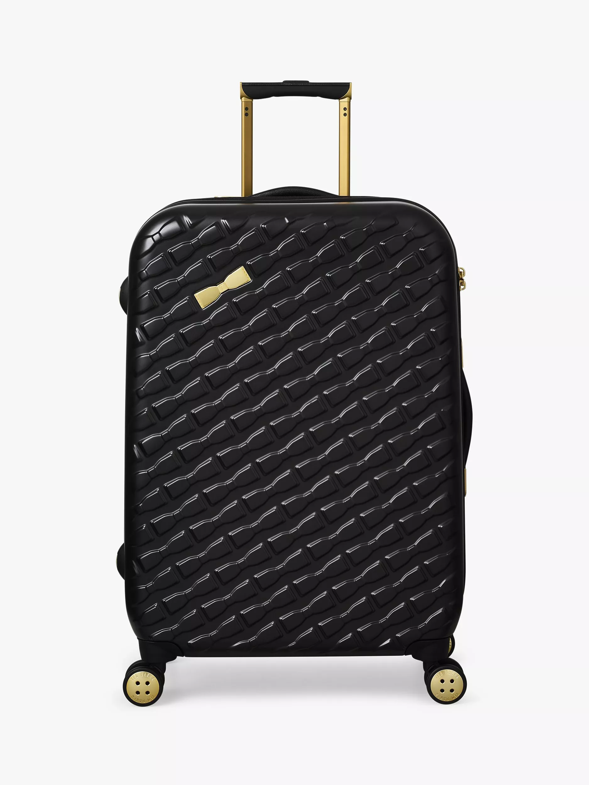 The state of the art aircraft grade aluminium has a lightweight trolley system, with full bespoke Ted Baker hardware in rose gold finish. Four smooth rolling double wheels for ultimate 360 degree manoeuvrability.