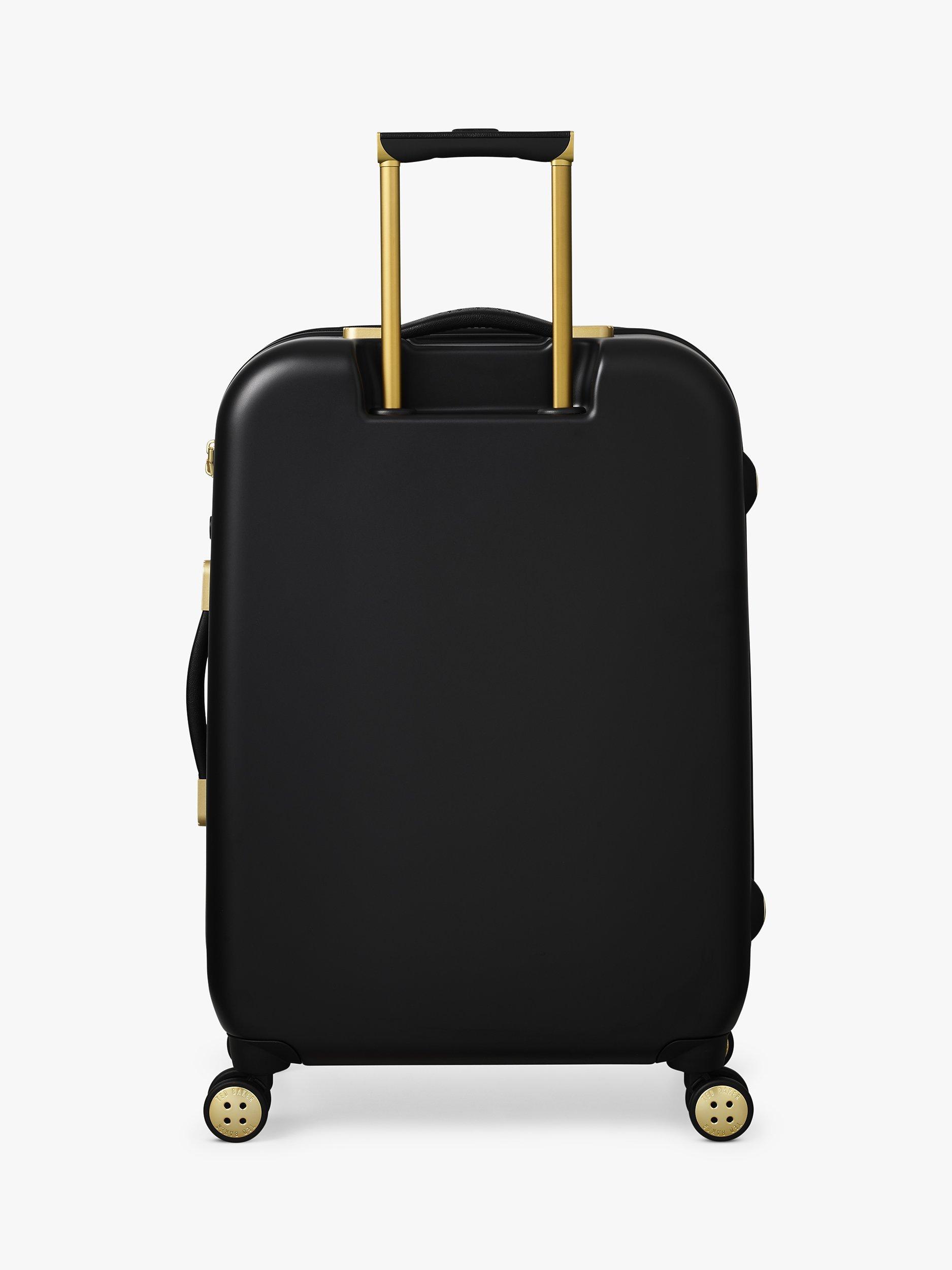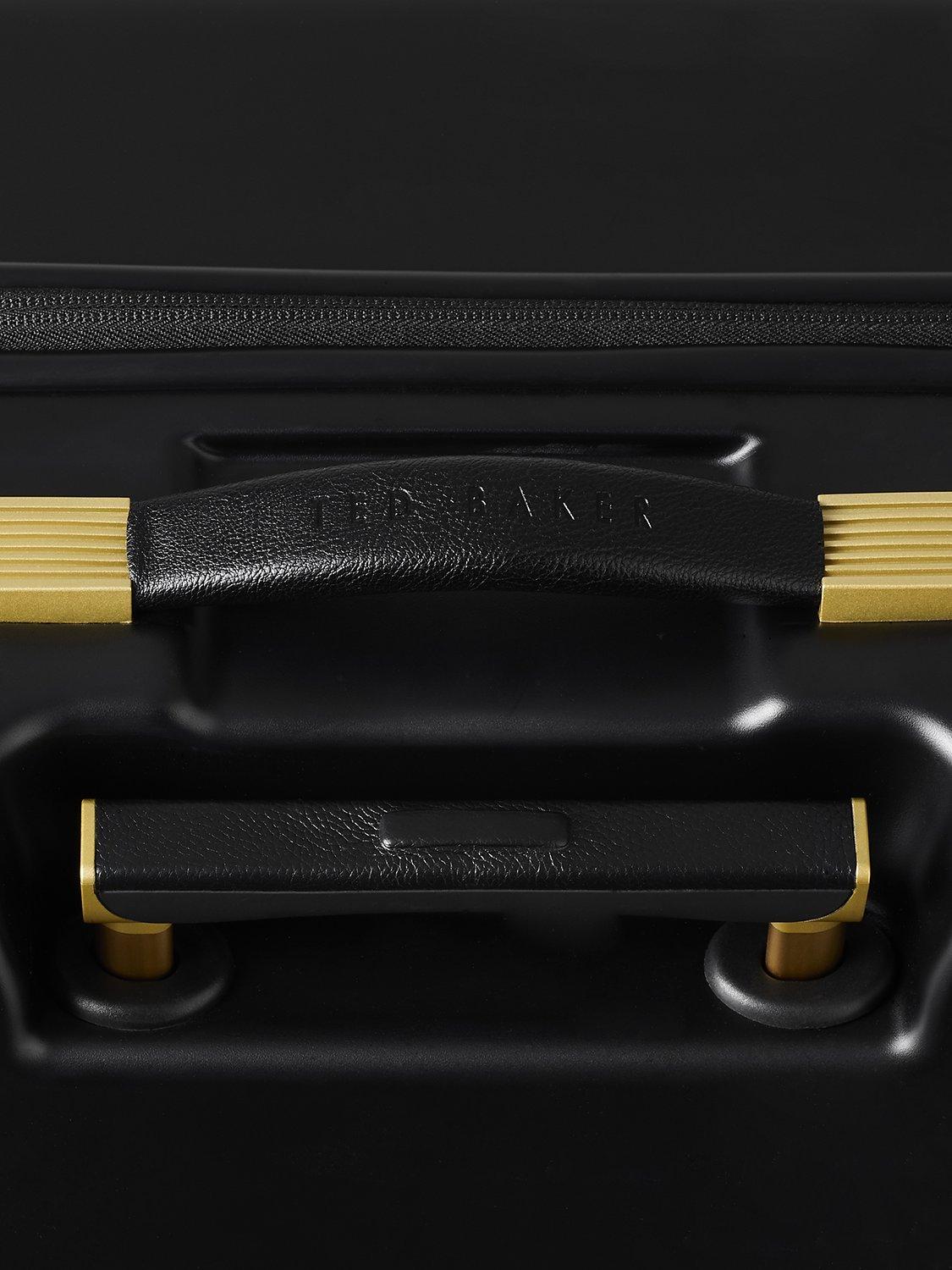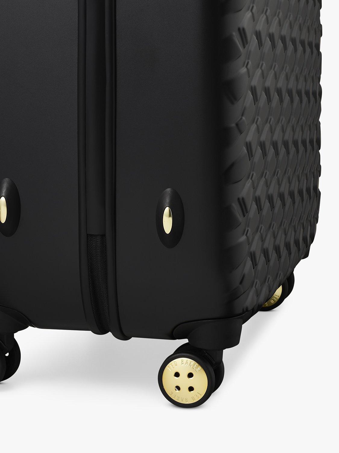 The state of the art aircraft grade aluminium has a lightweight trolley system, with full bespoke Ted Baker hardware in rose gold finish. Four smooth rolling double wheels for ultimate 360 degree manoeuvrability.