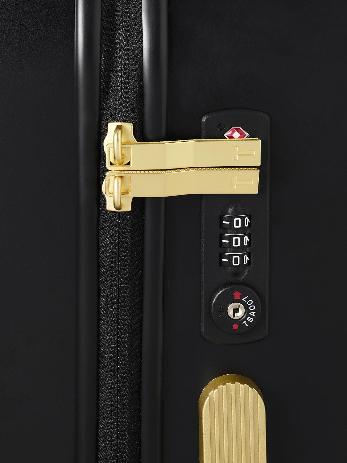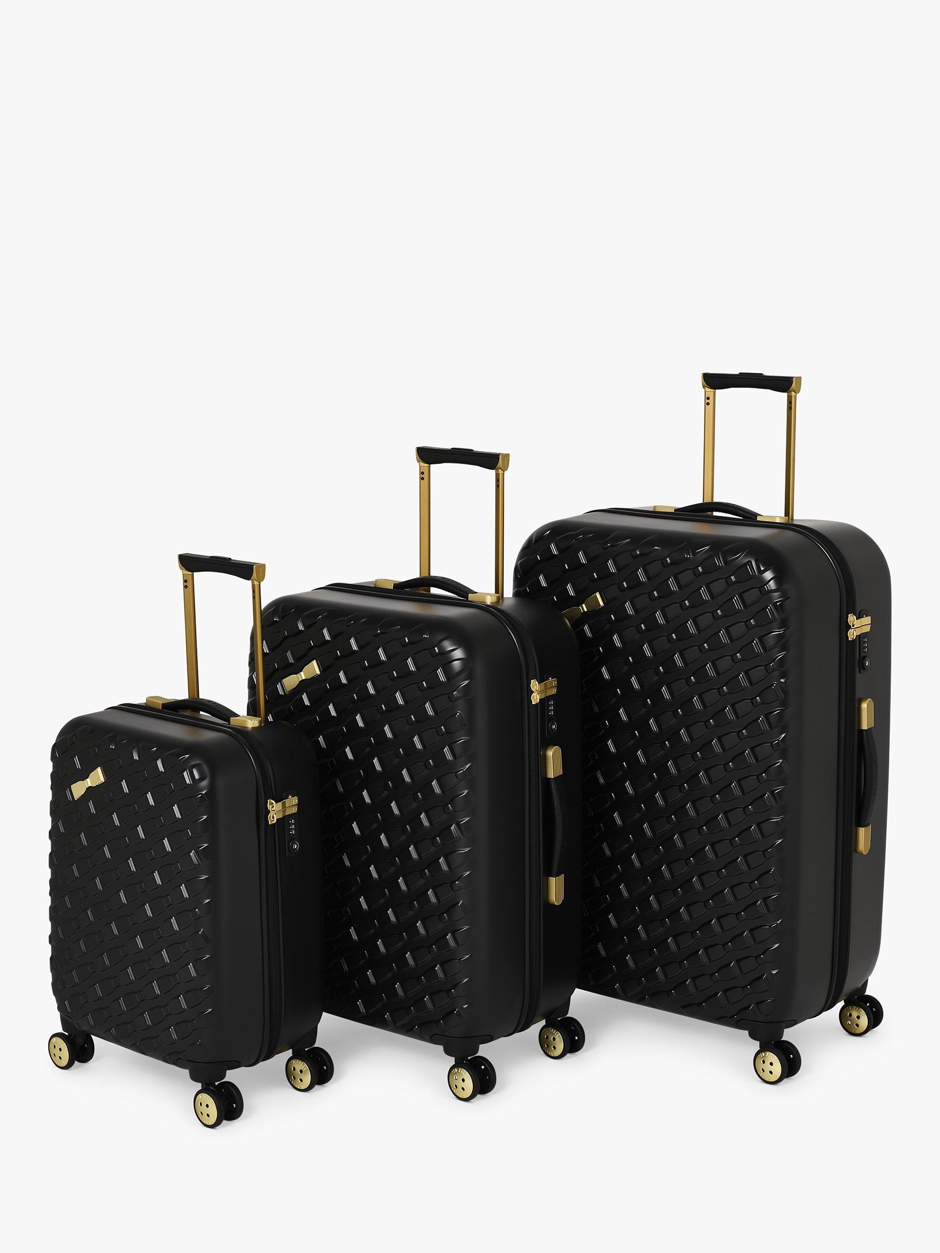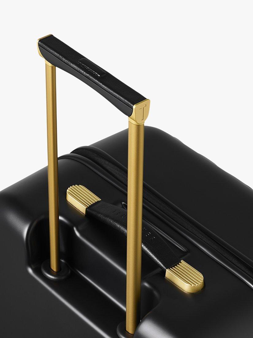 The state of the art aircraft grade aluminium has a lightweight trolley system, with full bespoke Ted Baker hardware in rose gold finish. Four smooth rolling double wheels for ultimate 360 degree manoeuvrability.