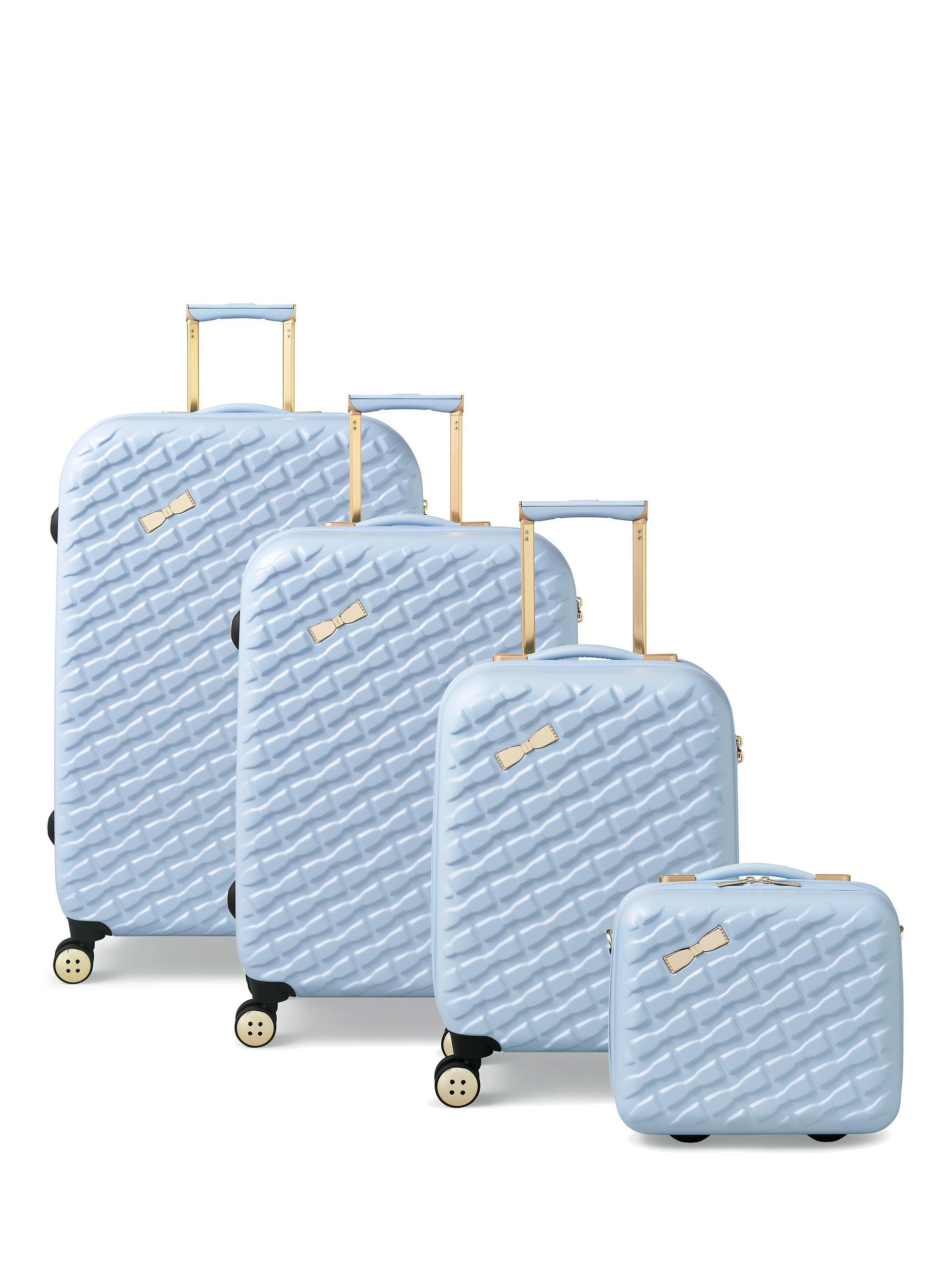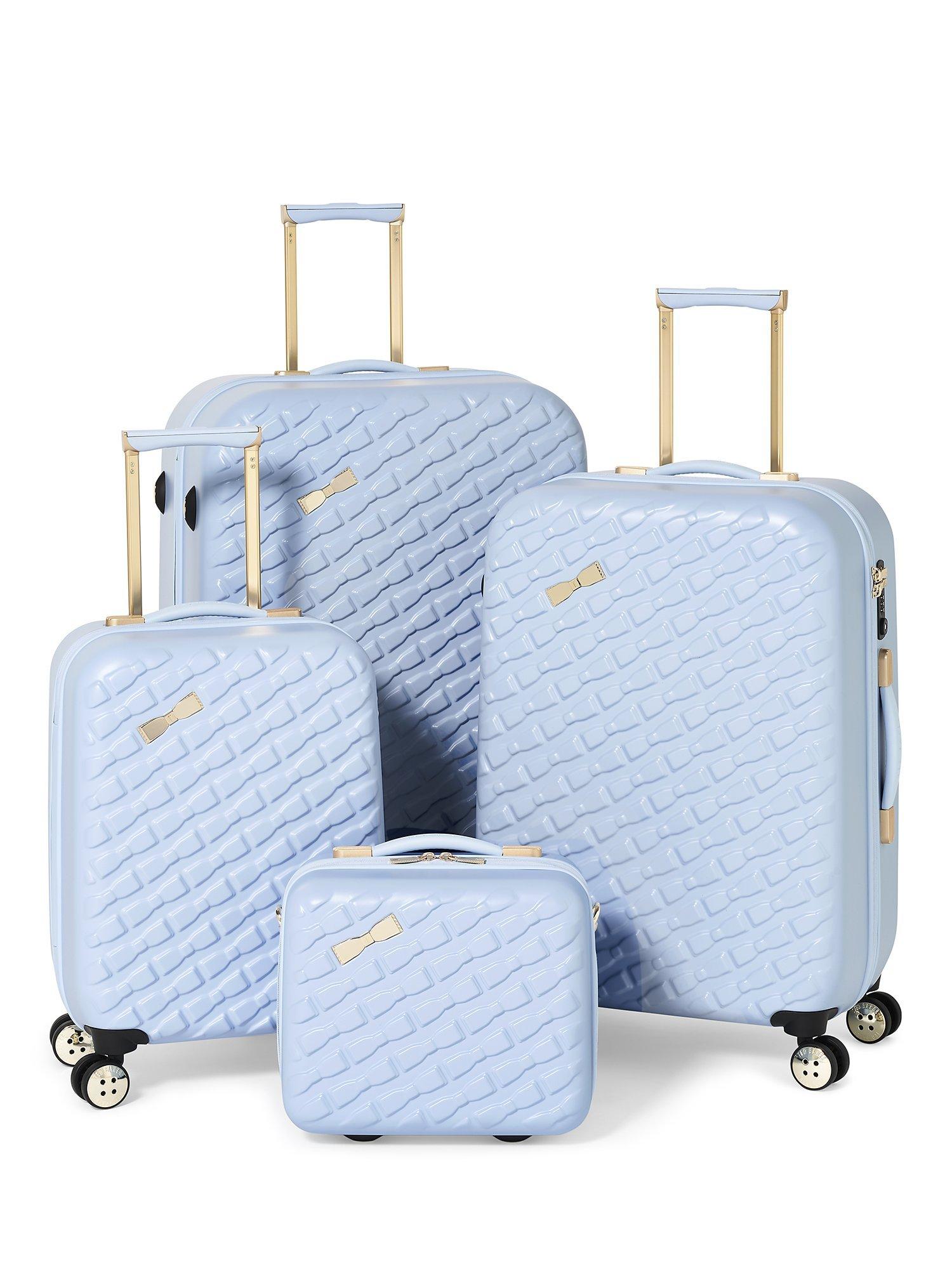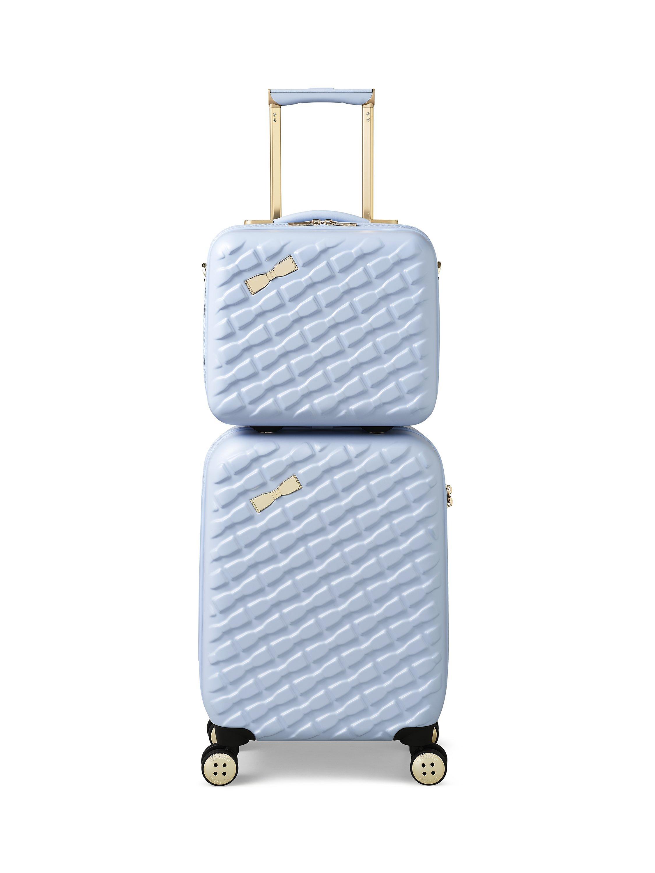 Boasting a unique and distinctive moulded bow shell, the case has a shoulder strap with full bespoke Ted Baker hardware in rose gold. This lightweight piece has a signature lining and a trolley sleeve to complete the look.