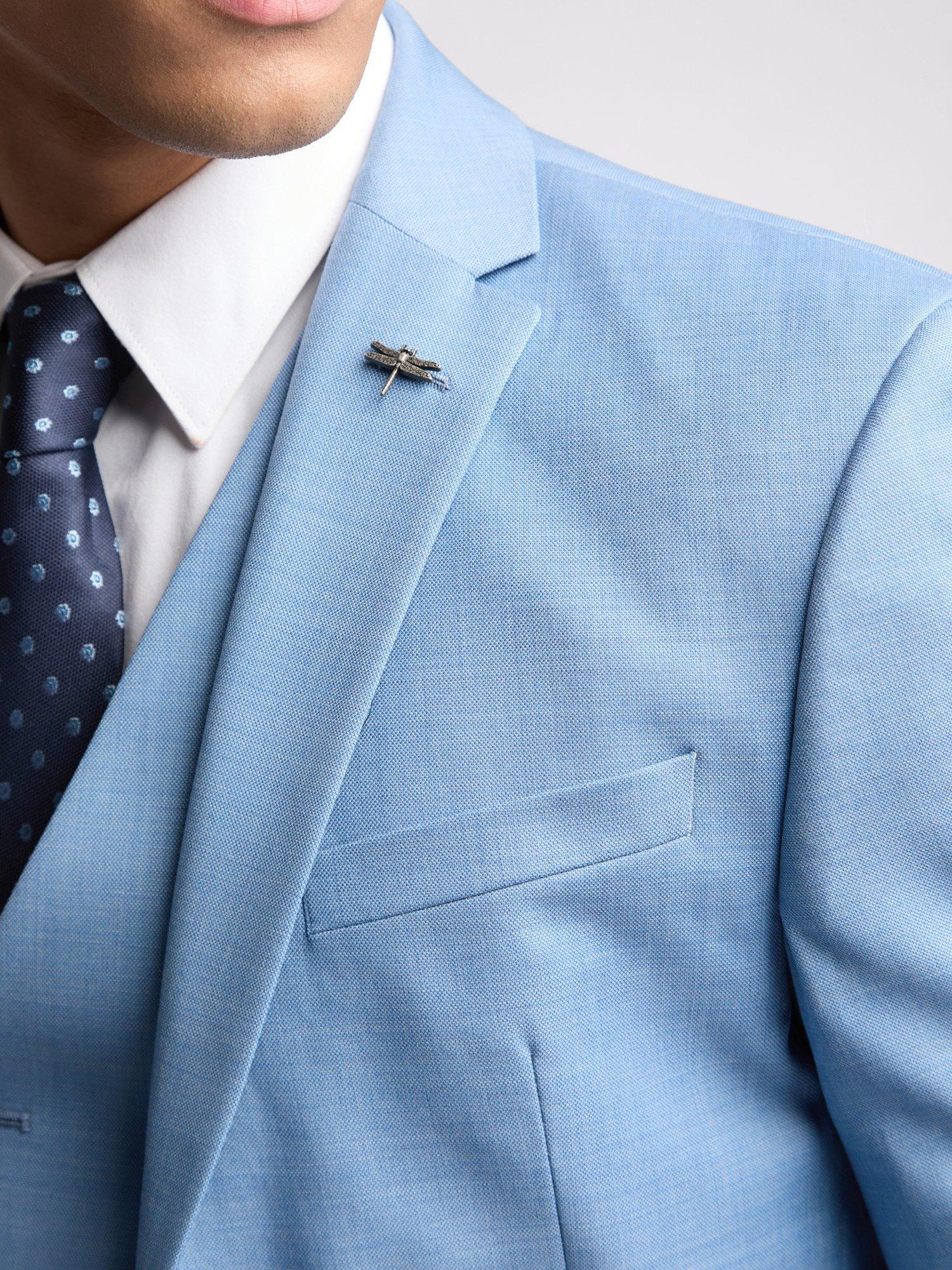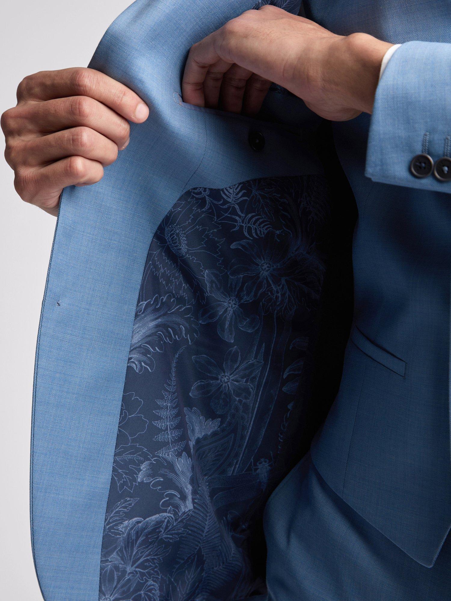 This slim fit, wool blend suit jacket comes complete with 4 button cuff, 6cm notch lapels, 2 side flap pockets and 2 internal inbreast pockets. Side vents, a Ted Baker dragonfly lapel pin, and signature Ted Baker navy floral sketch lining finish off the overall style.