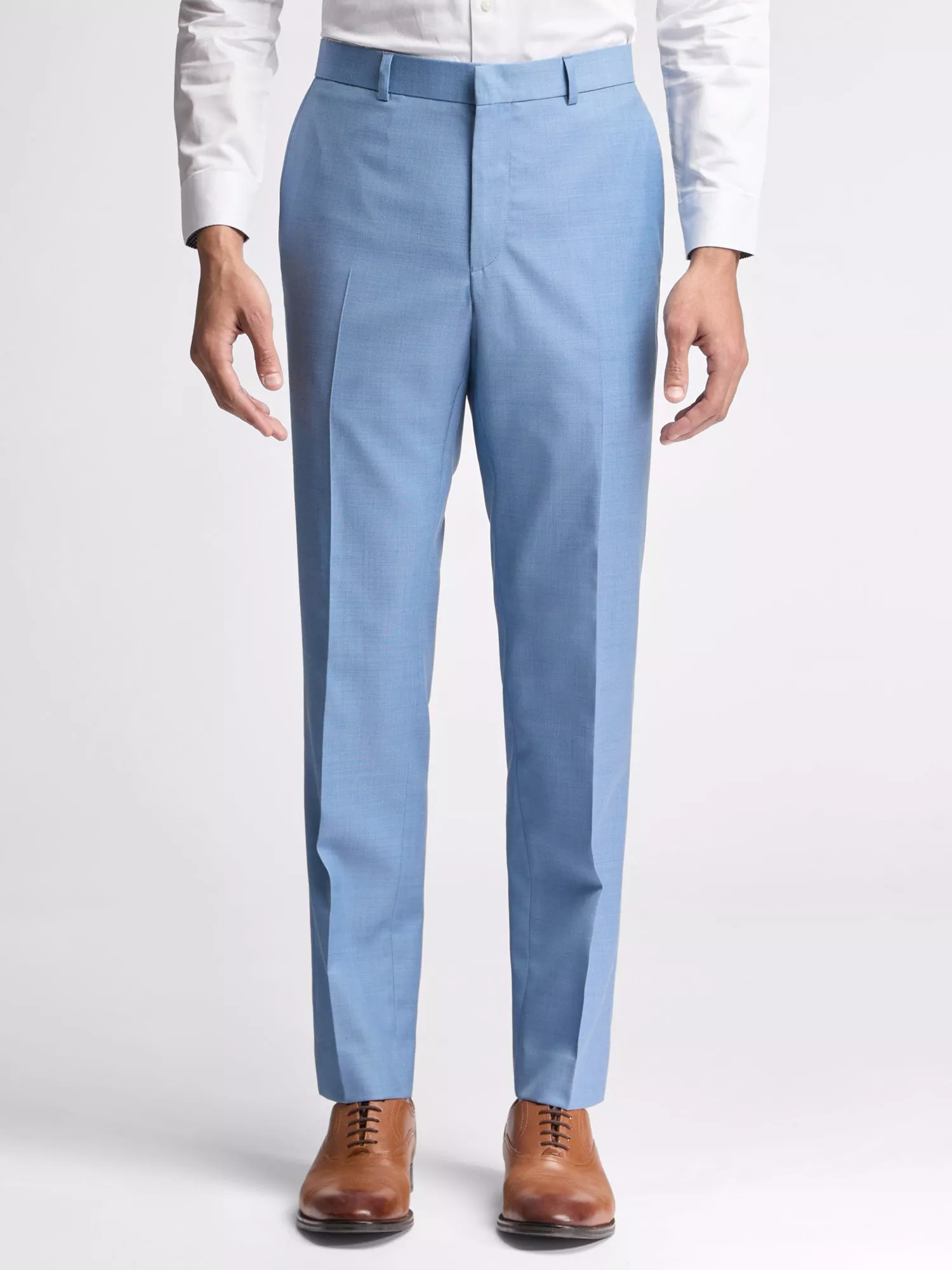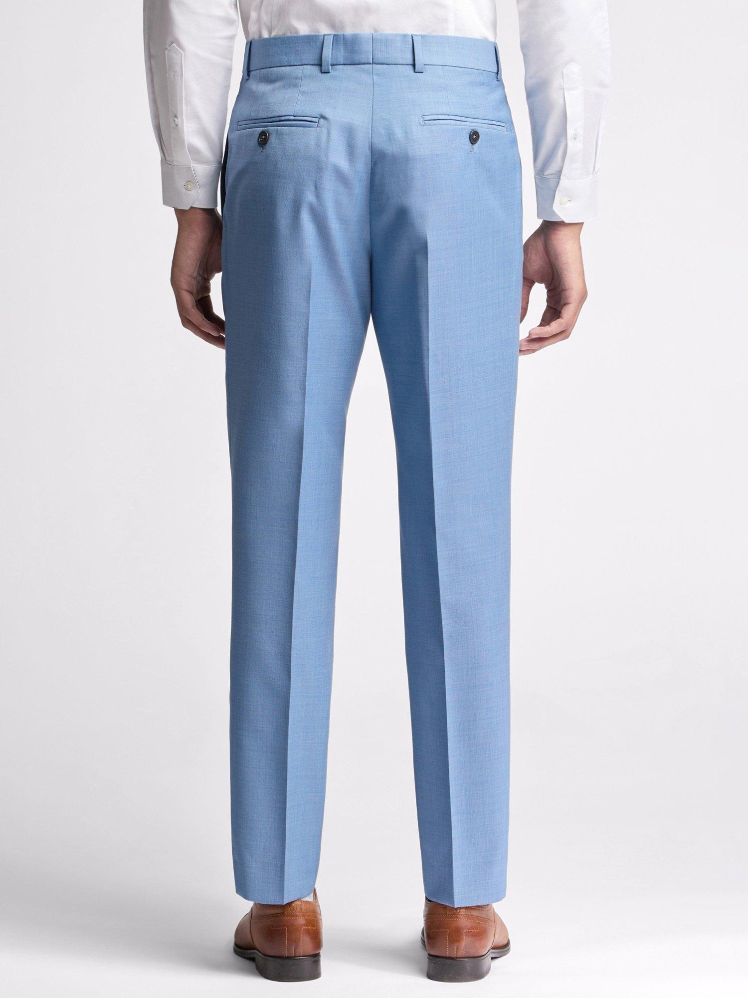 These slim fit suit trousers made with a soft wool blend have a plain front and 2 button through the hip pockets. Slant side pockets, belt loops and a hook and bar zip fastening complete the overall style.
