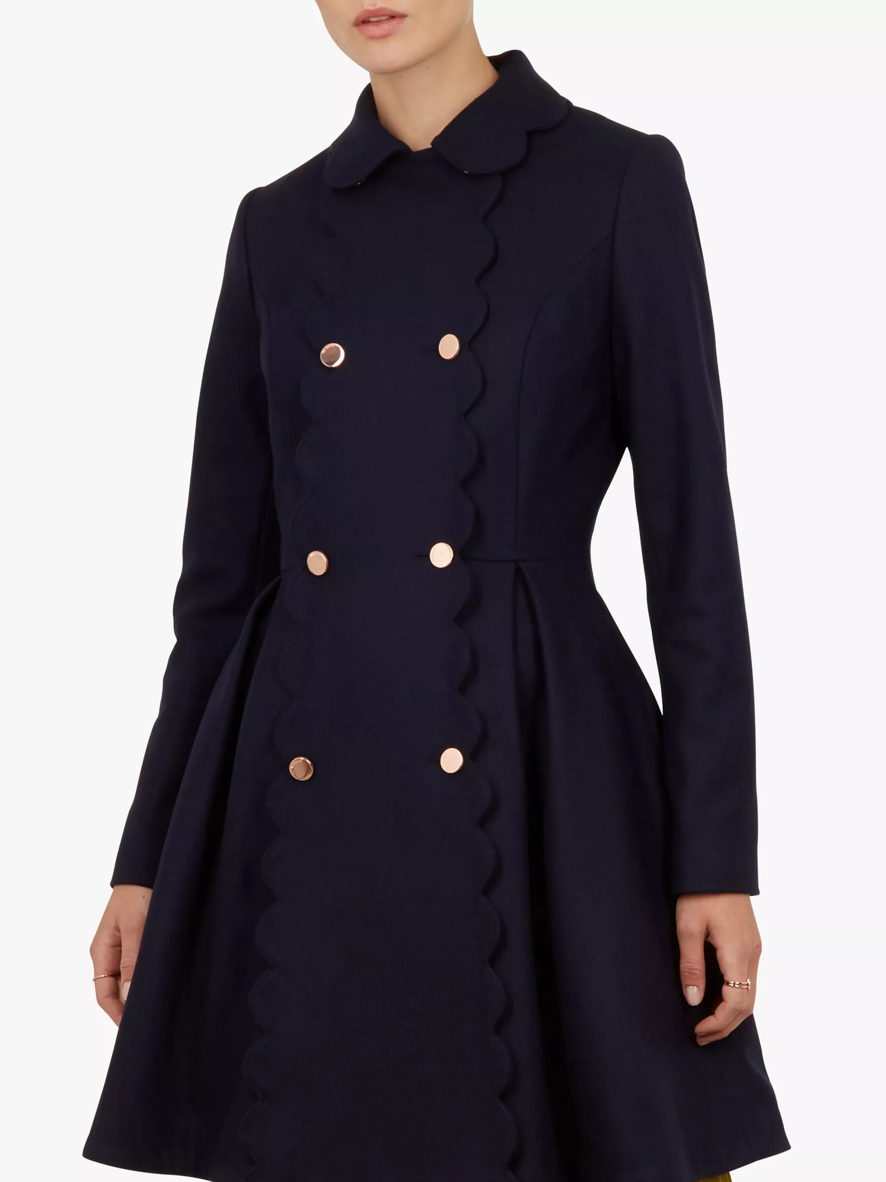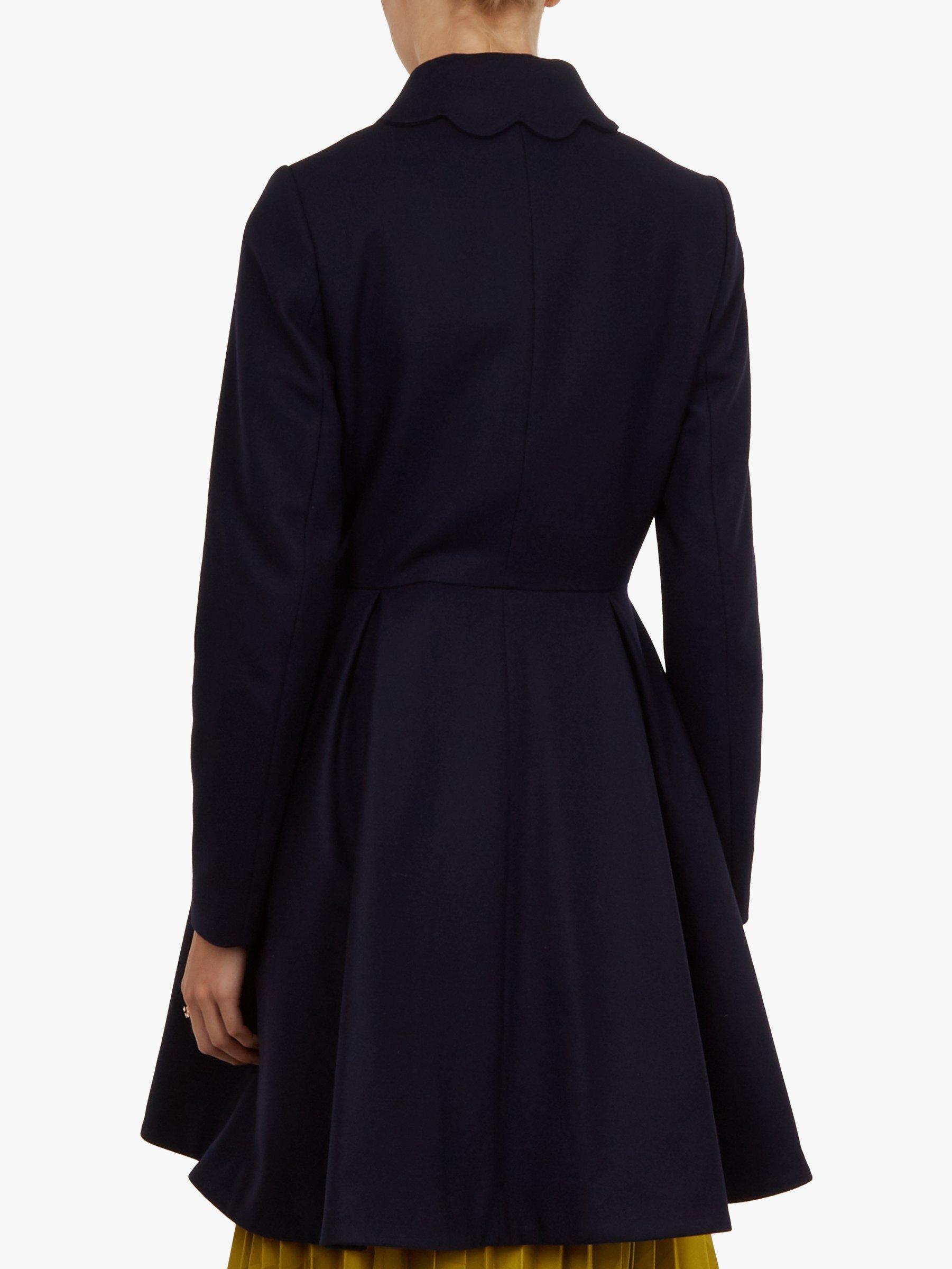 Swing into the new season with the Blarnch coat. Crafted from a wool-cashmere blend with scalloped detailing and a full-skirted design, it offers the ultimate in ladylike elegance.