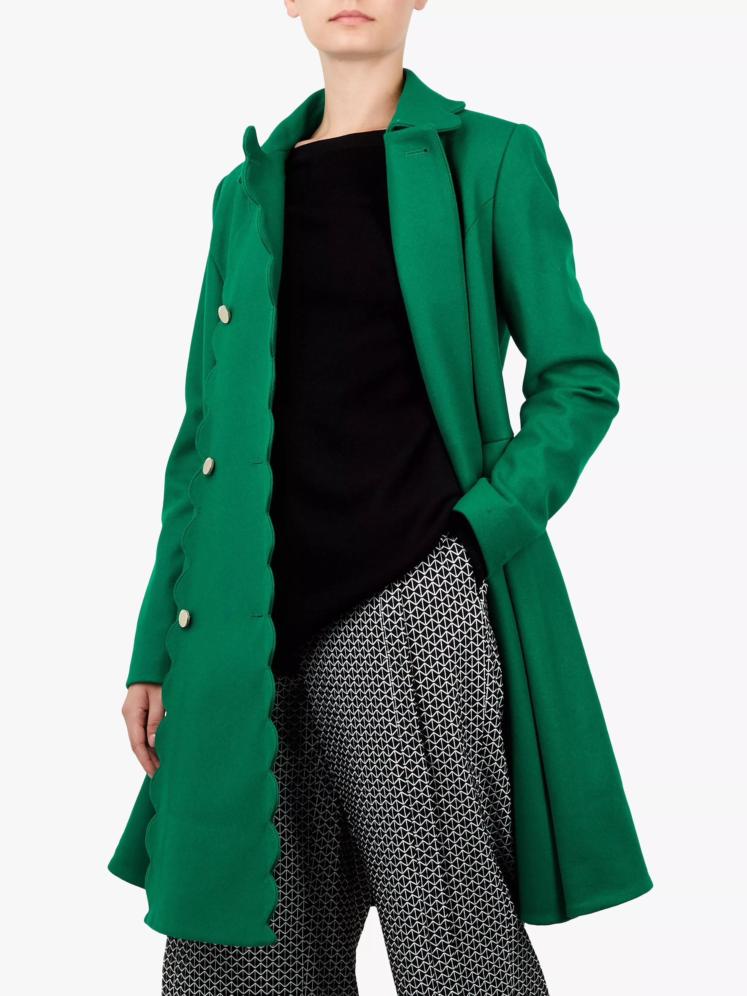 Swing into the new season with the Blarnch coat. Crafted from a wool-cashmere blend with scalloped detailing and a full-skirted design, it offers the ultimate in ladylike elegance.