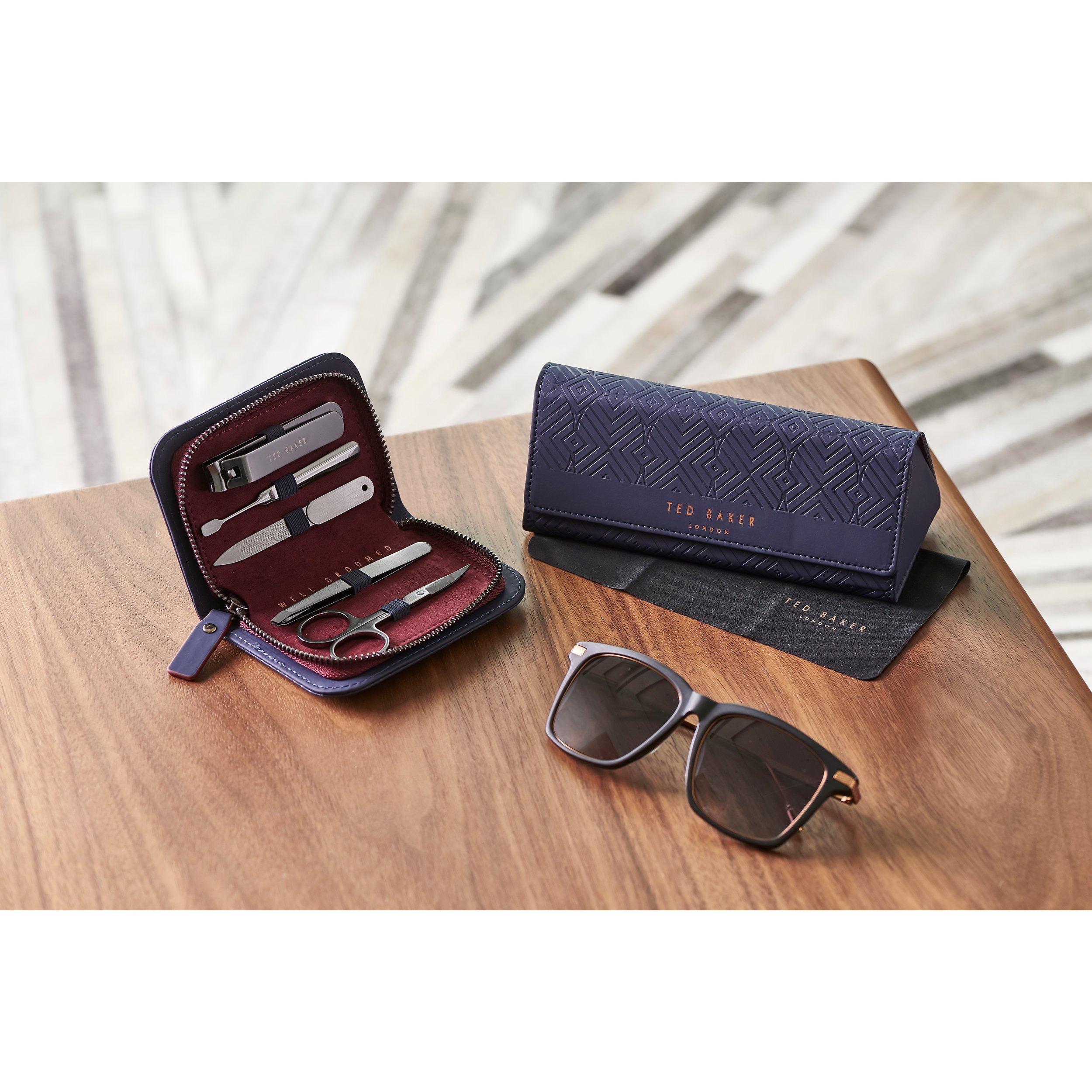 Carry your sunglasses in style with this eye-catching, foldable Ted Baker Glasses Case. The smart faux leather case will keep your glasses safe and secure, with a clever envelope design that folds flat to save space. A delightful designer accessory, it would make an ideal gift for the fashion forward gentleman in your life.