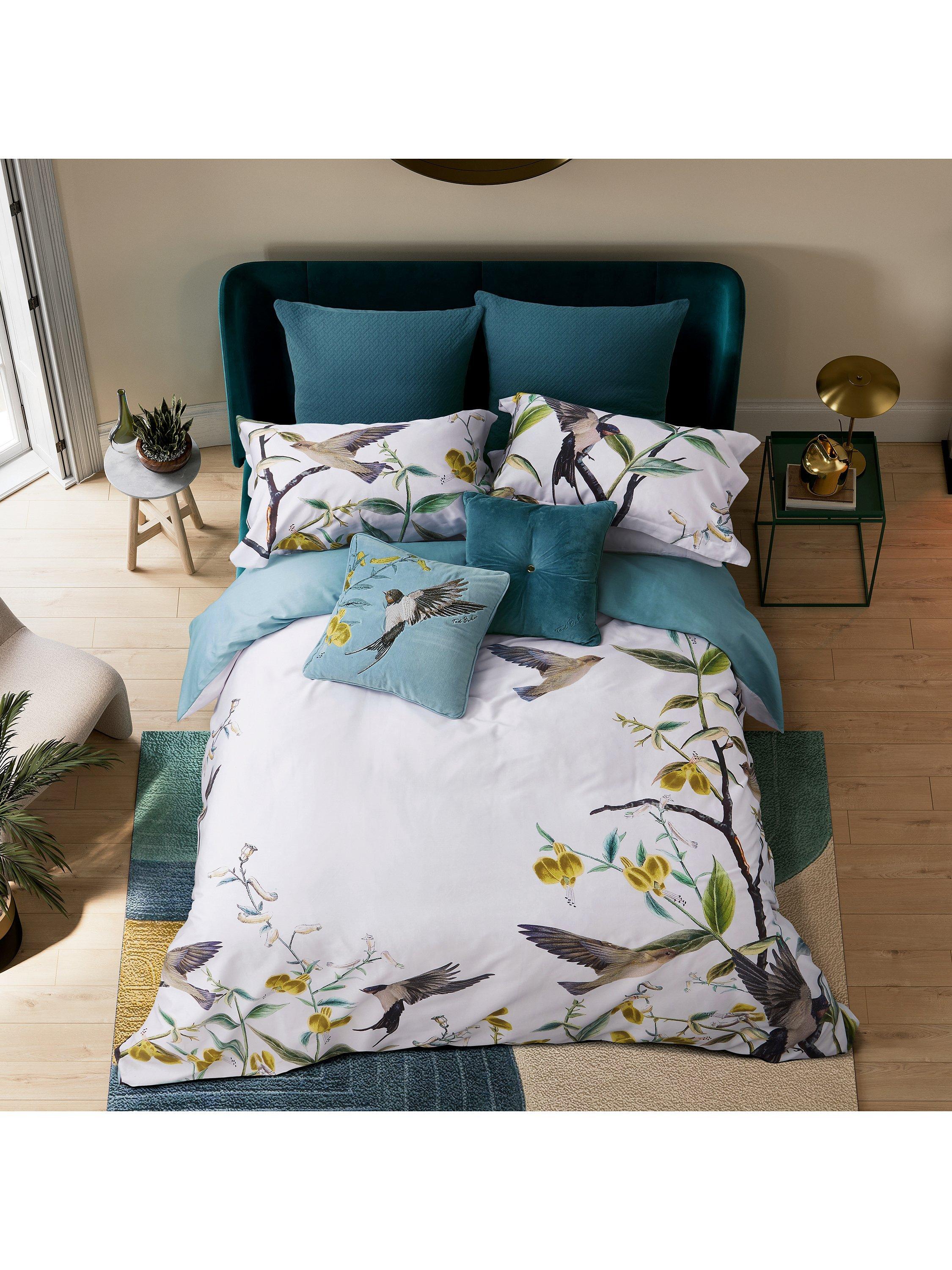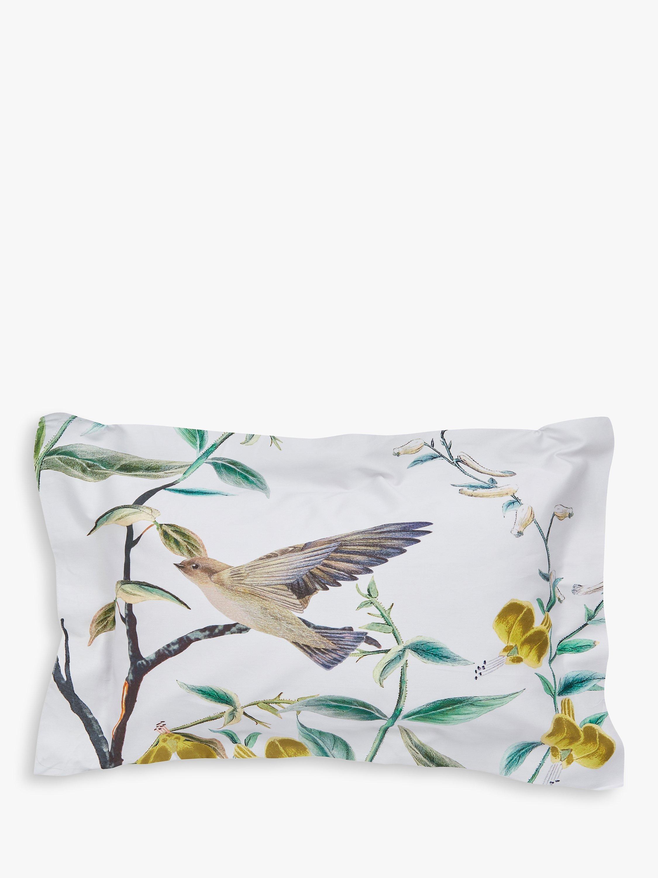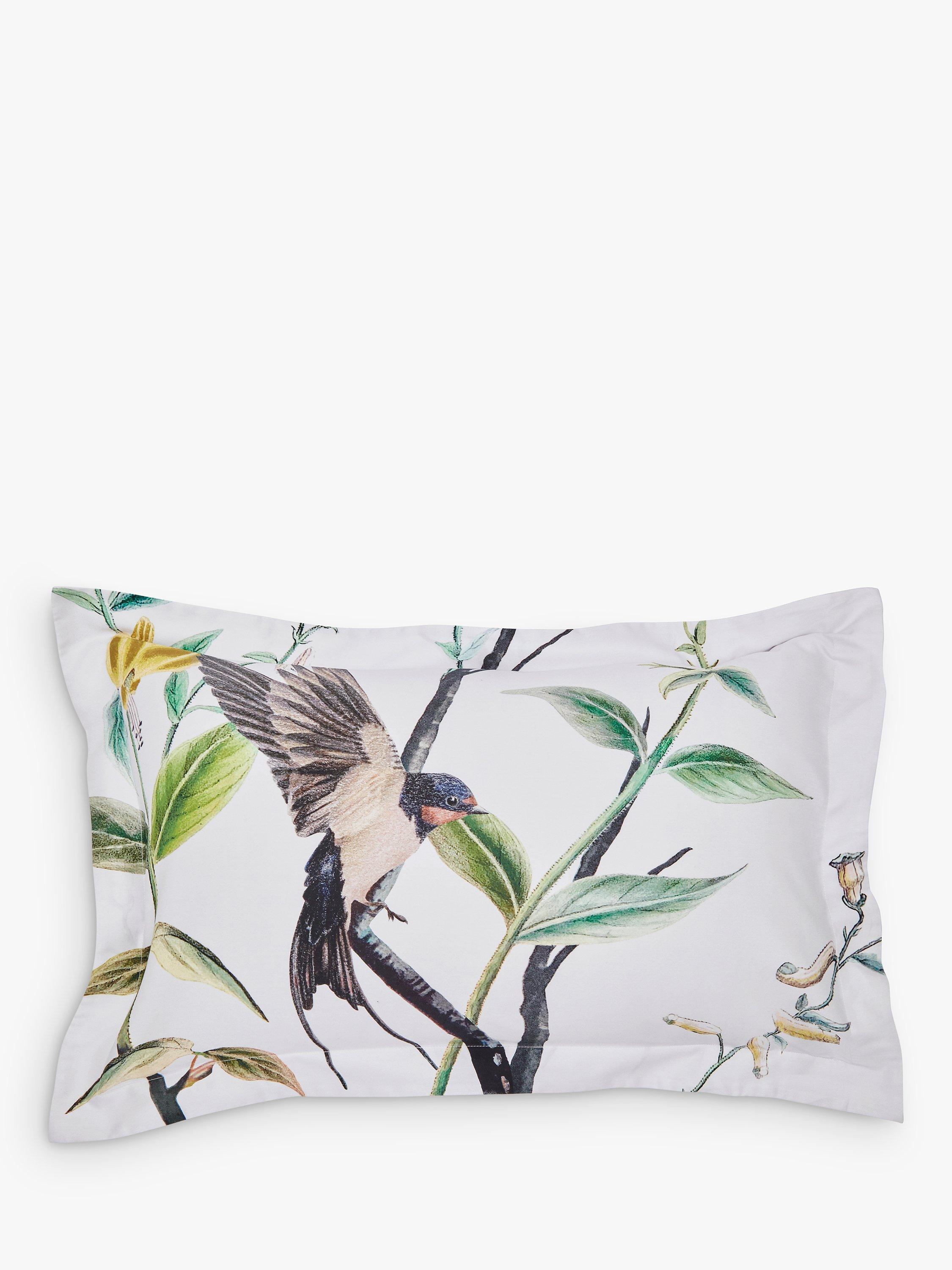 Immerse yourself in the beauty of nature with this bold botanical bedding. Luxe cotton sateen is adorned with an oversized print of hand-drawn birds and foliage, infused with a lush colour palette to really take centre stage and complemented with a plain dye reverse in a serene blue colourway.