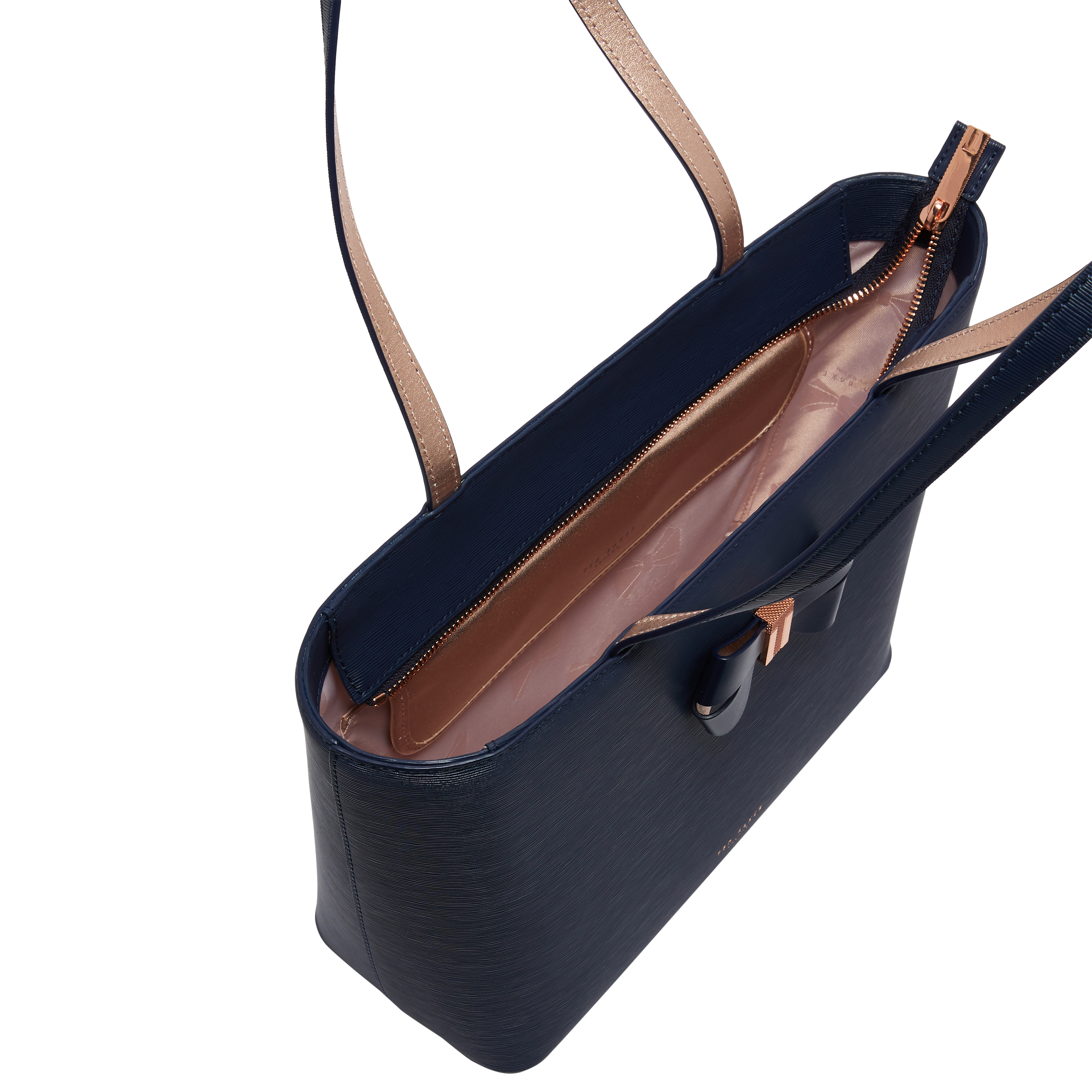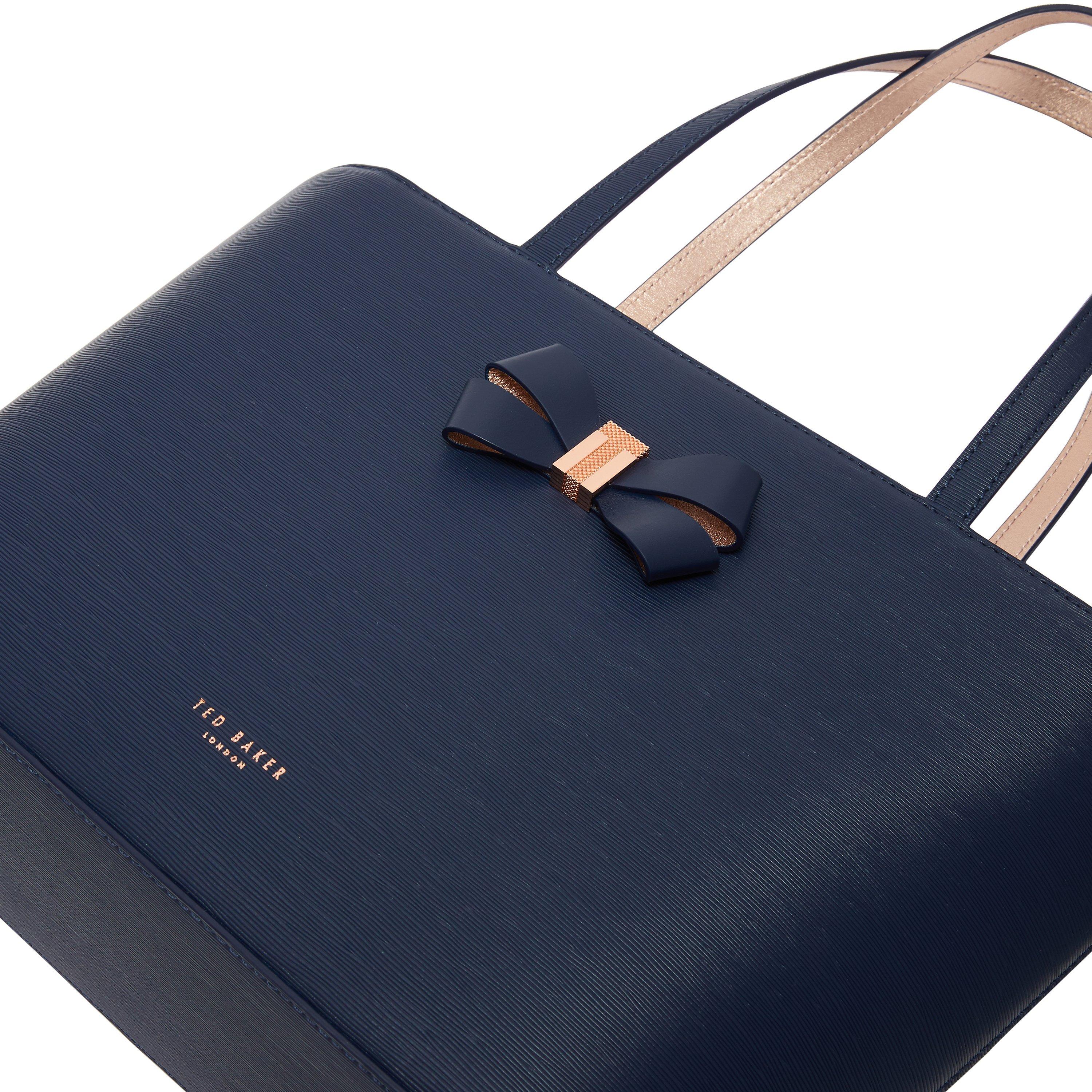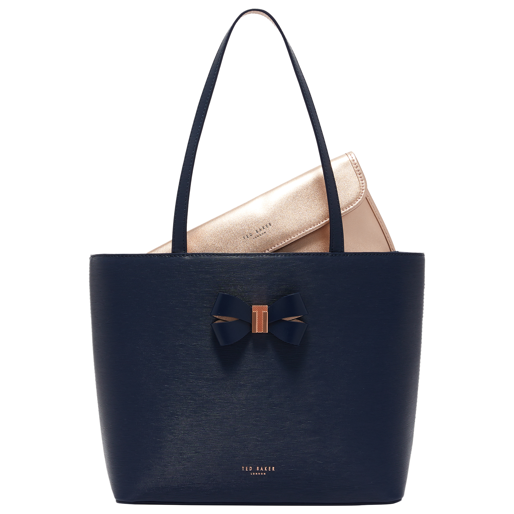 This pretty textured leather shopper bag from Ted Baker comes complete with a handy removable pouch for those little extras and features a feminine bow trim and signature 'T' bar branding.