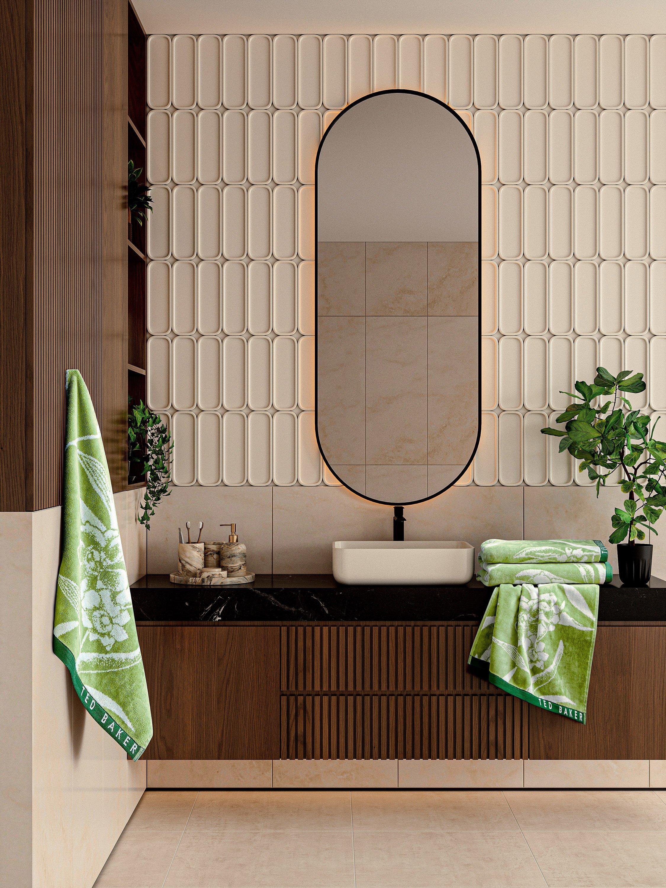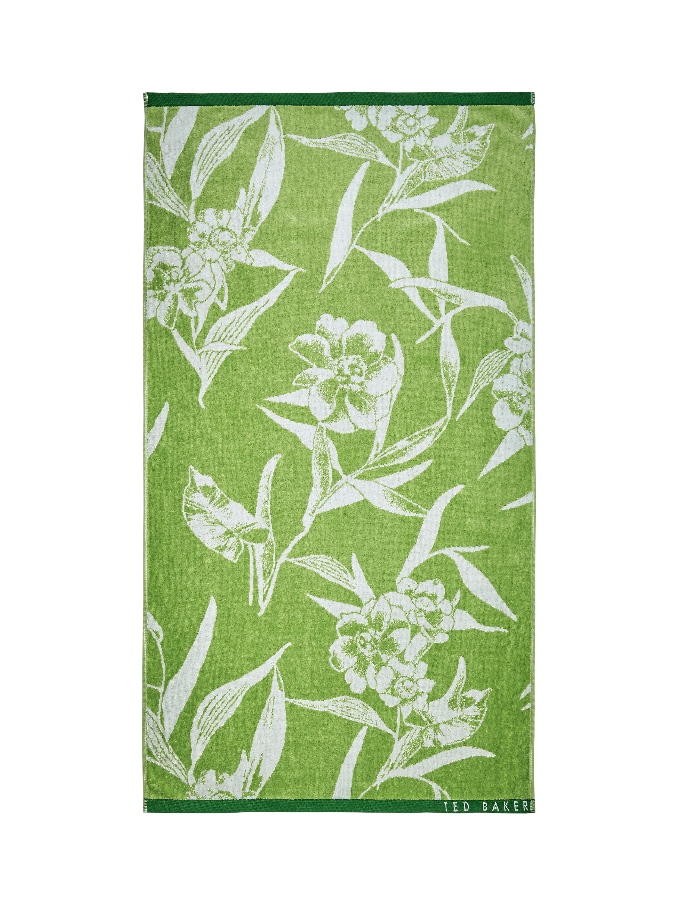 Bring a touch of floral flair to your bathroom with the Cabana towel. Oversized blooms stand out against a stippled green base, finished with dark green woven hems and the Ted Baker logo.