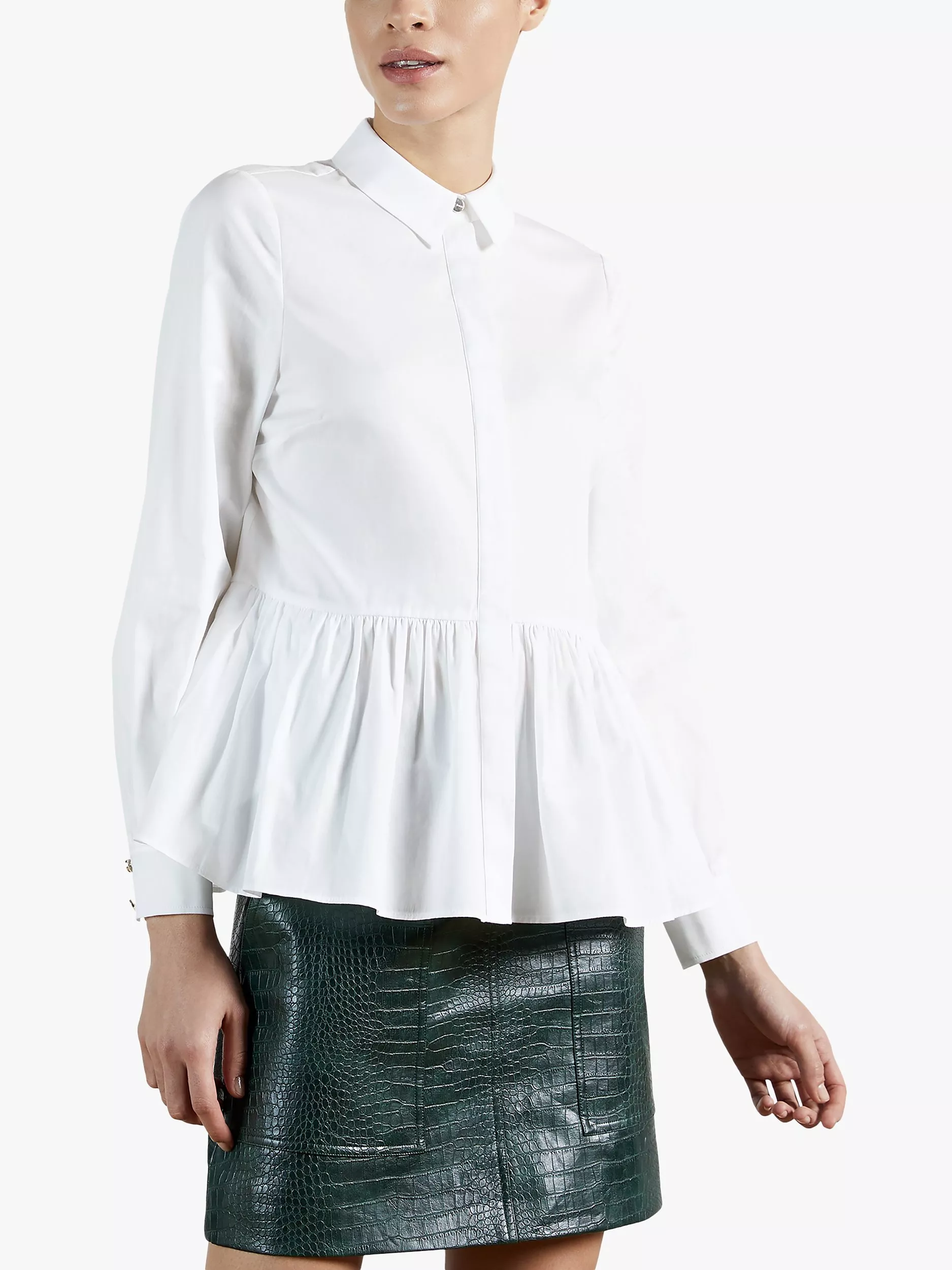 Highlighting your natural waist, this peplum top from Ted Baker makes for the perfect companion to patterned accessories.