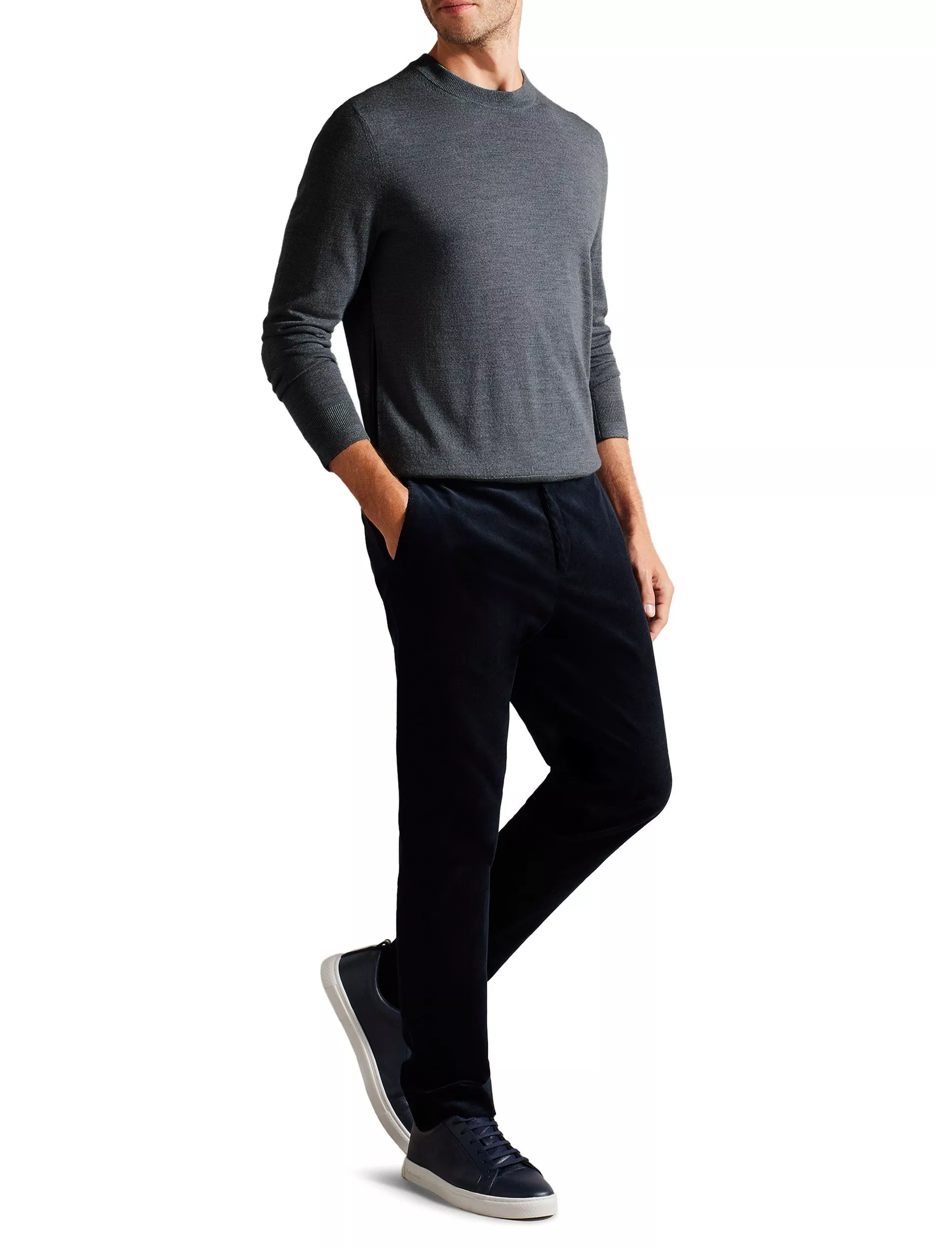 A firm foundation for cool-weather wardrobes, this crew neck knit from Ted Baker indulges in the comforting warmth of wool.