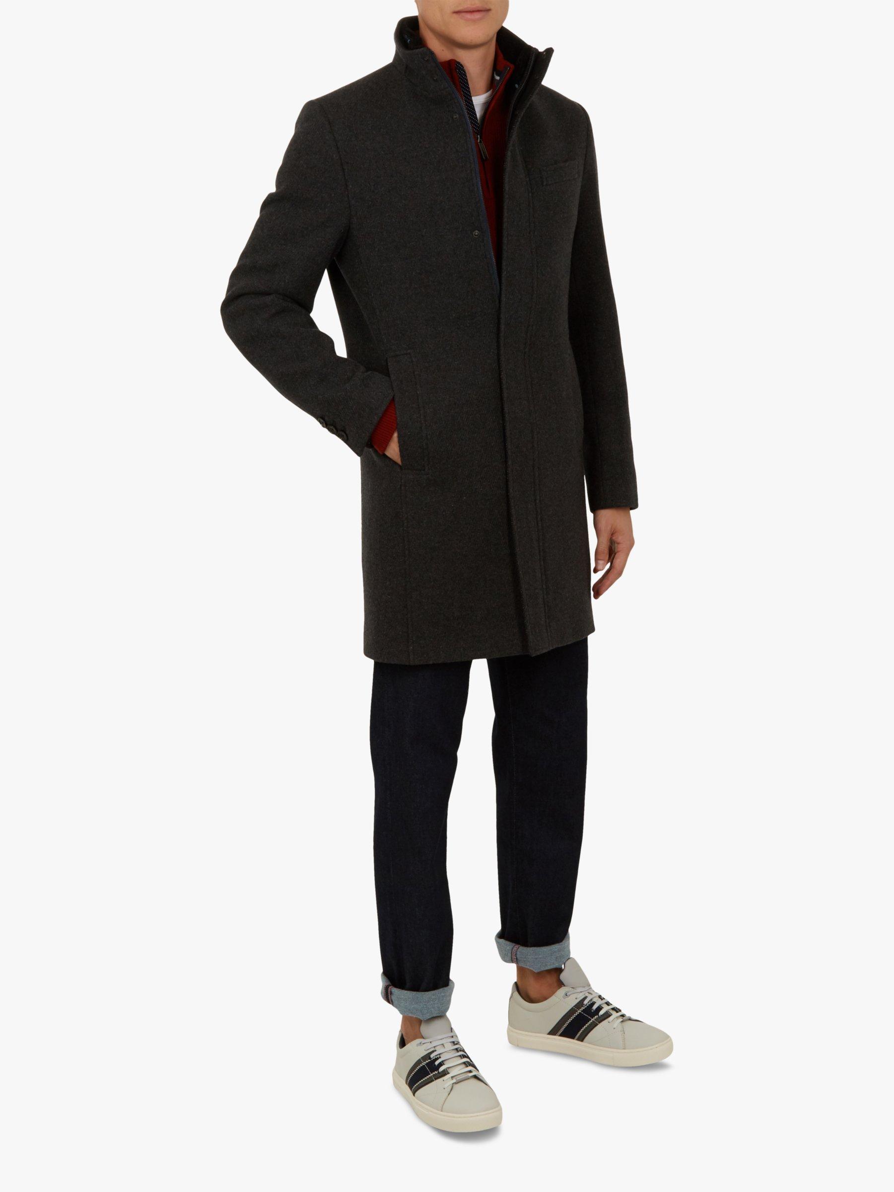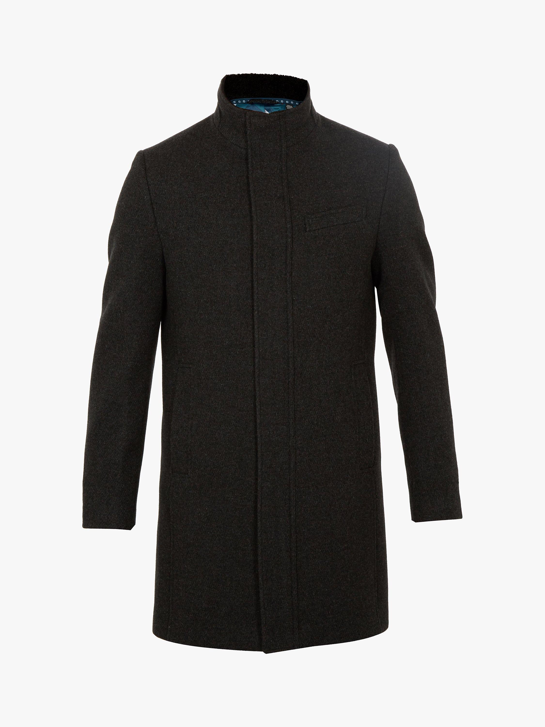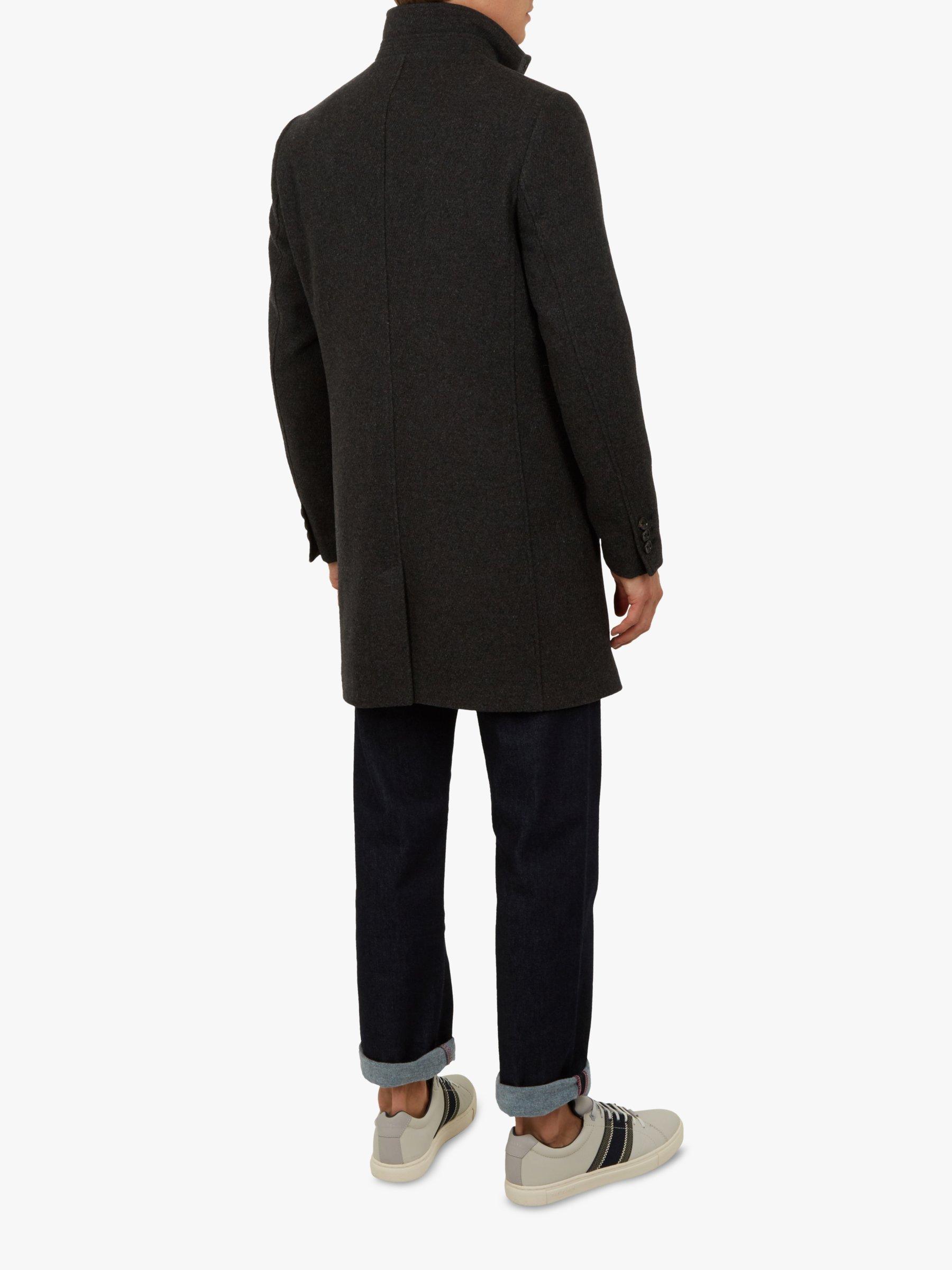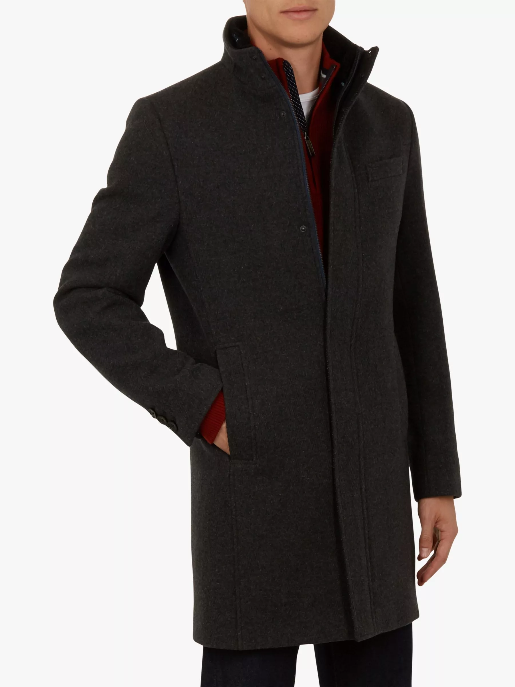 Invest in a smart overcoat with this Ted Baker Cheago style. Designed from a wool blend, this piece features a minimalistic design with zip and popper fastenings, funnel neck and practical side pockets.