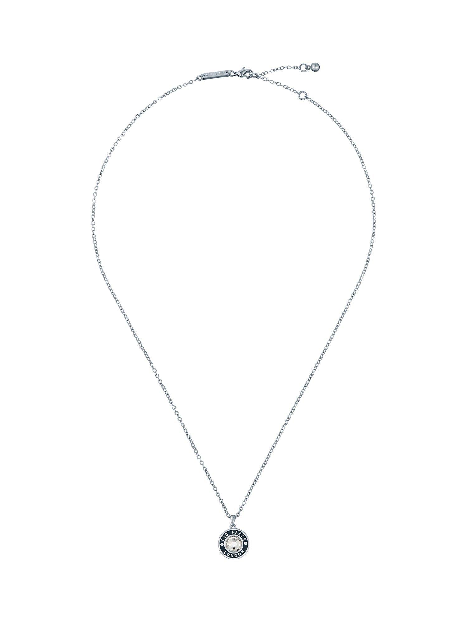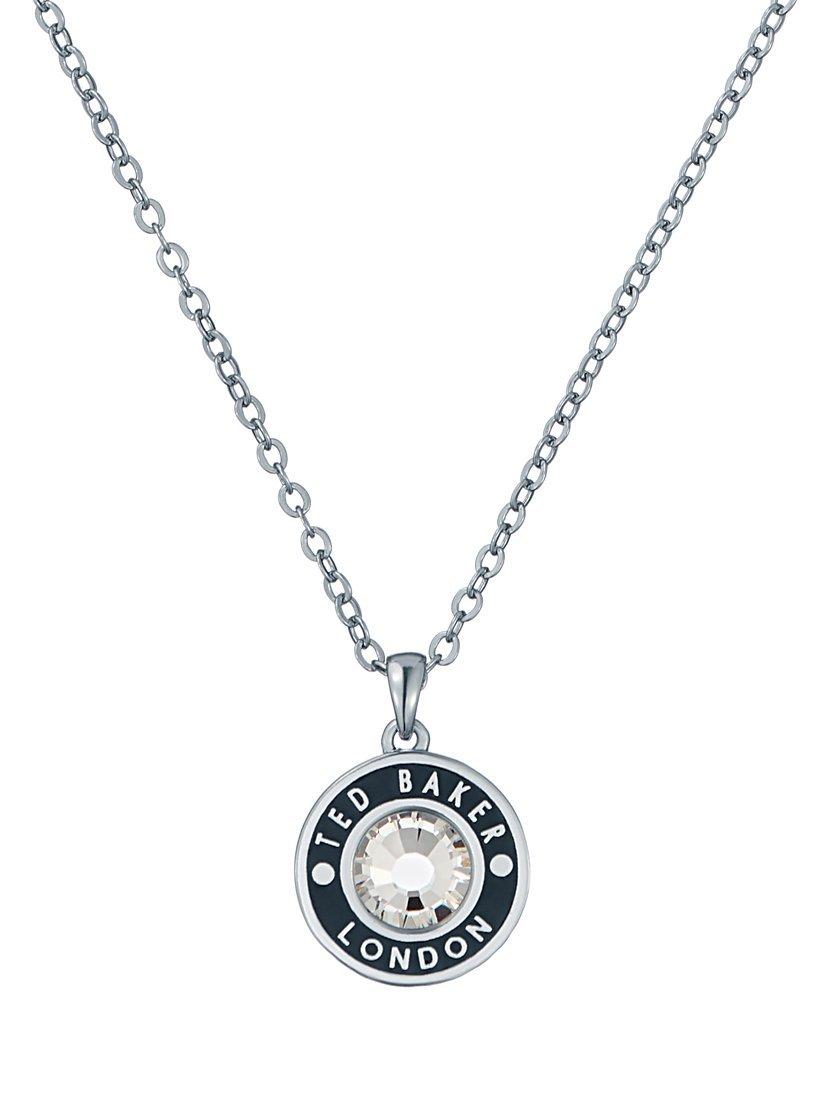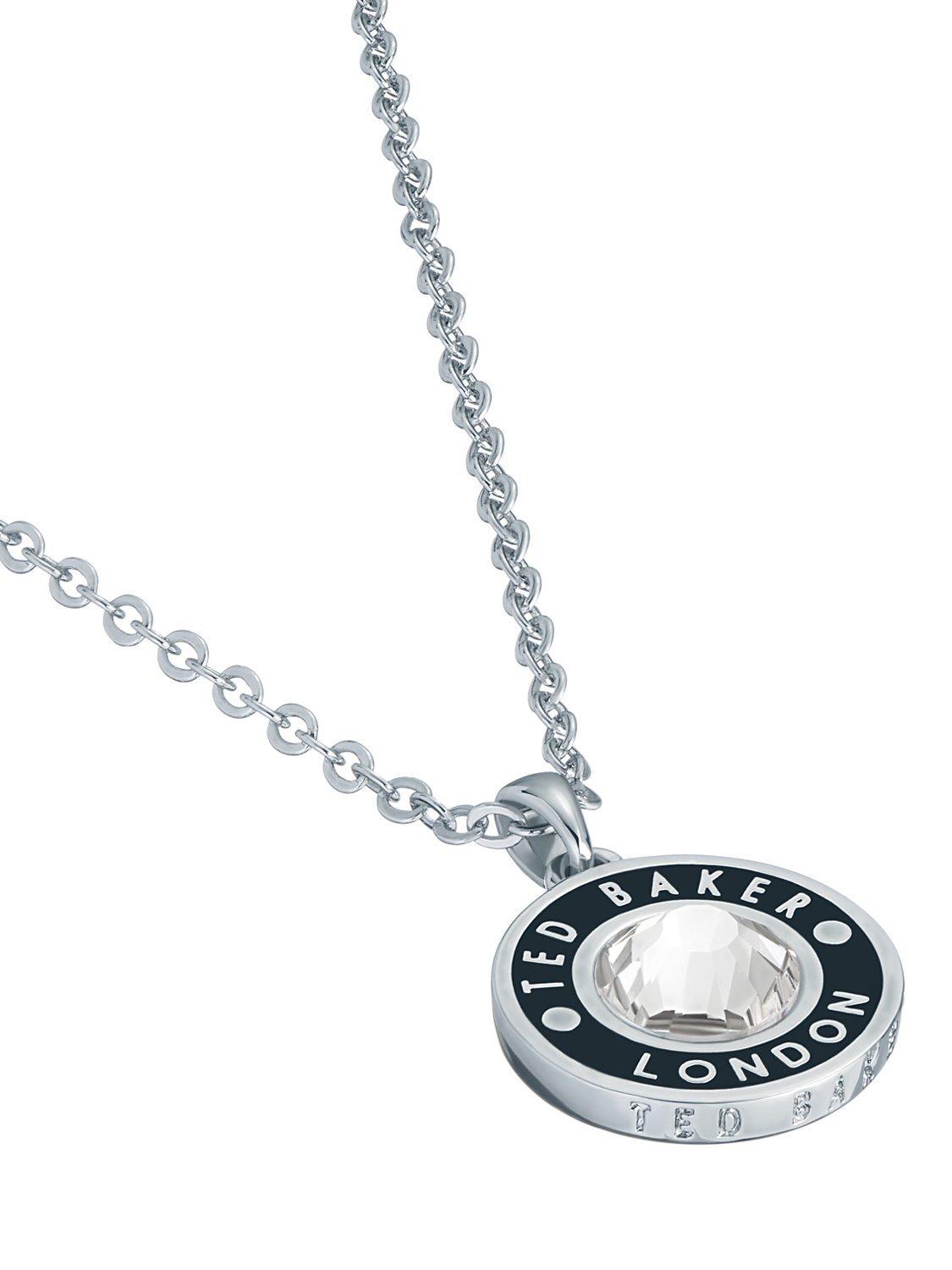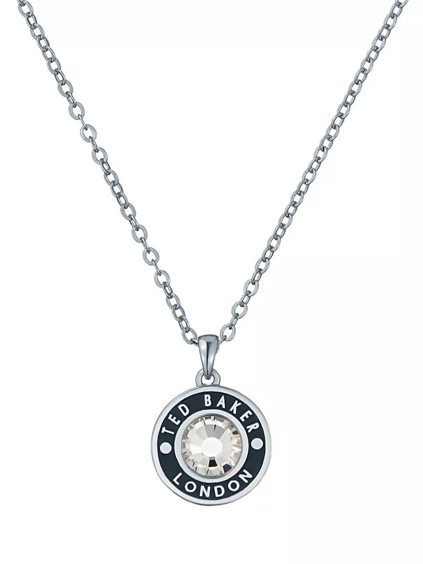 Add subtle sparkle and colour with Ted Baker's Cherlie Crystal Button Pendant Necklace. A bespoke stone setting features a solitaire crystal and logo branding, finished with hand-applied enamel colour. The pendant has an adjustable extender chain.