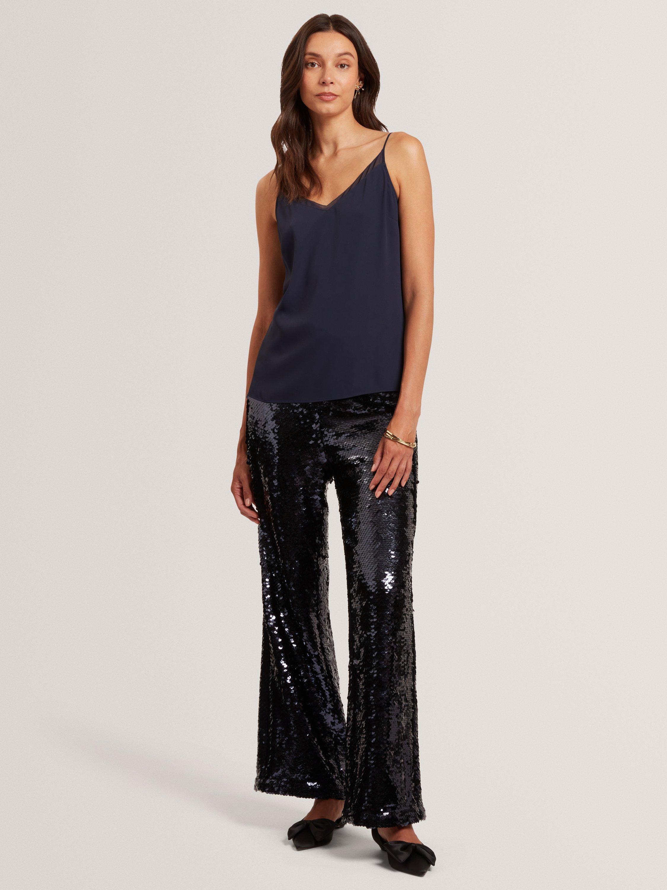 Ted Baker's trim cami offers effortless charm with its airy chiffon and adjustable straps. Designed for everyday ease, it layers smoothly under your favourite pieces, ensuring comfort and style that takes you anywhere.