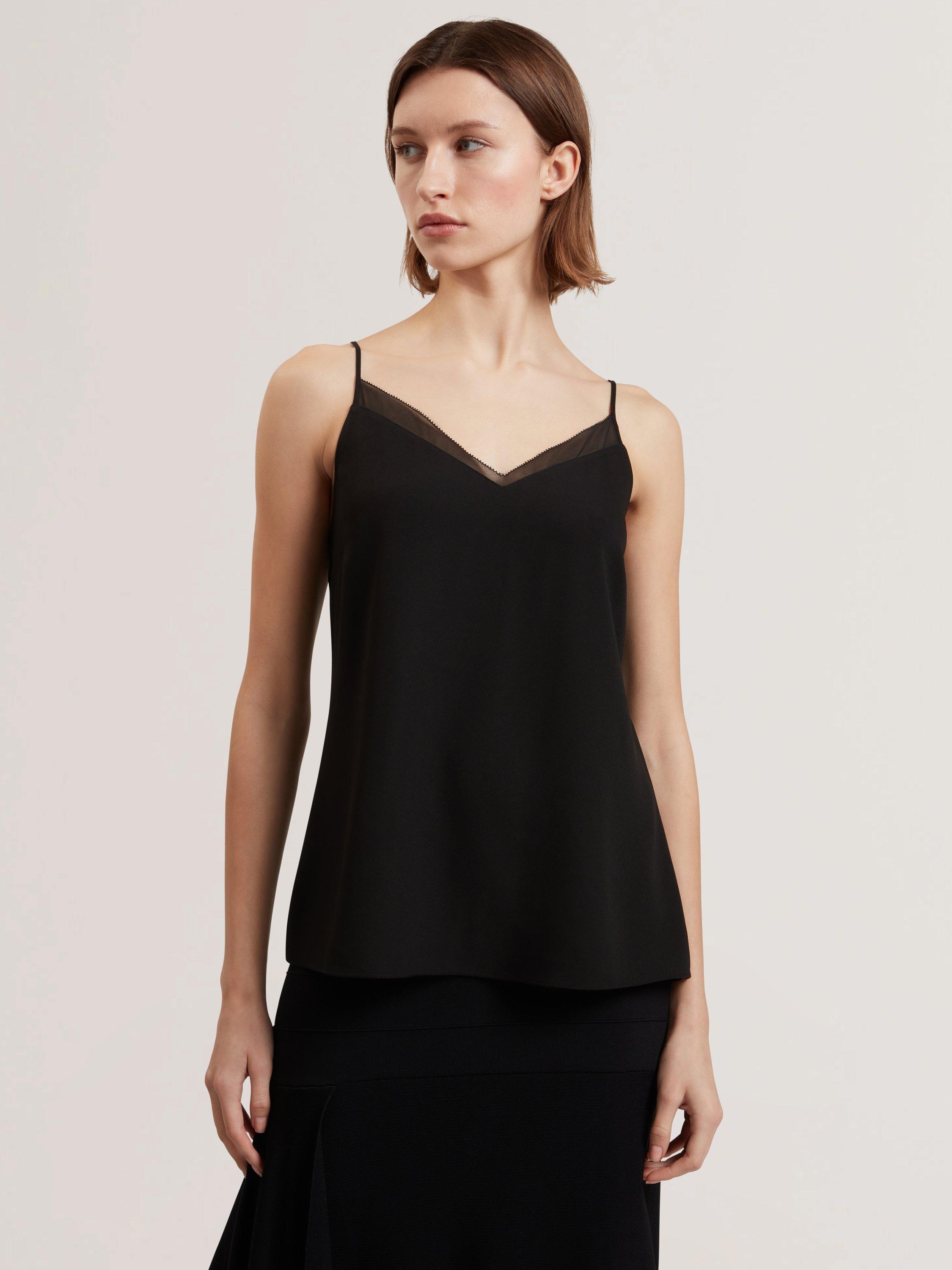 Ted Baker's trim cami offers effortless charm with its airy chiffon and adjustable straps. Designed for everyday ease, it layers smoothly under your favourite pieces, ensuring comfort and style that takes you anywhere.