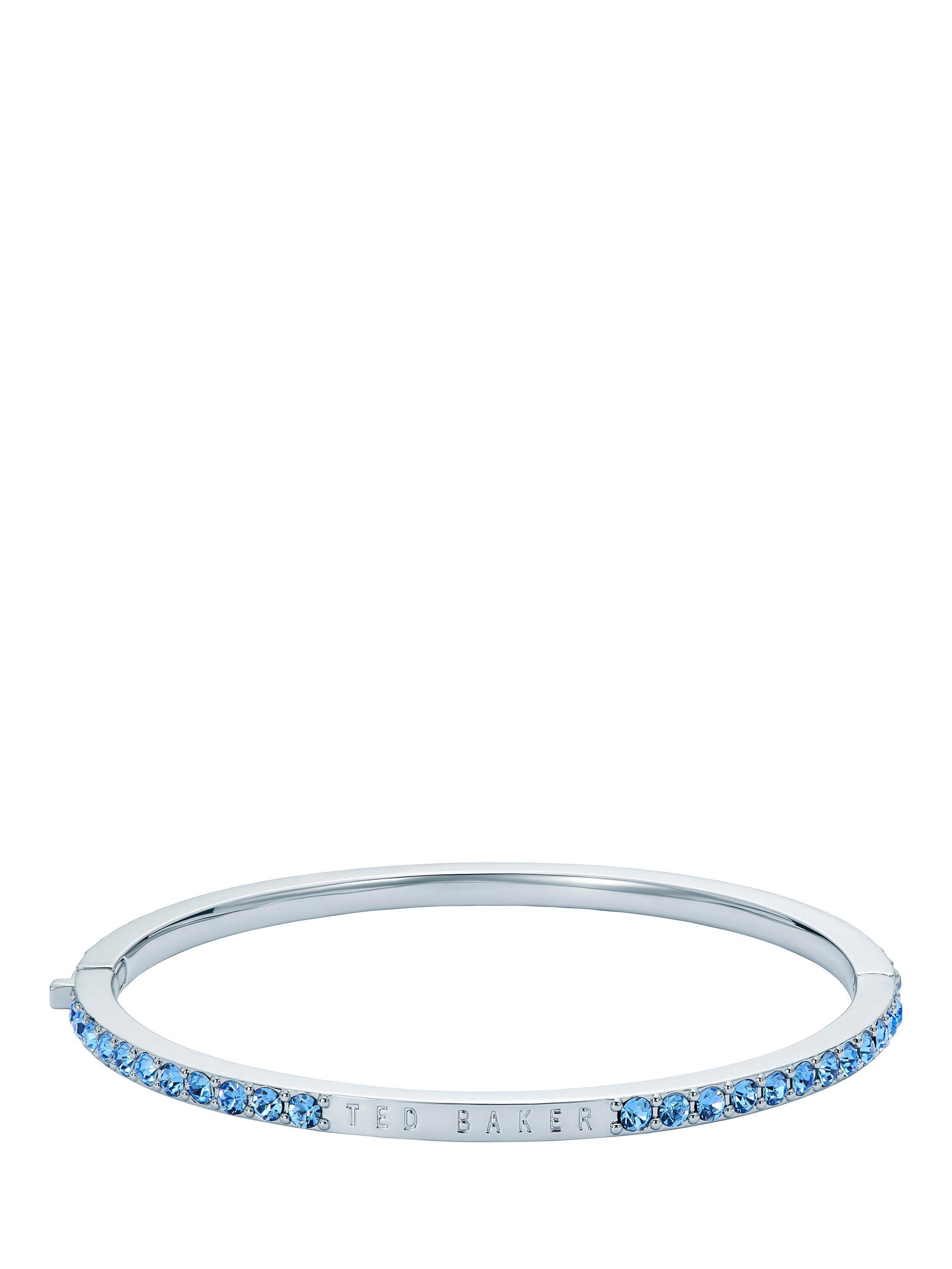 Ted BakerClaudia Narrow Crystal Hinged Bangle Bracelet, Silver/Light Blue