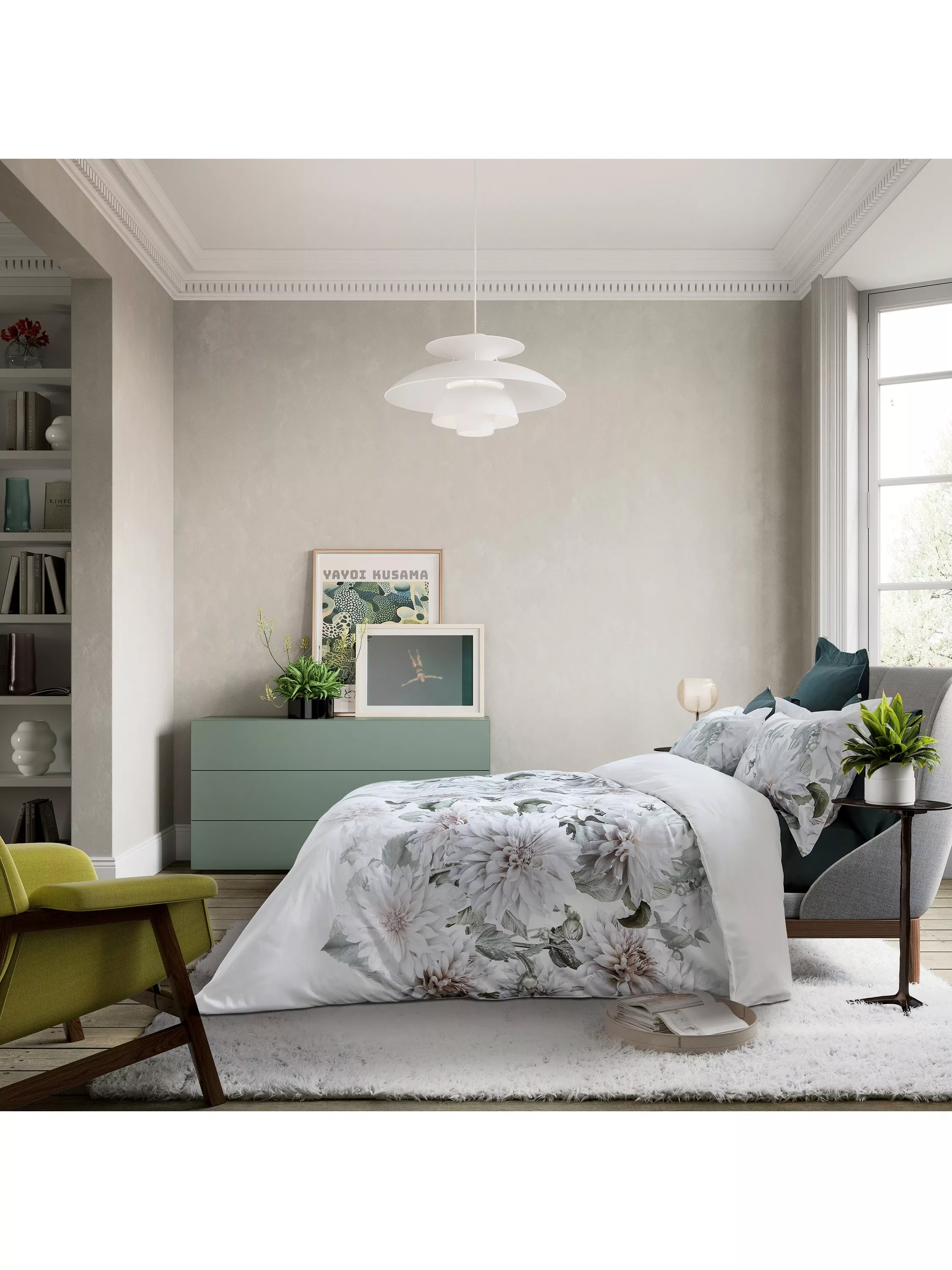 Ted Baker reinvents floral bedding for Spring 2025 with Clove Floral, a show stopping, supersize photographic flower print bursting into bloom. Colours are muted, with chalky greys, pinks and greens contrasting against a white ground. This distinctive design is digitally printed across an indulgent 220 thread count cotton sateen.