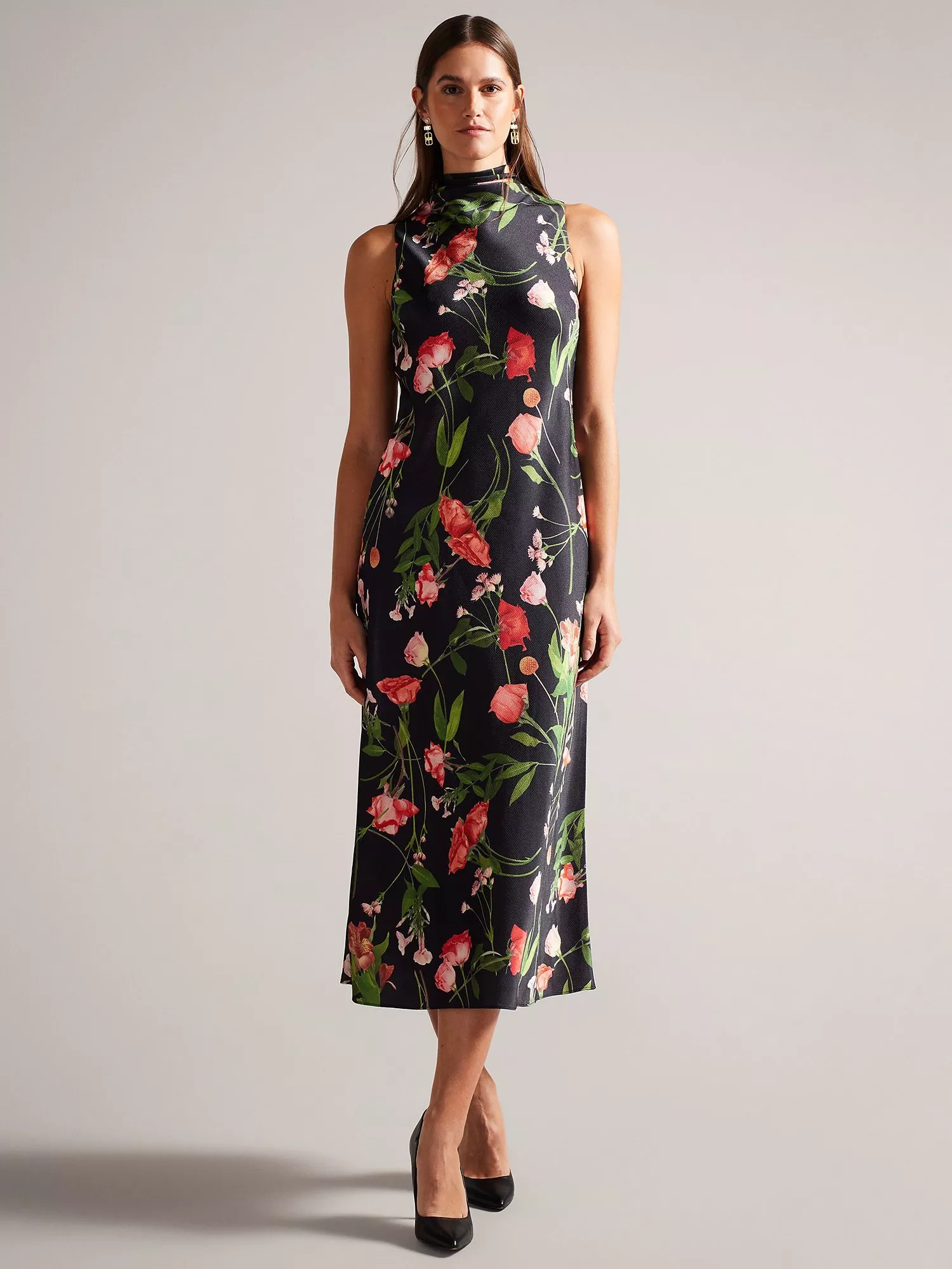 The definition of slip-on-and-go, this mid-length dress from Ted Baker comes in a fabric that's built to last. With a cowl neckline, this sleeveless style is planted with flourishing florals.