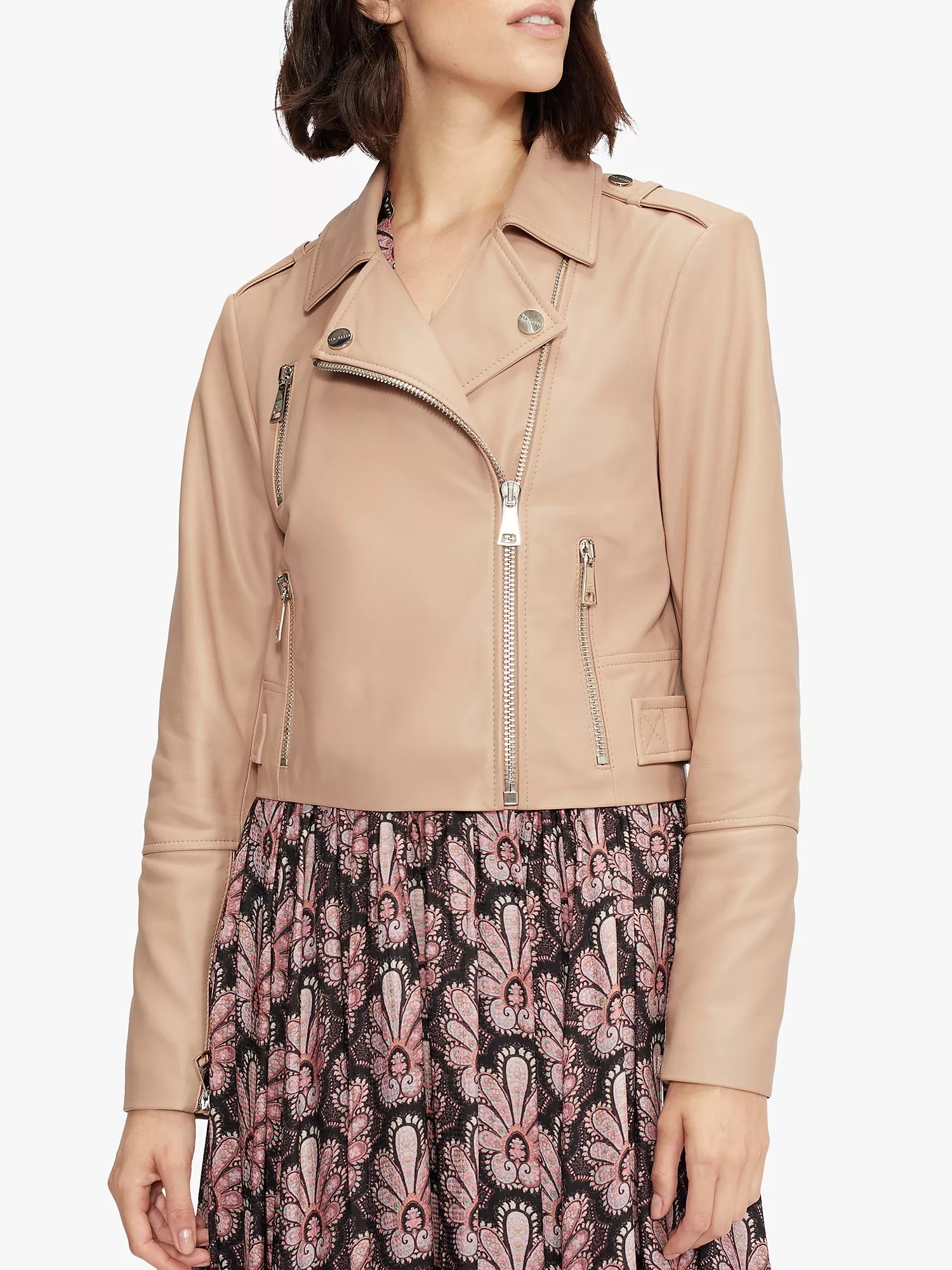 Completing your look with an edgy finish, this biker jacket by Ted Baker flatters the figure with its cropped cut.